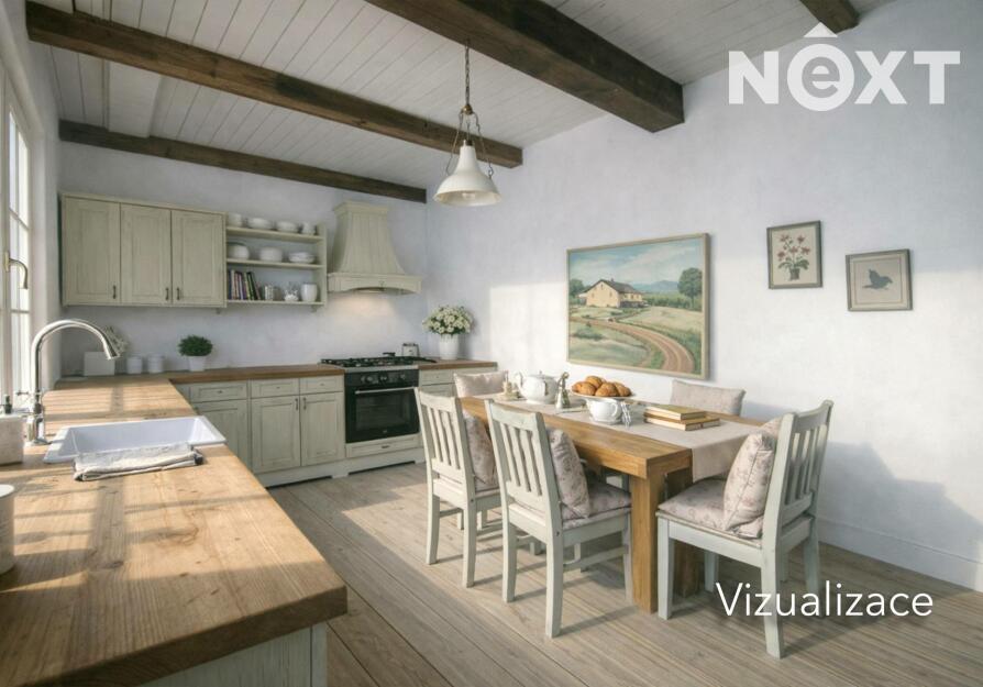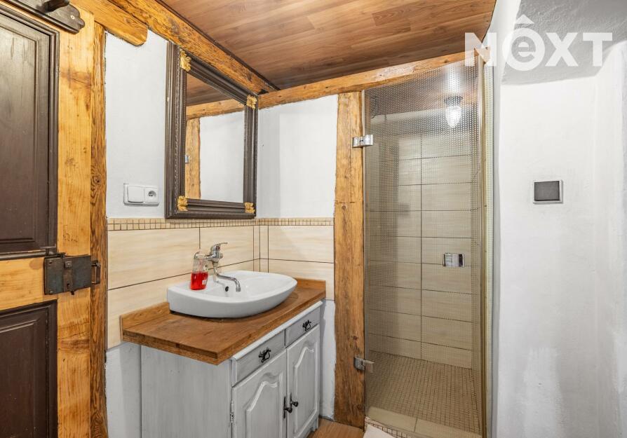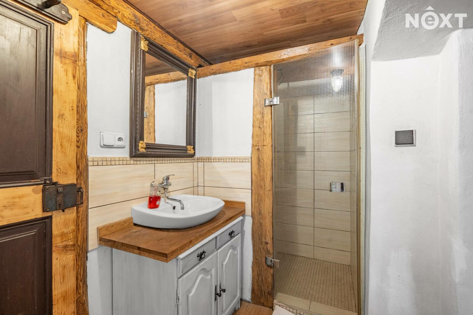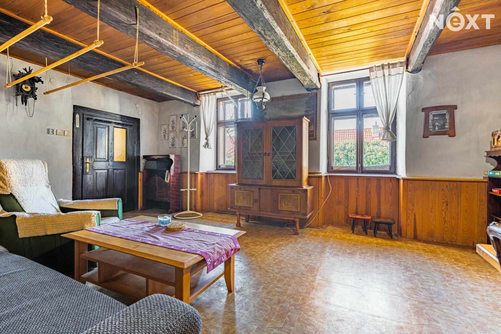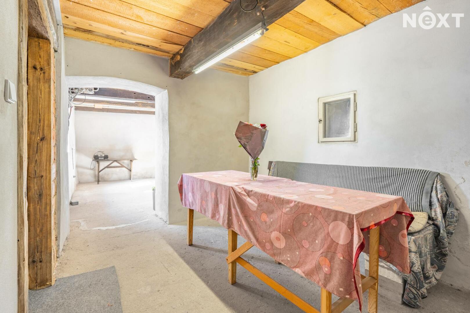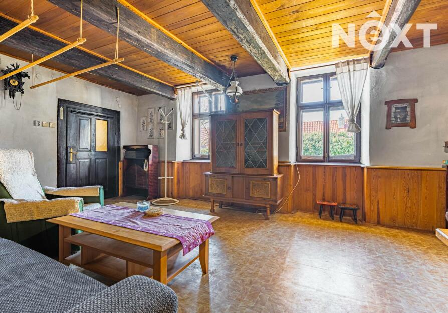 Přízemí v rustikálním stylu, které je plně funkční a kde se o teplo starají kachlová kamna. Také zde najdete malou kuchyňku, koupelnu s toaletou a další místnosti, jejích určení už bude na vás.