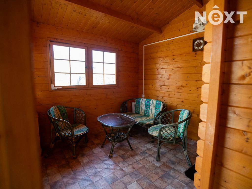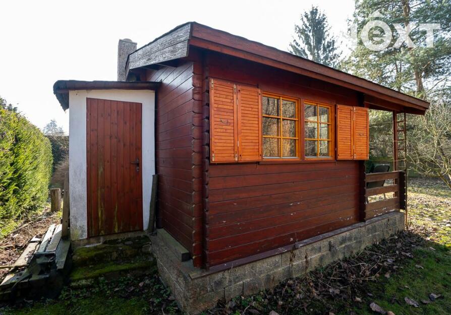 Chata o zastavěné ploše 26 m² stojí na kamenné podezdívce, nabízí dvě místnosti s kuchyňkou, krbové kamna na topení a terasu ideální na ranní kávu nebo večerní posezení. Součástí je také toaleta a praktická místnost na nářadí.