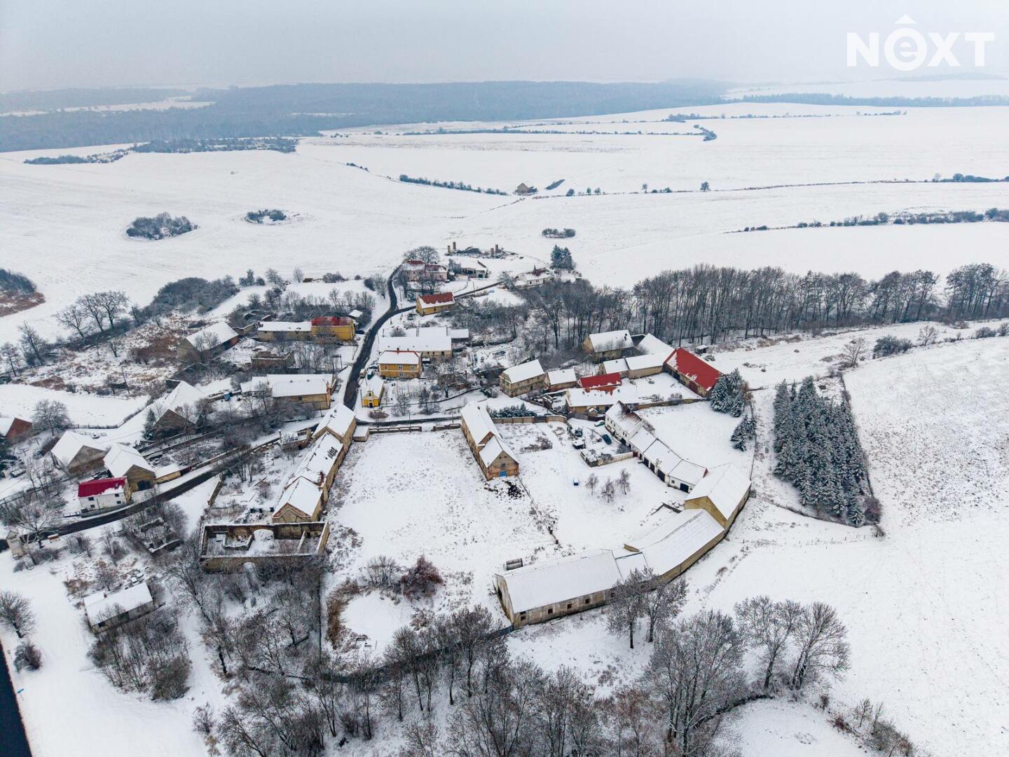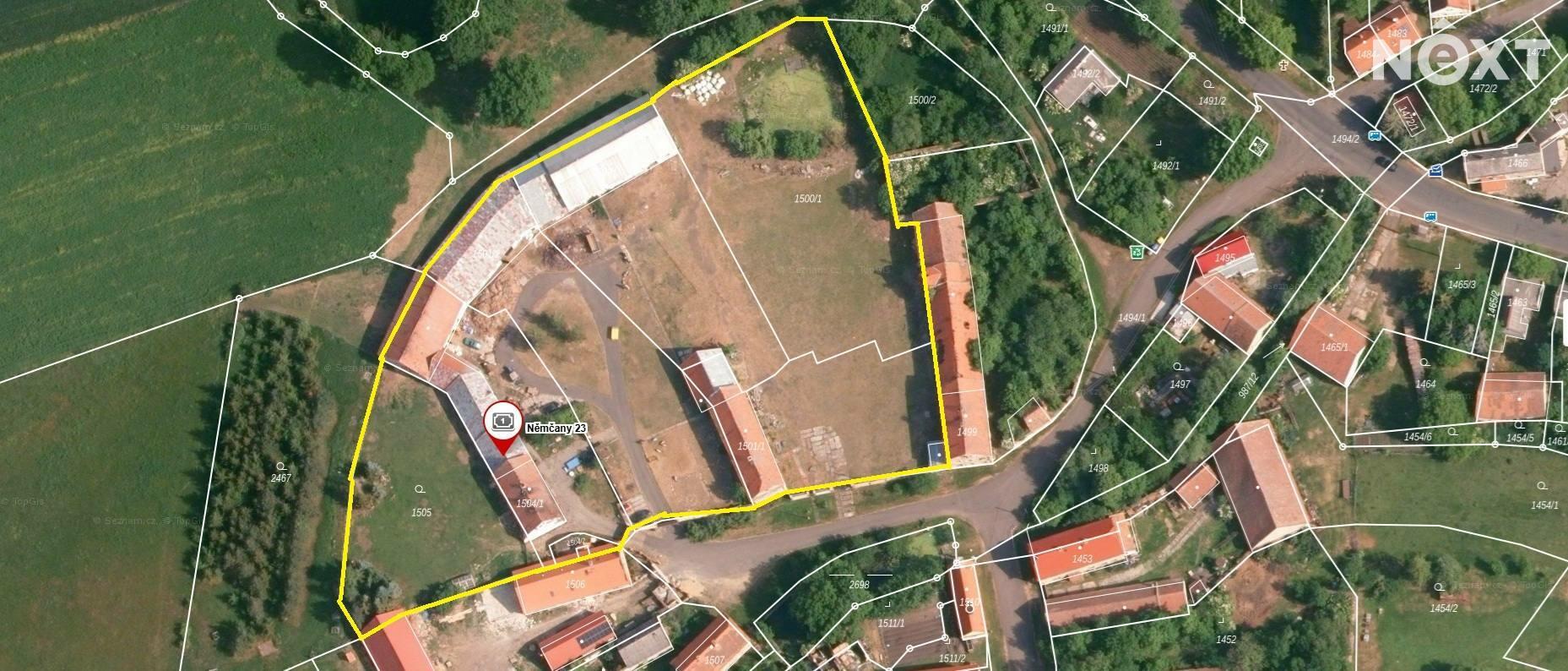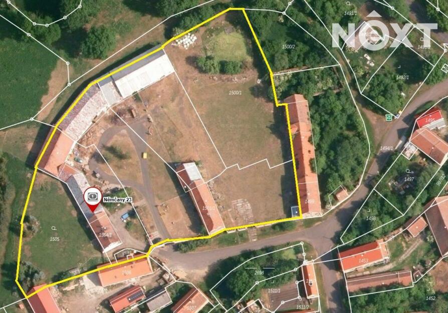 Zum Verkauf steht ein großzügiges Grundstück mit 6.180 m² Fläche im Dorf Němčany (Gemeinde Krásný Dvůr, Bezirk Louny) im Nordwesten Tschechiens.