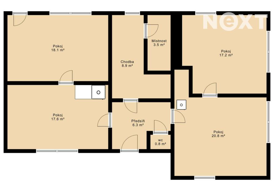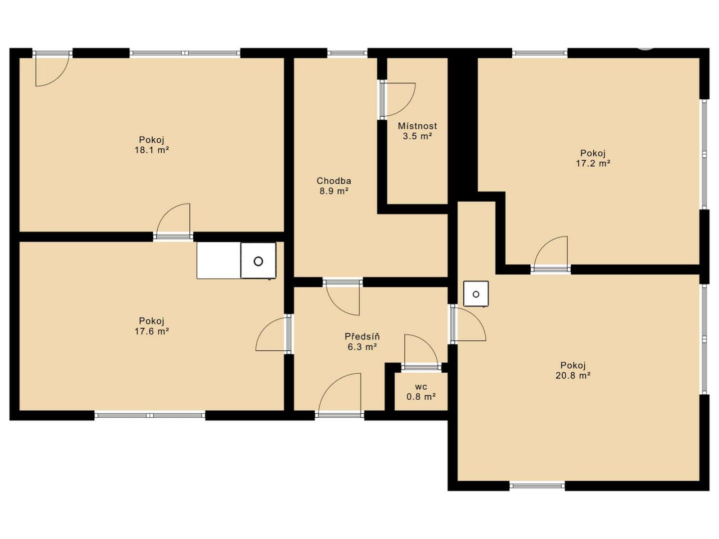 Hlavní obytná část domu nabízí tři místnosti včetně kuchyně a prostoru pro vybudování koupelny. Součástí domu je také sklep a půdní prostor, který může nabídnout další potenciál k rozšíření obytné části.