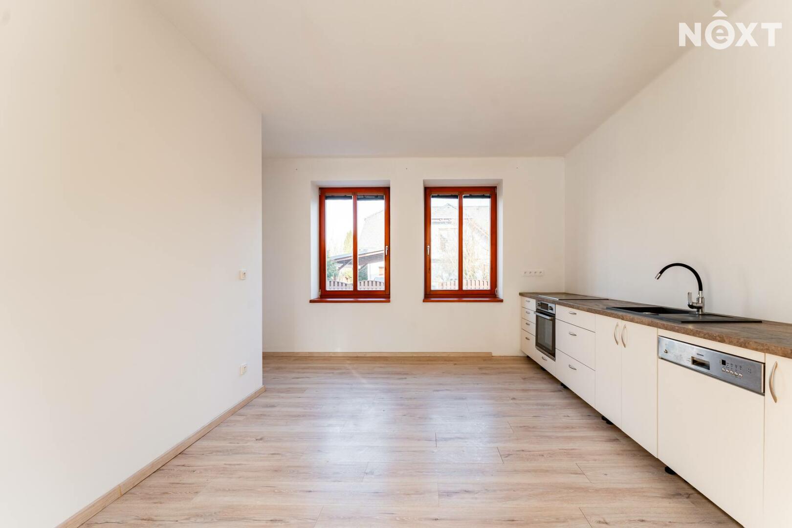 Dům prošel větší rekonstrukcí, zachovány byly také některé původní prvky, které dodávají domu charakter – dřevěná okna jsou nová, původní jsou však interiérové dřevěné dveře, které lze snadno barevně doladit podle vlastního vkusu. V interiéru jsou plovoucí podlahy a součástí je také kuchyňská linka.