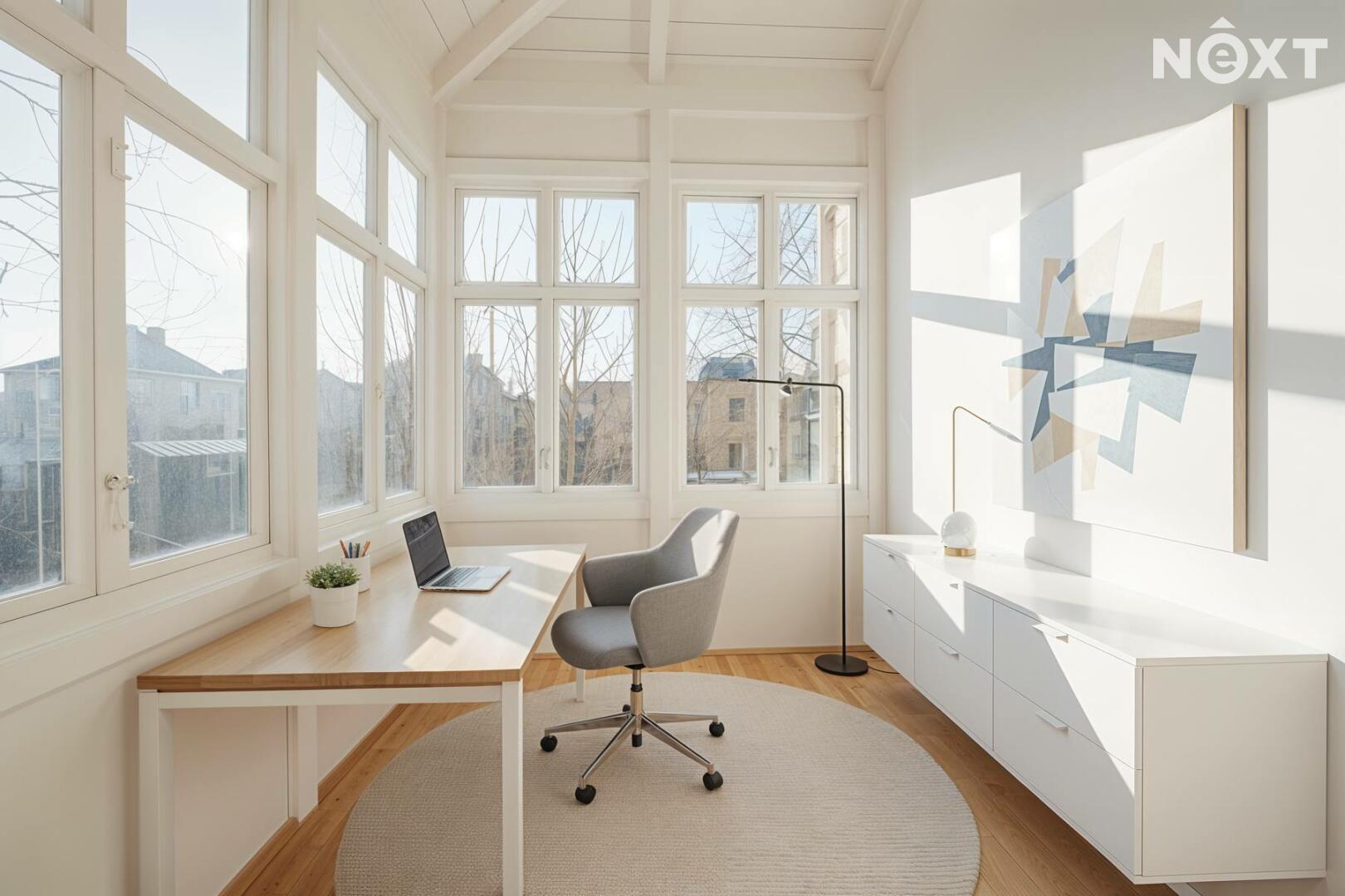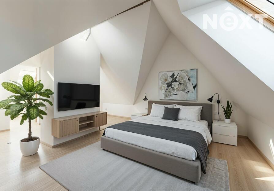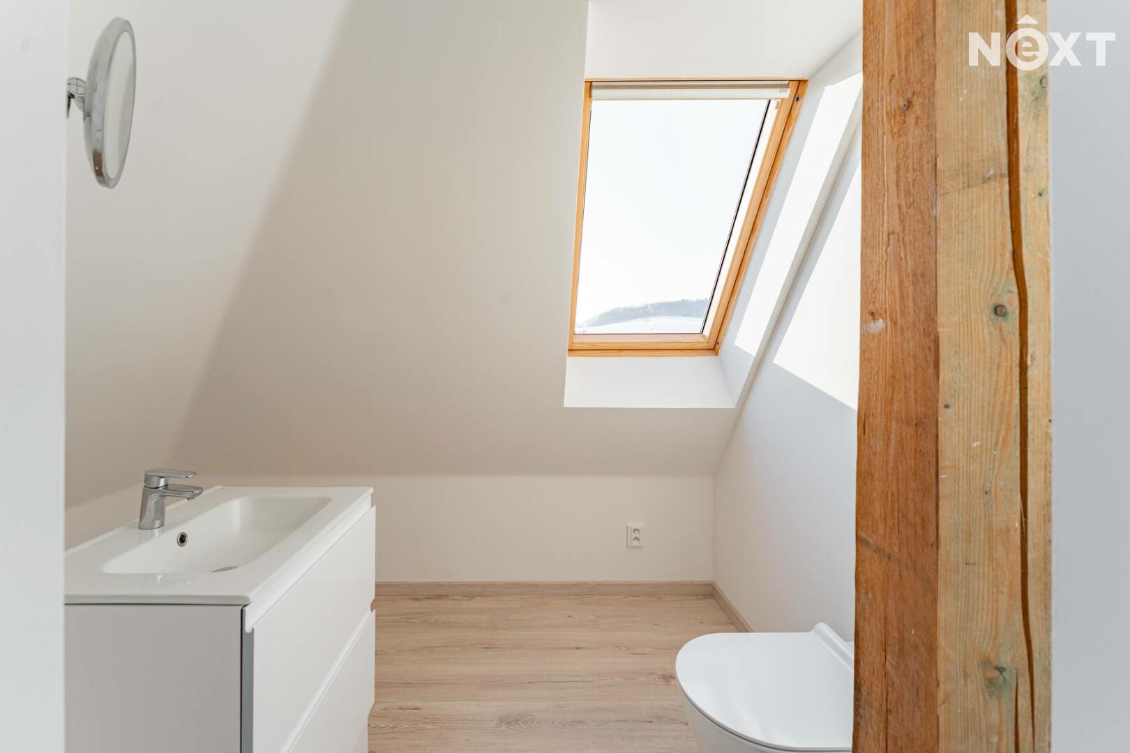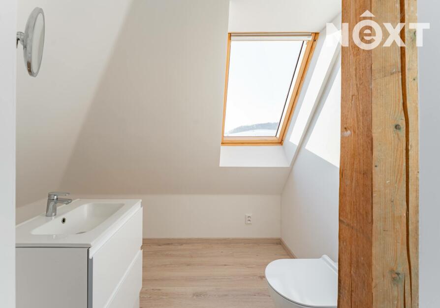 Další prostor poskytuje využité podkroví, které tvoří otevřená místnost s vlastní toaletou. Tento prostor může sloužit jako pracovna, ateliér, pokoj pro hosty nebo relaxační zóna.