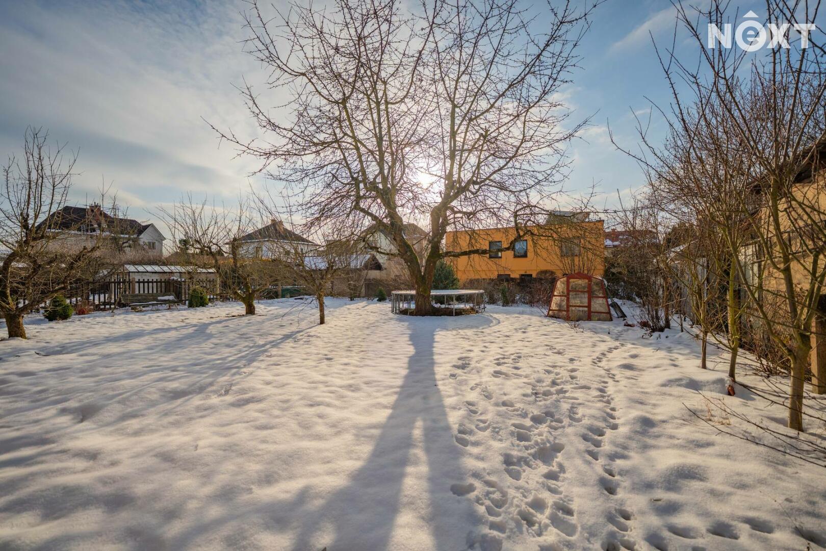 Velkým benefitem je zahrada o výměře 496 m², která je orientovaná na jihozápad, což zajišťuje dostatek slunce po většinu dne. Zahrada poskytuje ideální prostor pro relaxaci, rodinné posezení i budoucí terasu navazující na obytnou část domu.