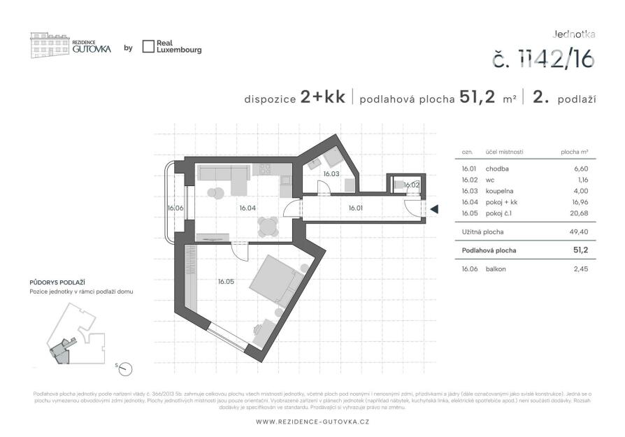 Bydlete v domě s historií, ale v moderním standardu. Nabízíme k prodeji jednotku 2+KK (51 m²) v právě dokončované Rezidenci Gutovka.