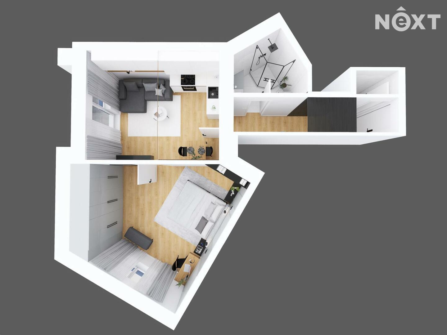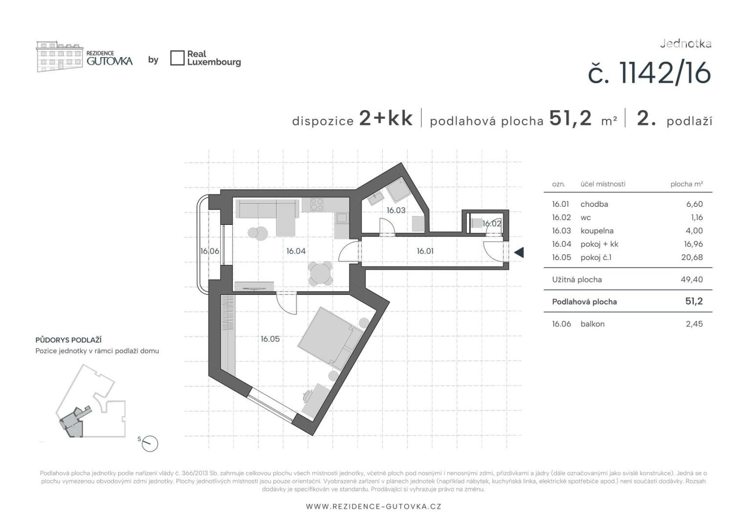 - Novotou vonící interiér: 51,2 m² podlahové plochy + 2,45 m² balkon.