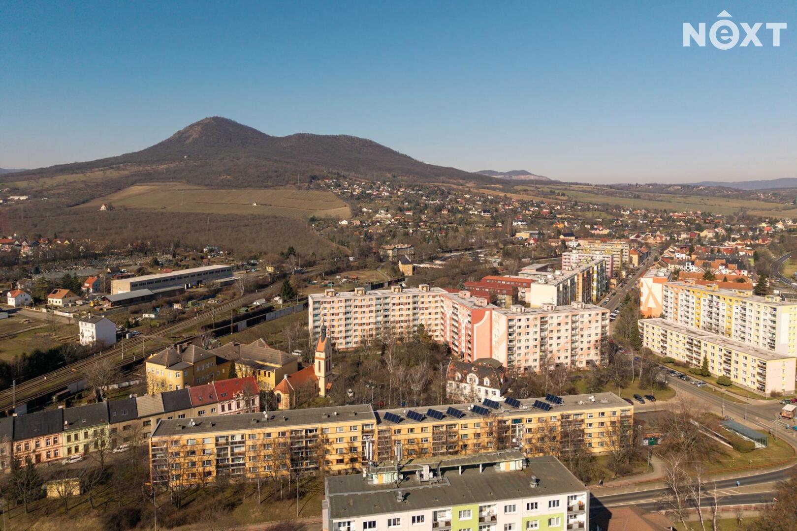 Představte si ráno, kdy si v kuchyni uvaříte kávu a místo dalšího dne ve spěchu se na chvíli jen díváte ven. Lovoš je tady tak blízko, že vám udělá kulisu k běžnému dni a večer k tomu přidá i hezký západ slunce. Právě tenhle výhled je jedna z věcí, která tenhle byt v Lovosicích dělá výjimečným.