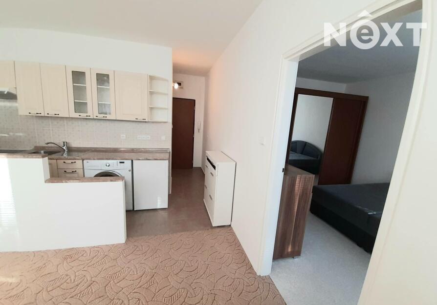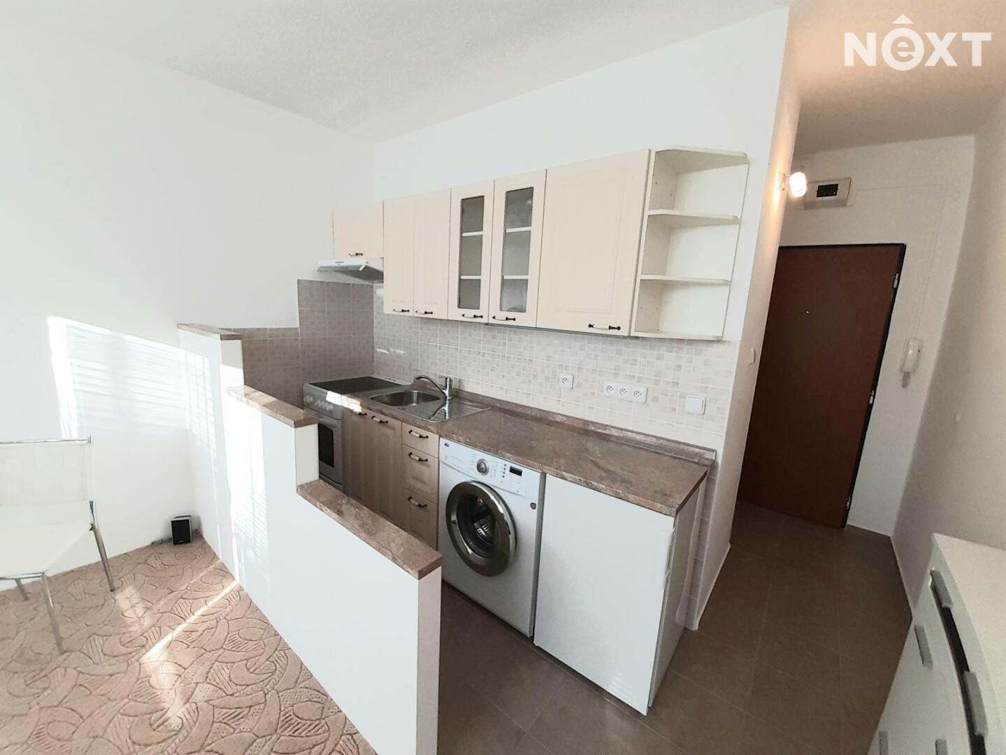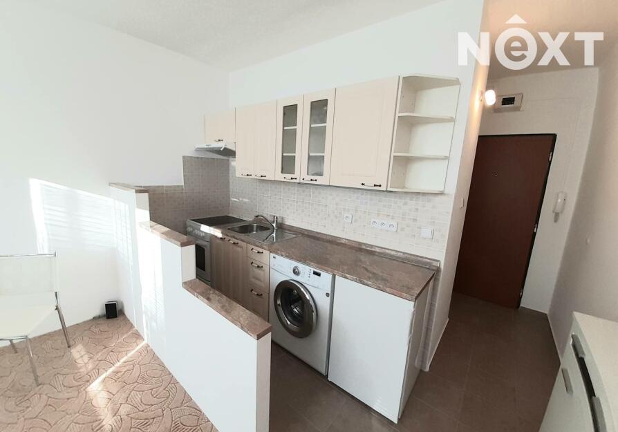 Dispozice bytu: vstupní chodba, koupelna s WC, kuchyňský kout s obývákem, ložnice. Byt je částečně vybavený. Součástí pronájmu je i sklepní kóje.