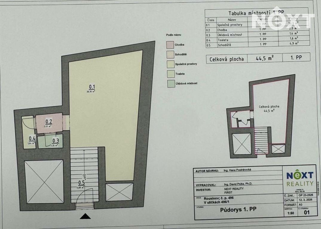 Byt je součástí domu, ve kterém budou pouze čtyři bytové jednotky, což zajišťuje příjemné komorní bydlení. V současné době probíhá proces prohlášení vlastníka a rozdělení domu na jednotlivé jednotky – jedná se tedy o budoucí prodej bytové jednotky, která bude po dokončení procesu zapsána v katastru nemovitostí.