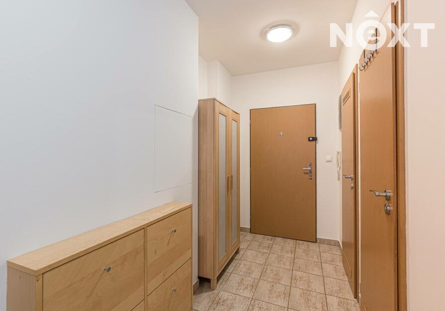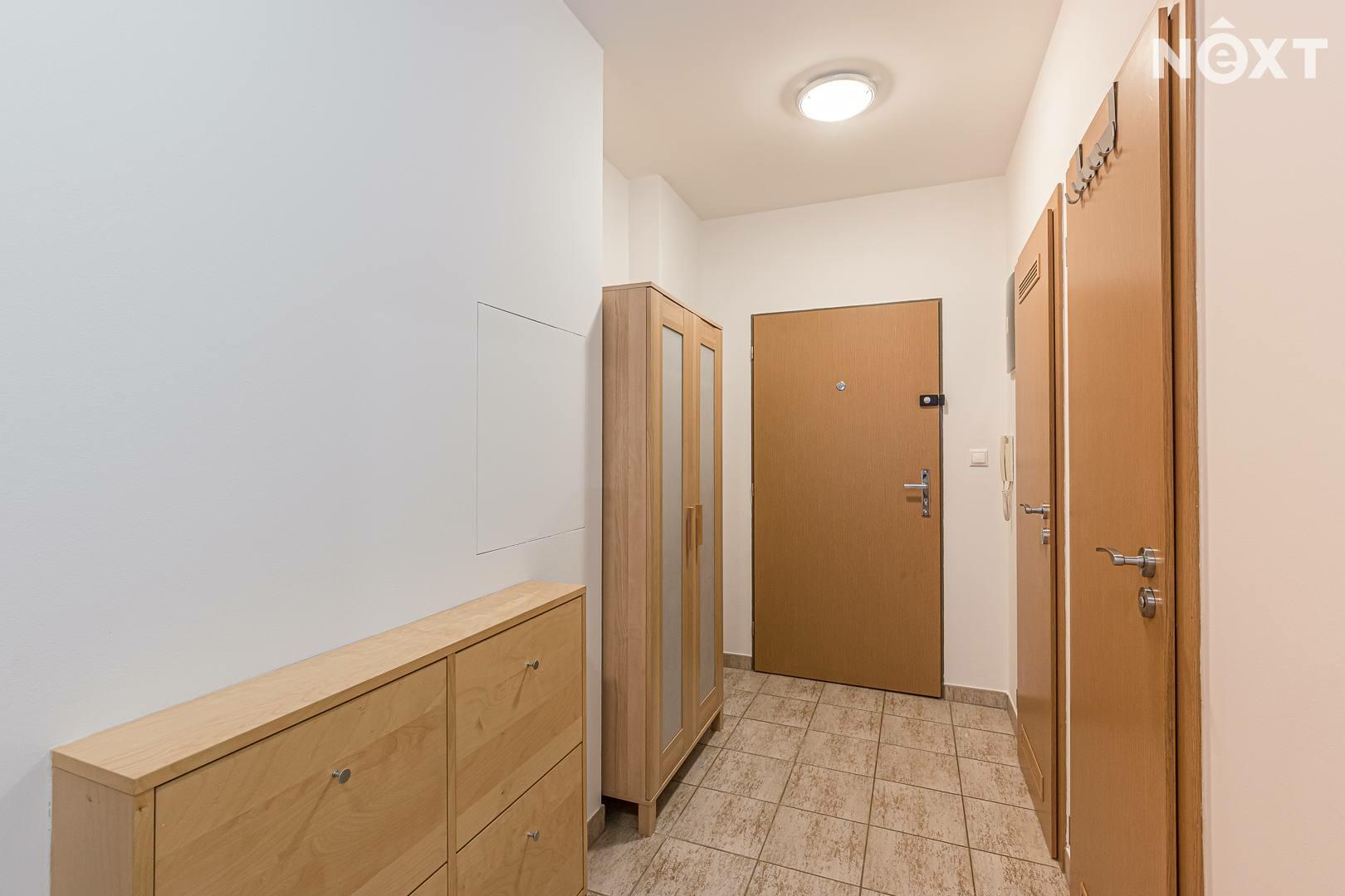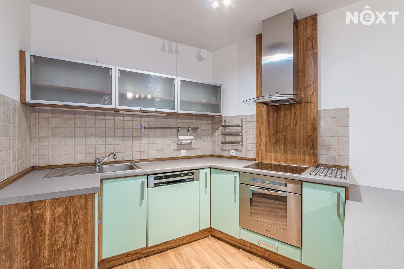 Základní vybavení bytu, s nímž se počítá ponechat: kuchyňská linka vč spotřebičů jako myčka, trouba, digestoř, vestavěná skříň a dvoulůžko v ložnici a šatní skříň v předsíni. Možnost pračky a lednice.