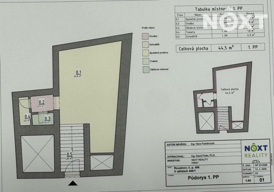 Byt je součástí domu, ve kterém budou pouze čtyři bytové jednotky, což zajišťuje příjemné komorní bydlení. V současné době probíhá proces prohlášení vlastníka a rozdělení domu na jednotlivé jednotky – jedná se tedy o budoucí prodej bytové jednotky, která bude po dokončení procesu zapsána v katastru nemovitostí.