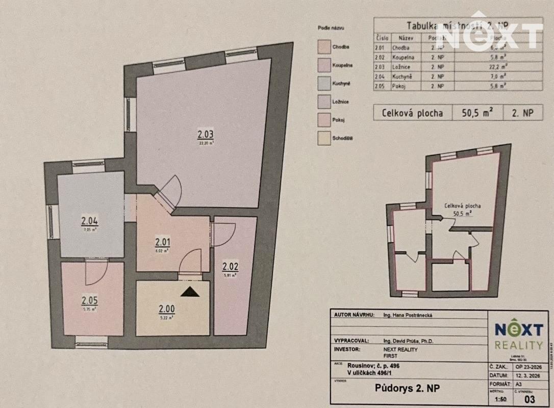Nabízíme k prodeji byt o dispozici 2+1 a podlahové ploše 50,5 m², který se nachází ve 2. nadzemním podlaží menšího domu bez výtahu přímo na náměstí v Rousínově.