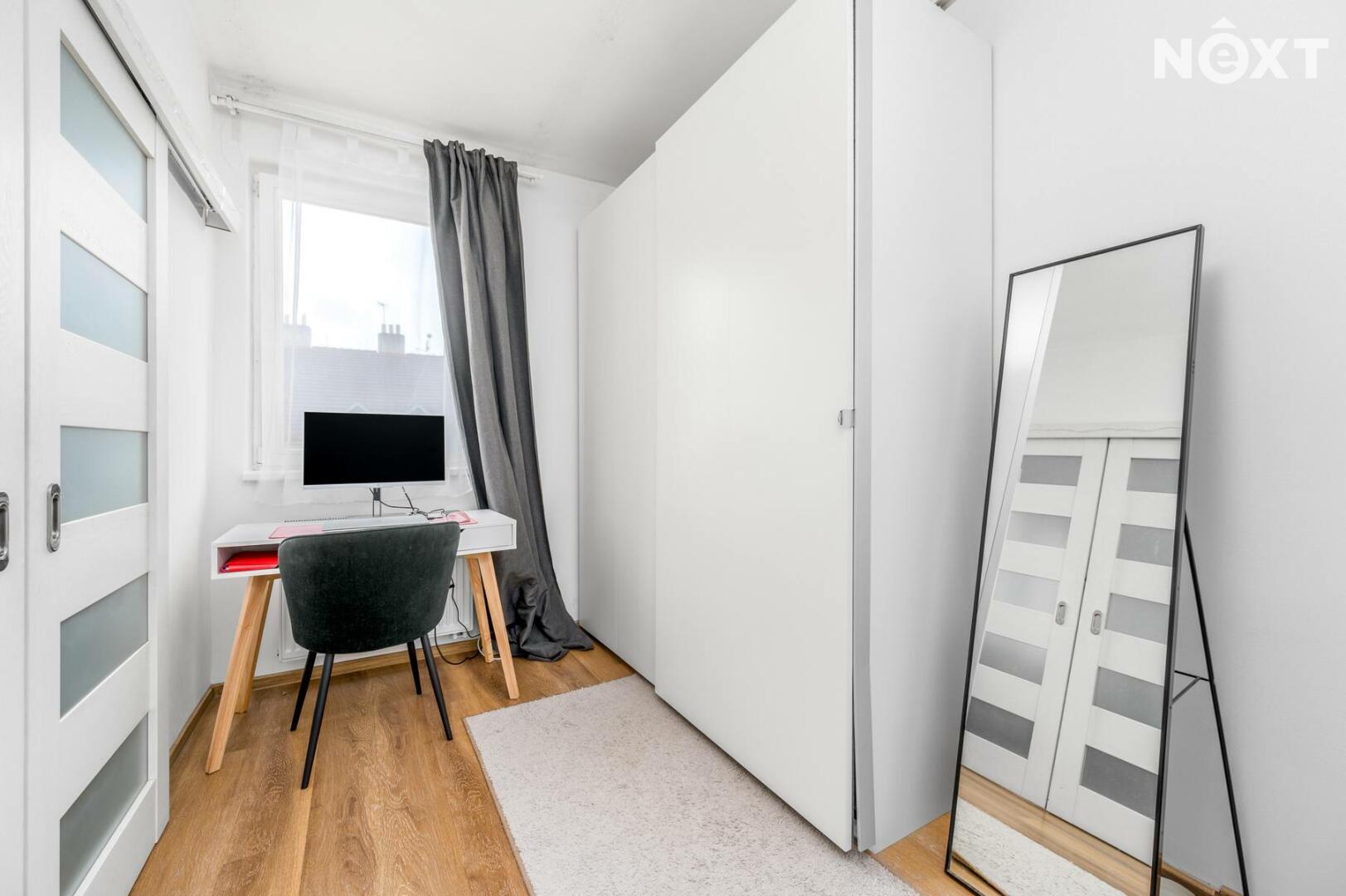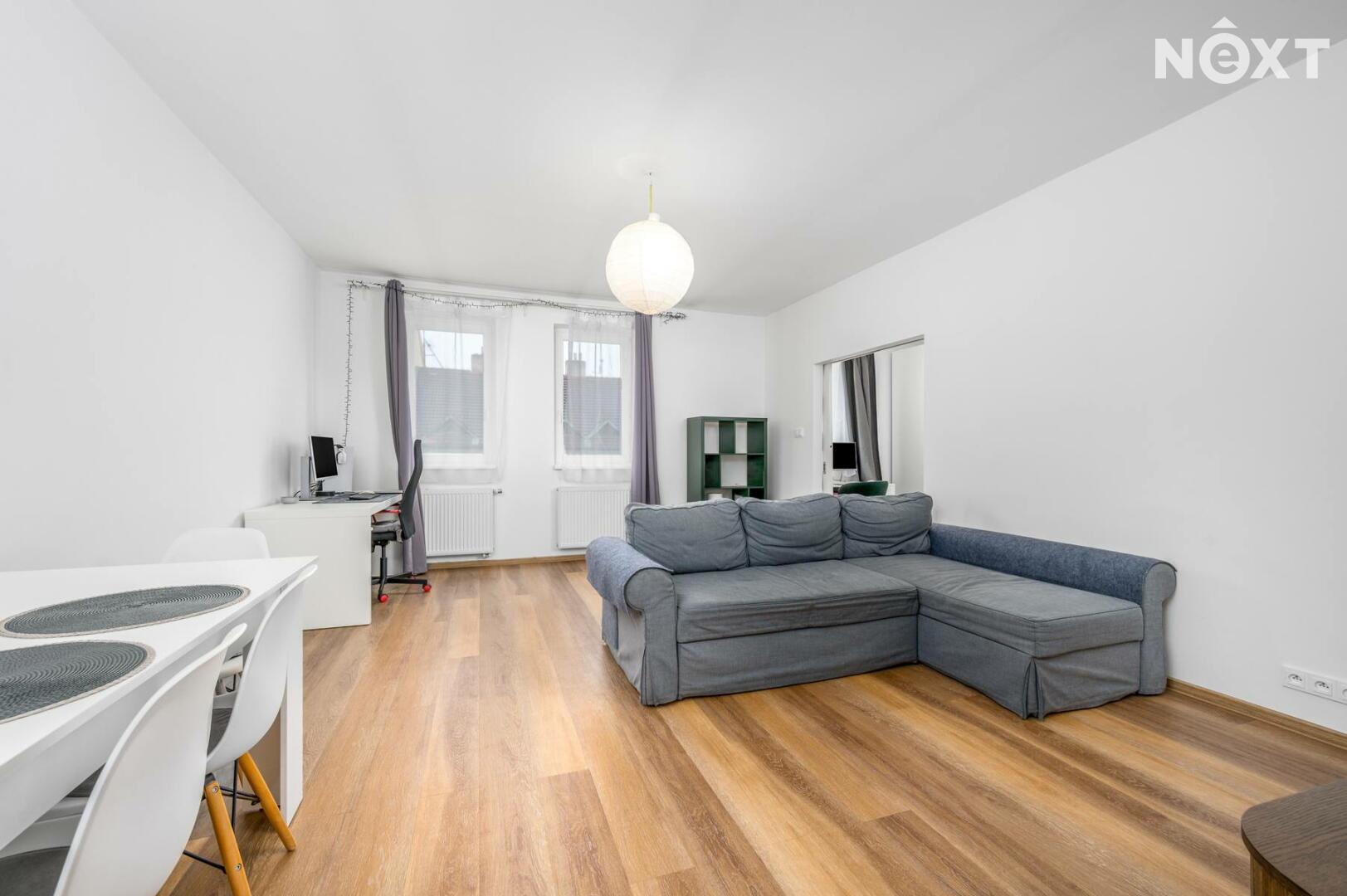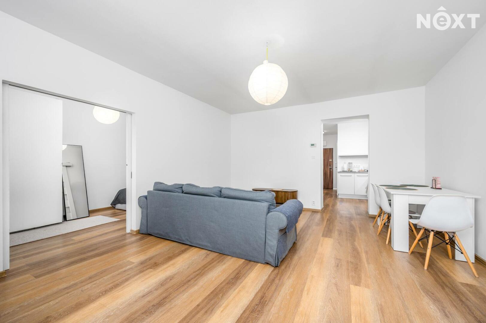 Byt prošel kompletní rekonstrukcí a nabízí příjemné, moderní bydlení s praktickým uspořádáním. Dominantou bytu je prostorný obývací pokoj (cca 23,8 m²) a oddělený kuchyňský kout. Kuchyň je kompletně vybavena spotřebiči. Na obývací pokoj navazuje samostatná ložnice s pracovním koutem (cca 12,4 m²).