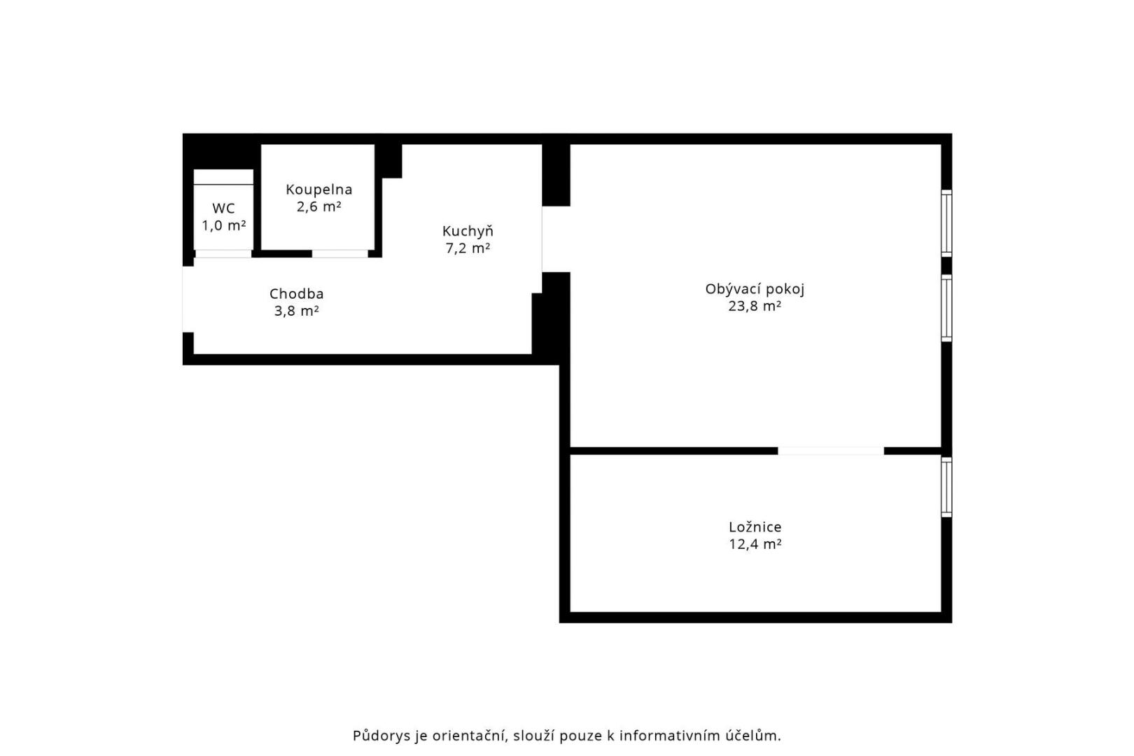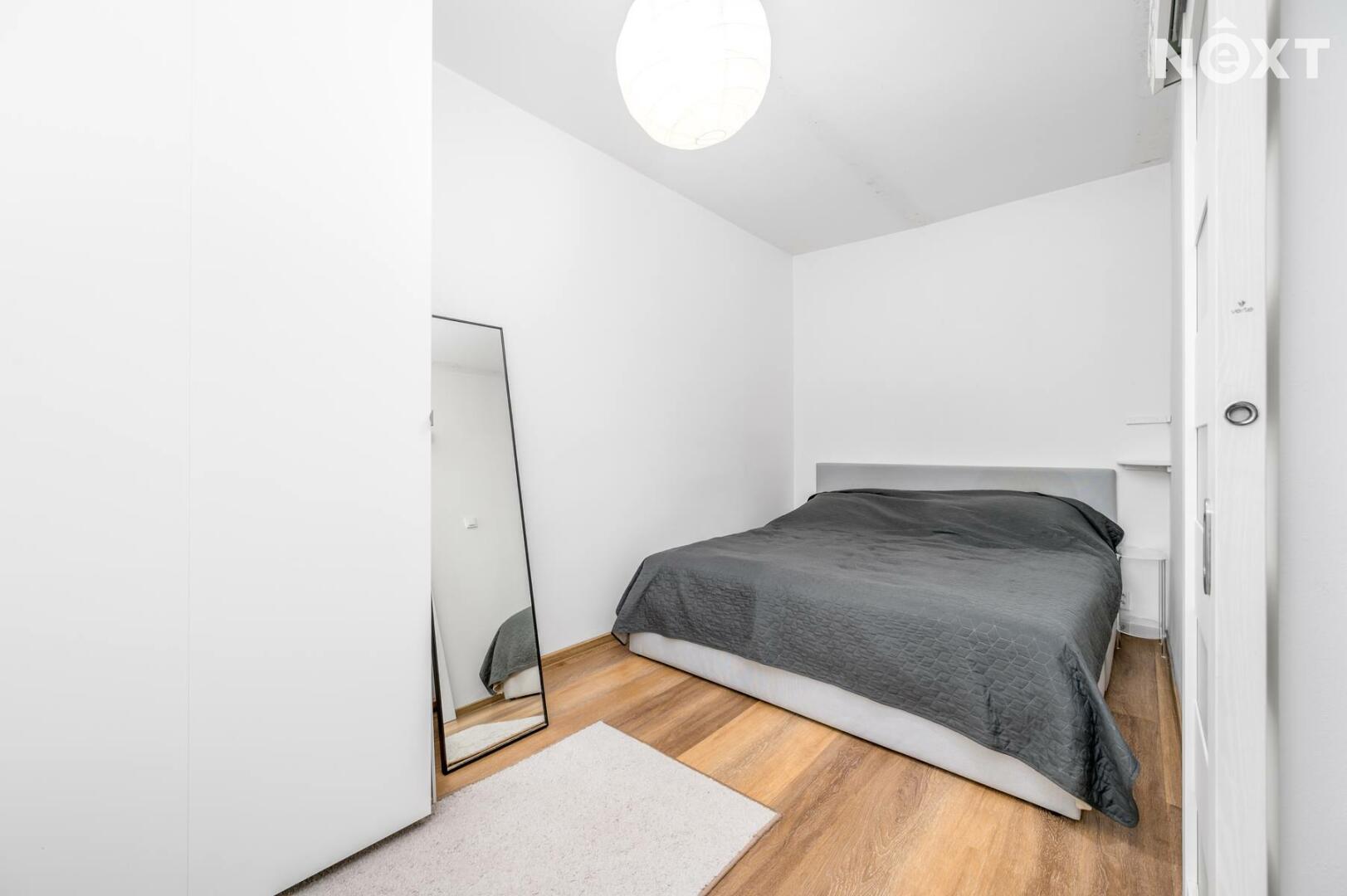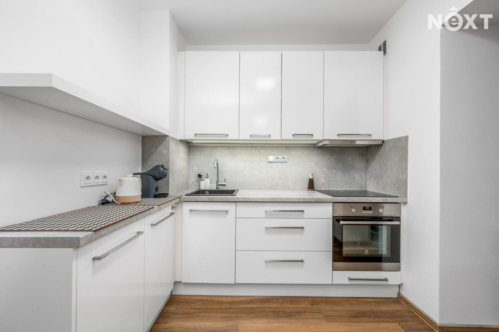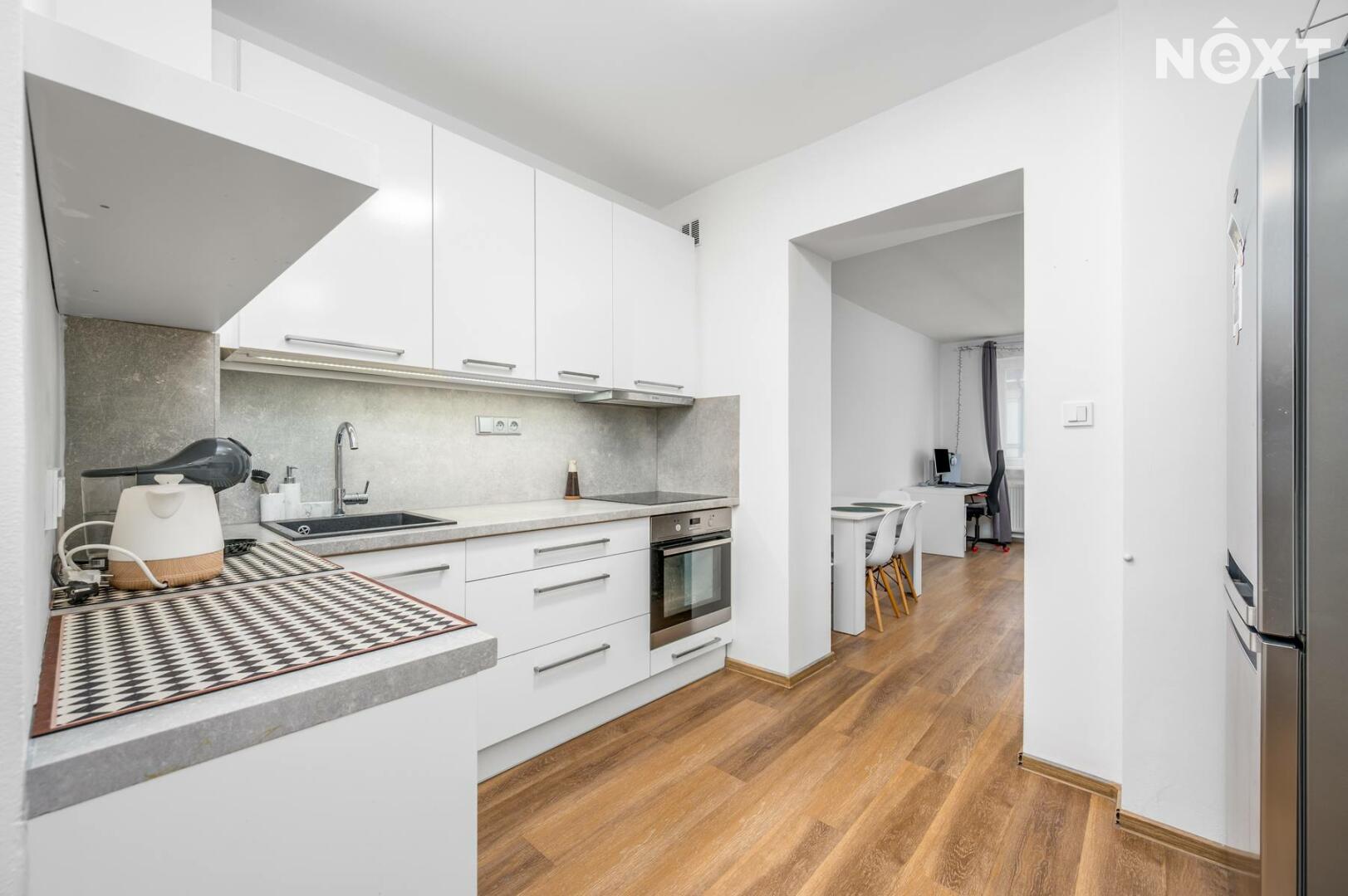 Byt prošel kompletní rekonstrukcí a nabízí příjemné, moderní bydlení s praktickým uspořádáním. Dominantou bytu je prostorný obývací pokoj (cca 23,8 m²) a oddělený kuchyňský kout. Kuchyň je kompletně vybavena spotřebiči. Na obývací pokoj navazuje samostatná ložnice s pracovním koutem (cca 12,4 m²).