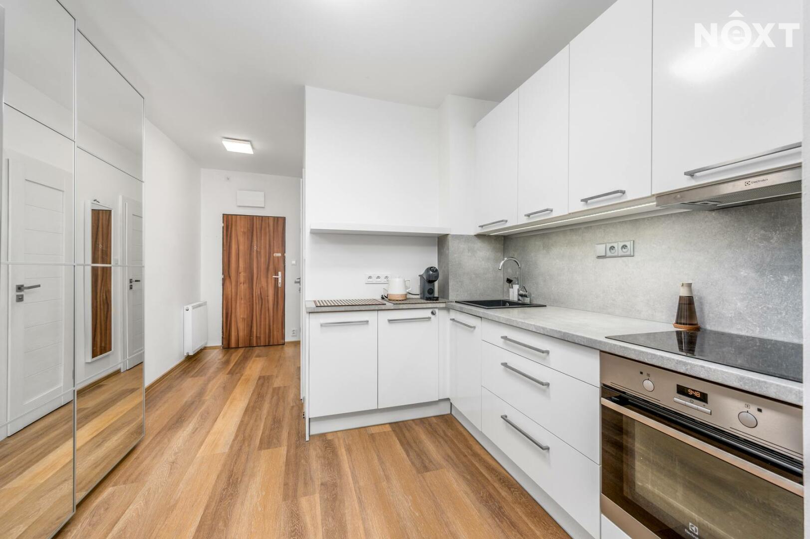 Byt působí velmi světlým a vzdušným dojmem, má čistý moderní design a je připraven k nastěhování.