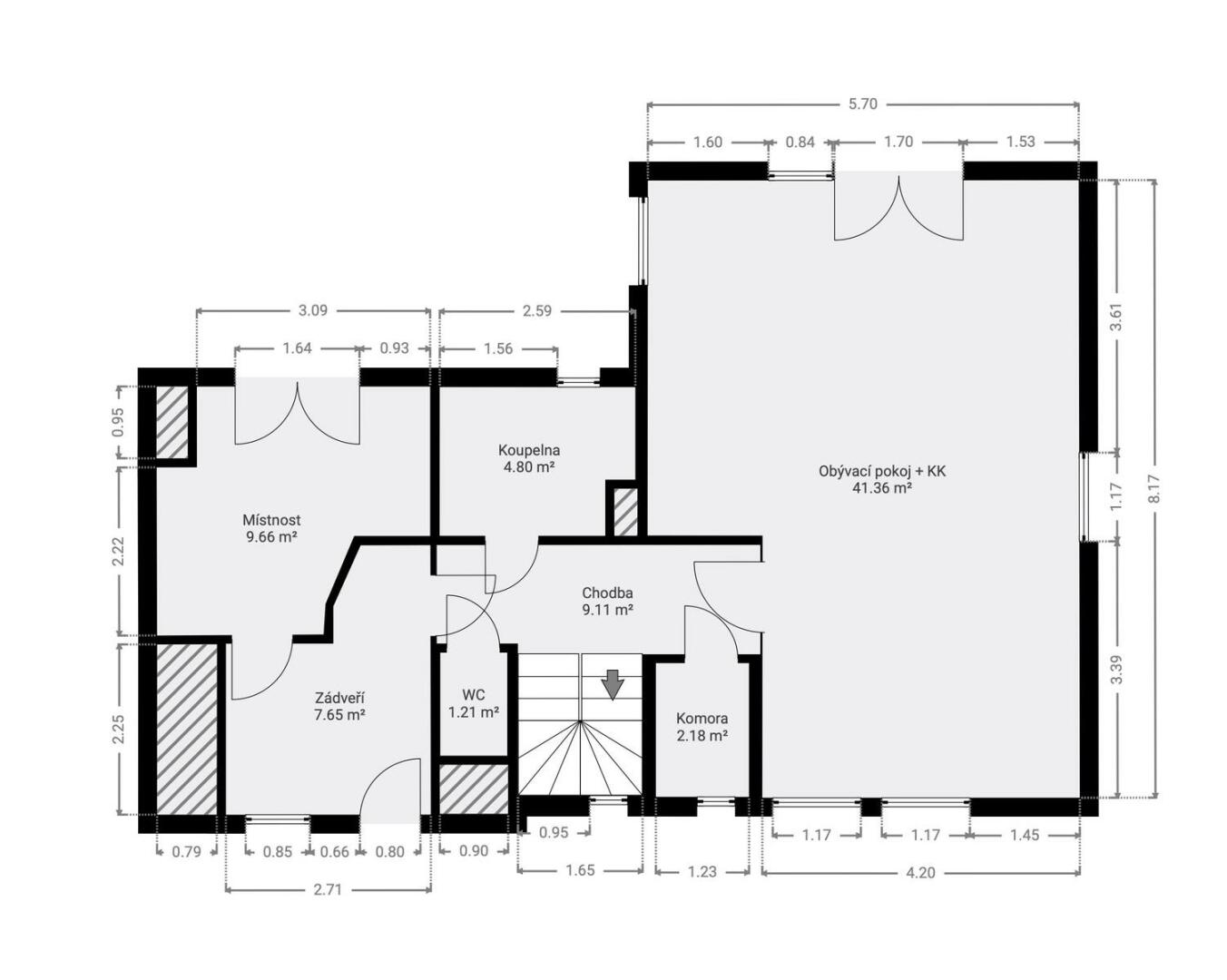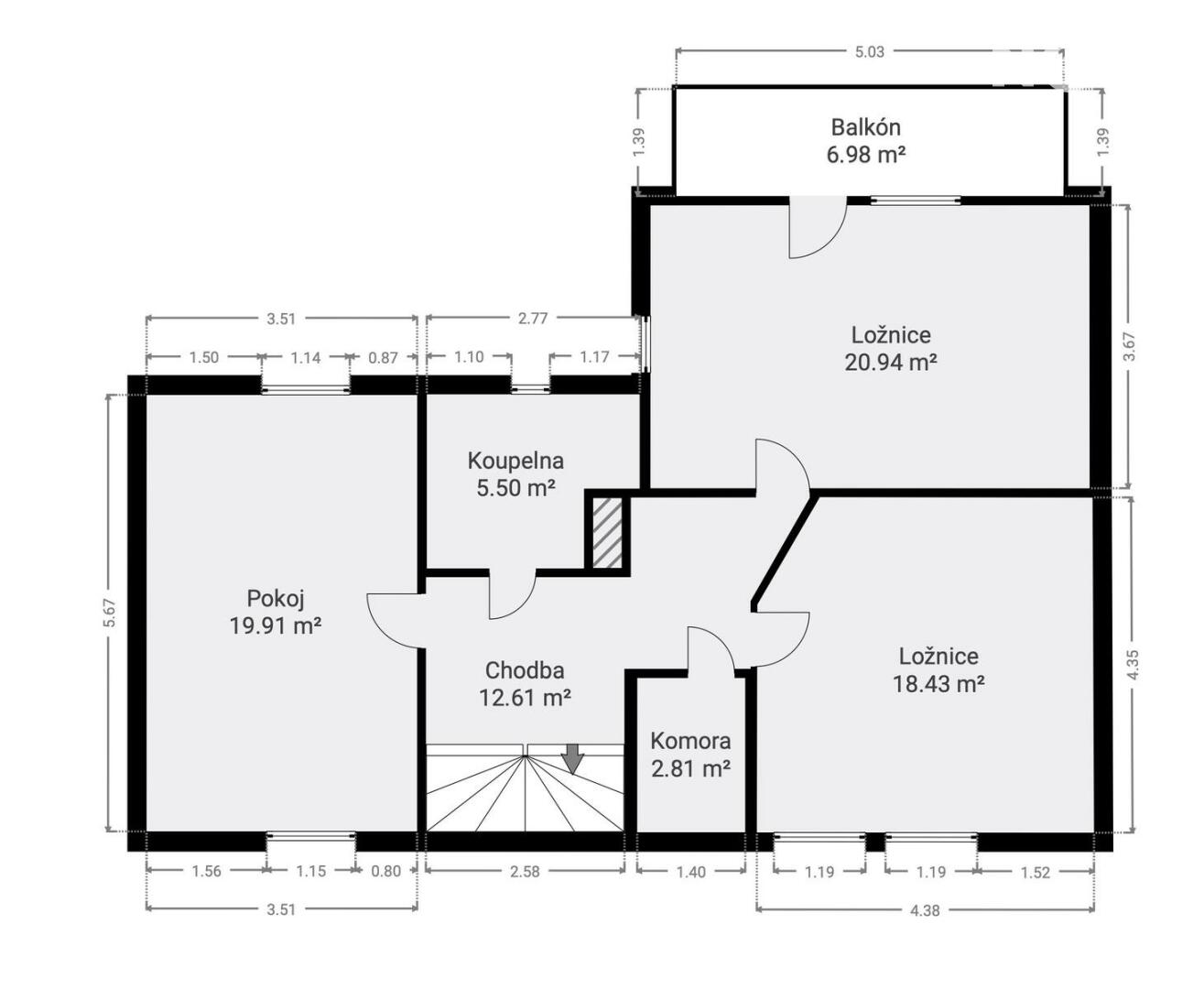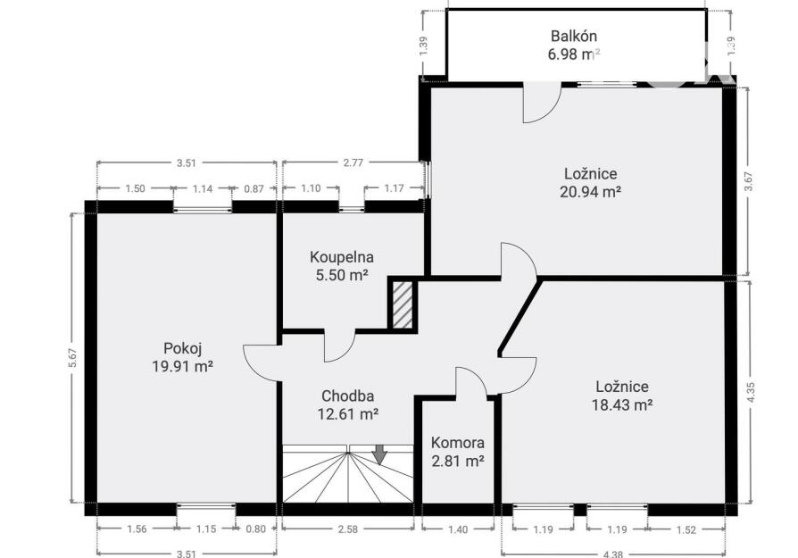 Dispozice 5+kk doplňují dvě koupelny a prakticky řešené úložné prostory, takže každá věc má své místo – a pokud ne, pořád je kam ji dát.