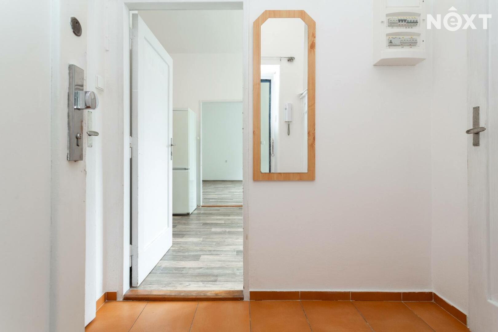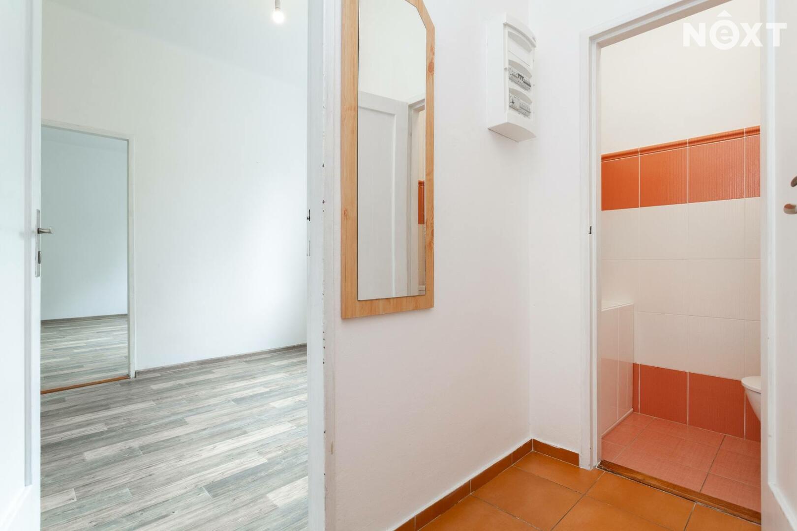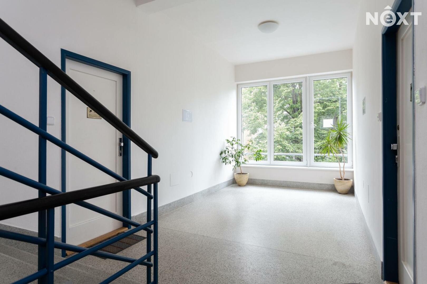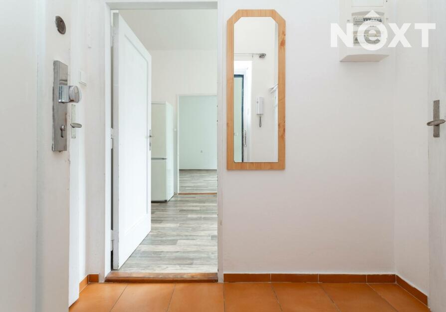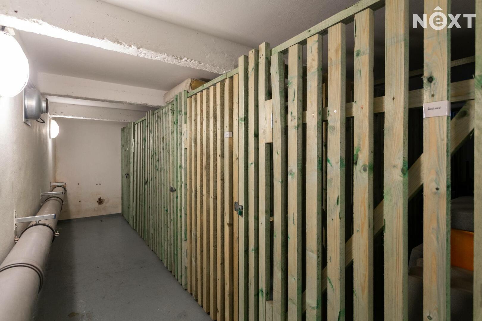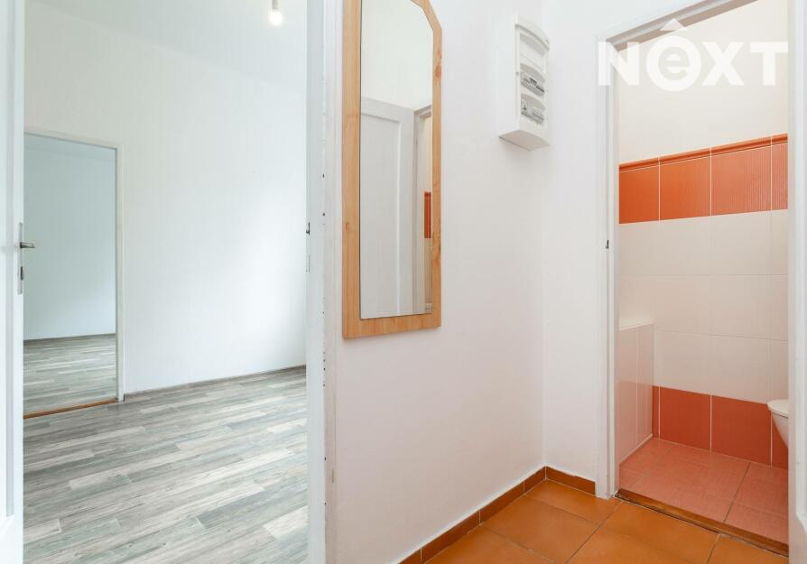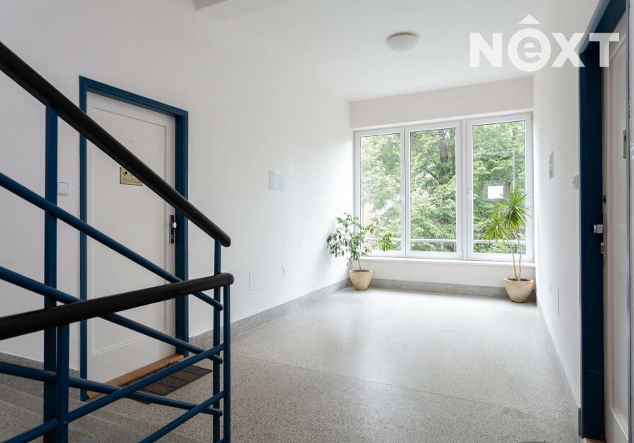 Při vstupu do bytu se nachází špajzka, koupelnou s vanou a umyvadlem a samostatná toaleta. Z chodby se vstupuje do obytné místnosti s kuchyňským koutem na kterou navazuje další, velká obytná místnost. Dům je po celkové revitalizaci, chodby jsou prostorné, v domě je výtah. K bytu je velký 6 m2 sklep.