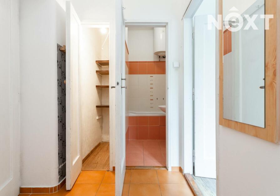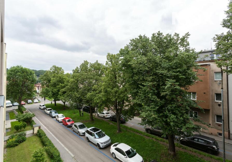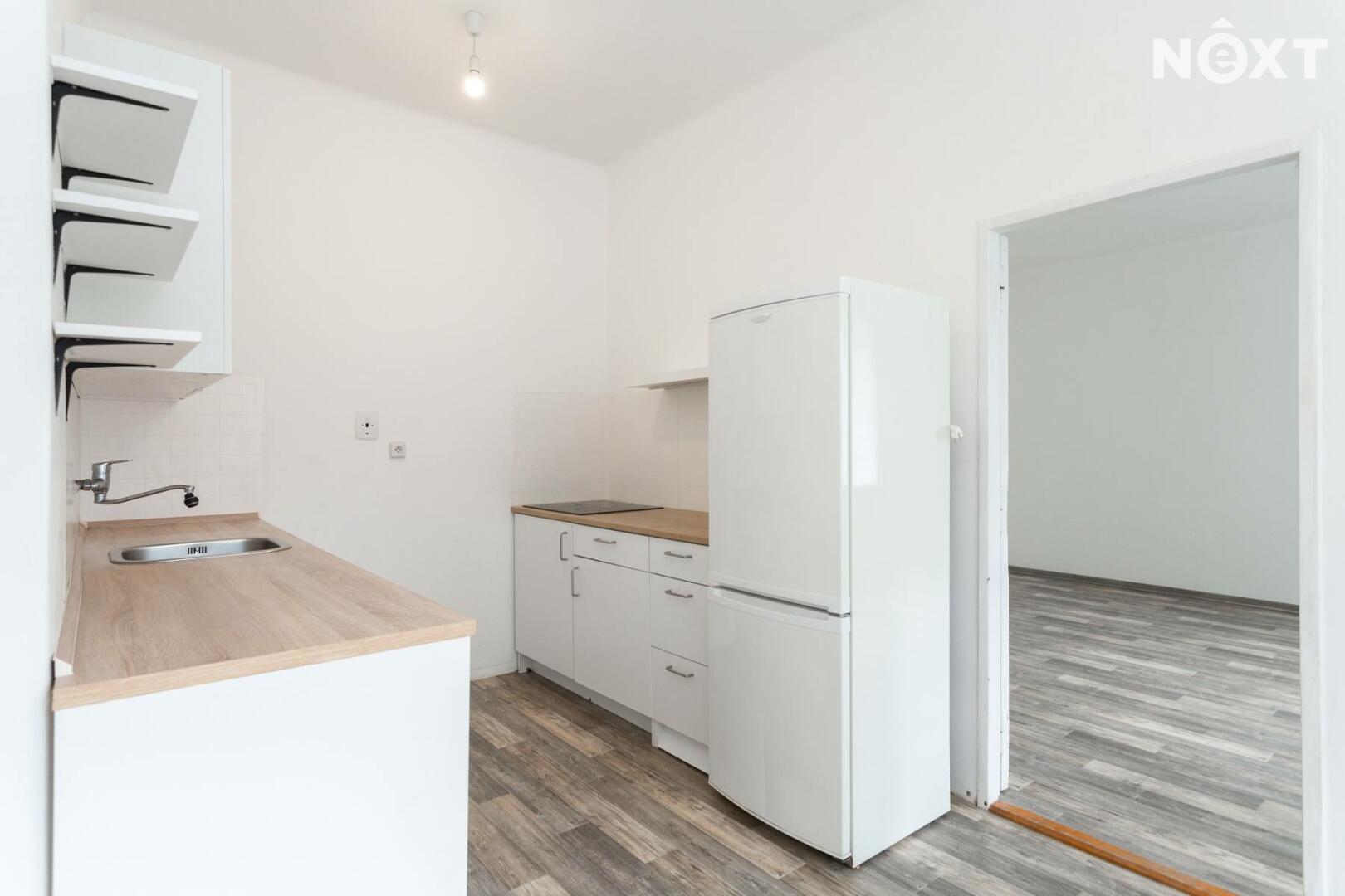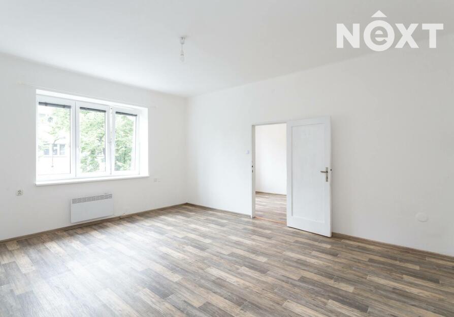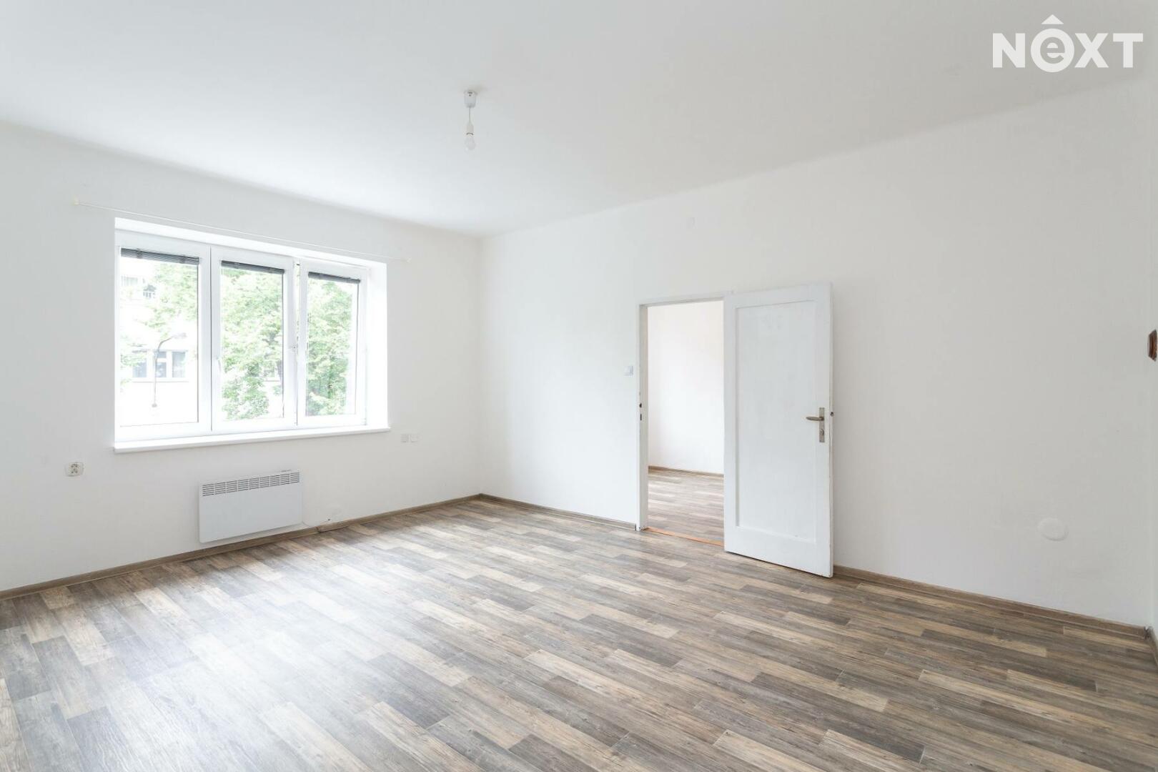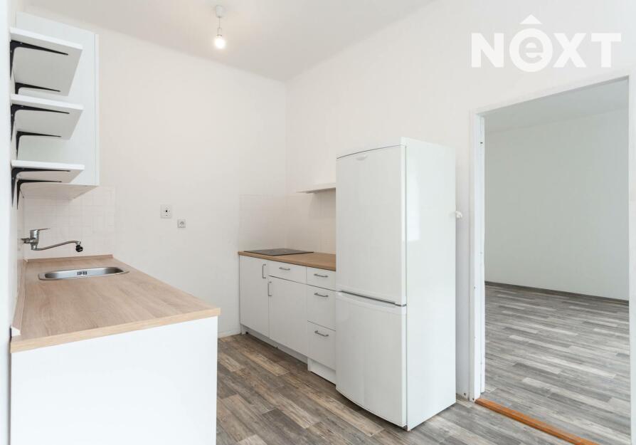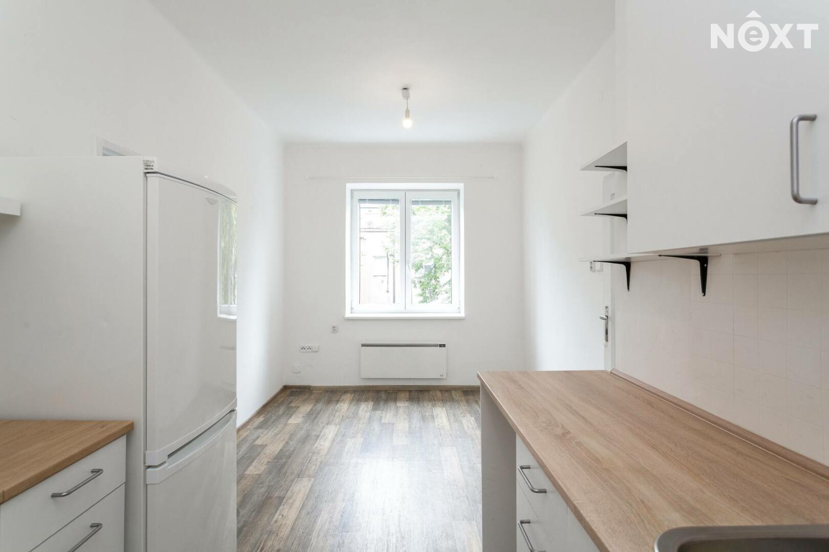 Při vstupu do bytu se nachází špajzka, koupelnou s vanou a umyvadlem a samostatná toaleta. Z chodby se vstupuje do obytné místnosti s kuchyňským koutem na kterou navazuje další, velká obytná místnost. Dům je po celkové revitalizaci, chodby jsou prostorné, v domě je výtah. K bytu je velký 6 m2 sklep.