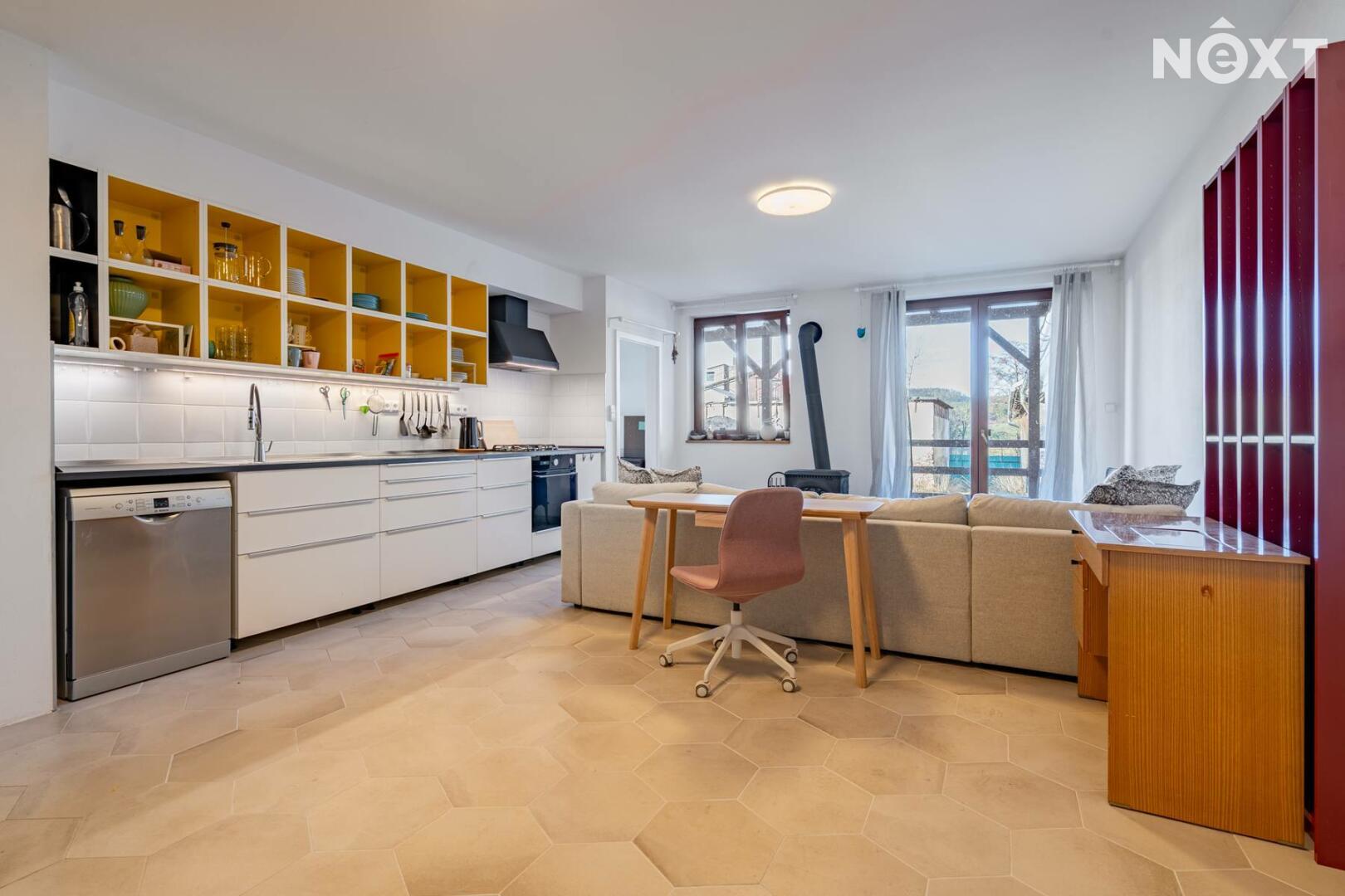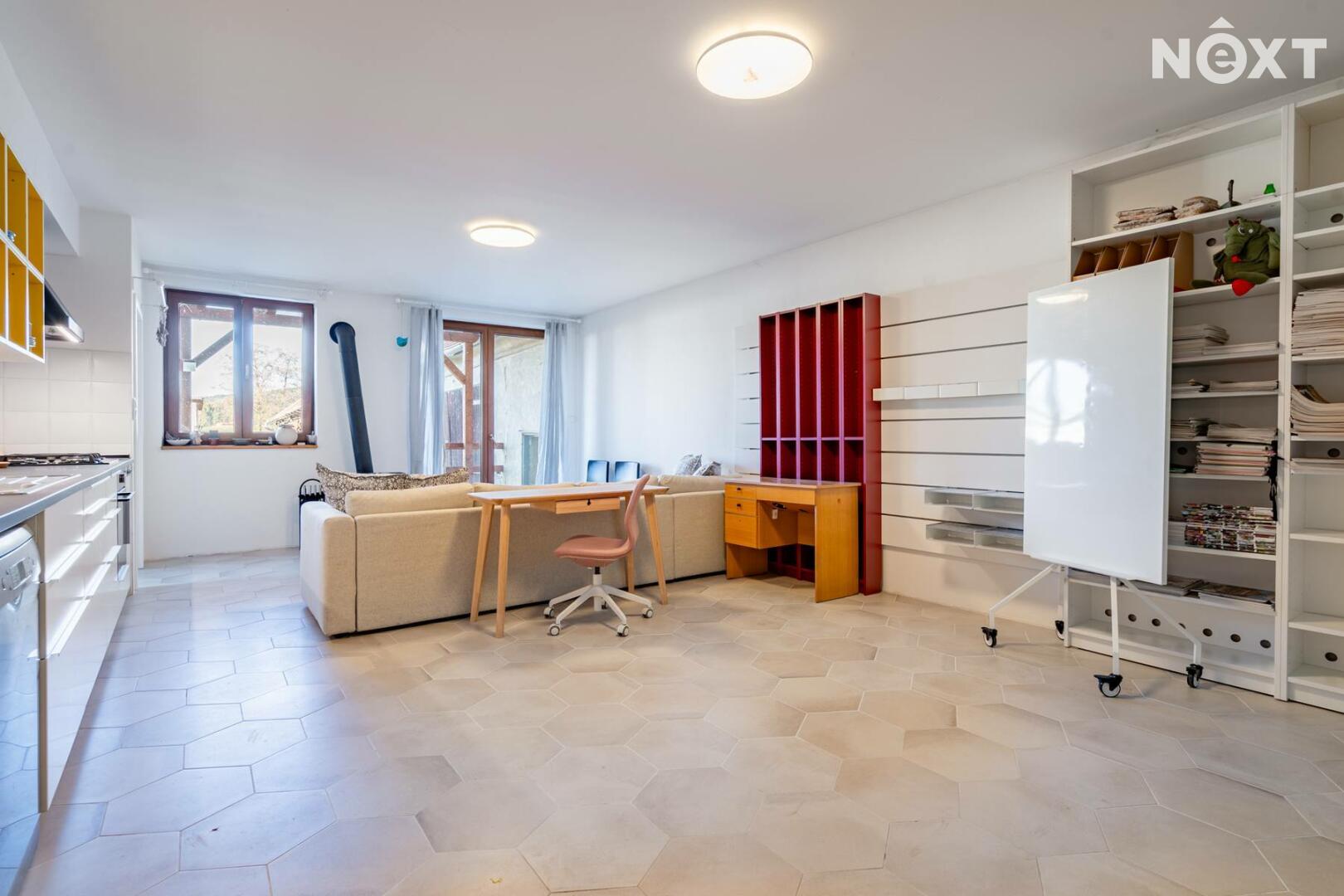 Další částí objektu je samostatný prostor pro obchod nebo služby, který je také po rekonstrukci. Díky tomu může nový majitel okamžitě využít potenciál nemovitosti například pro obchod, kancelář, ateliér, galerii nebo jiné podnikání.