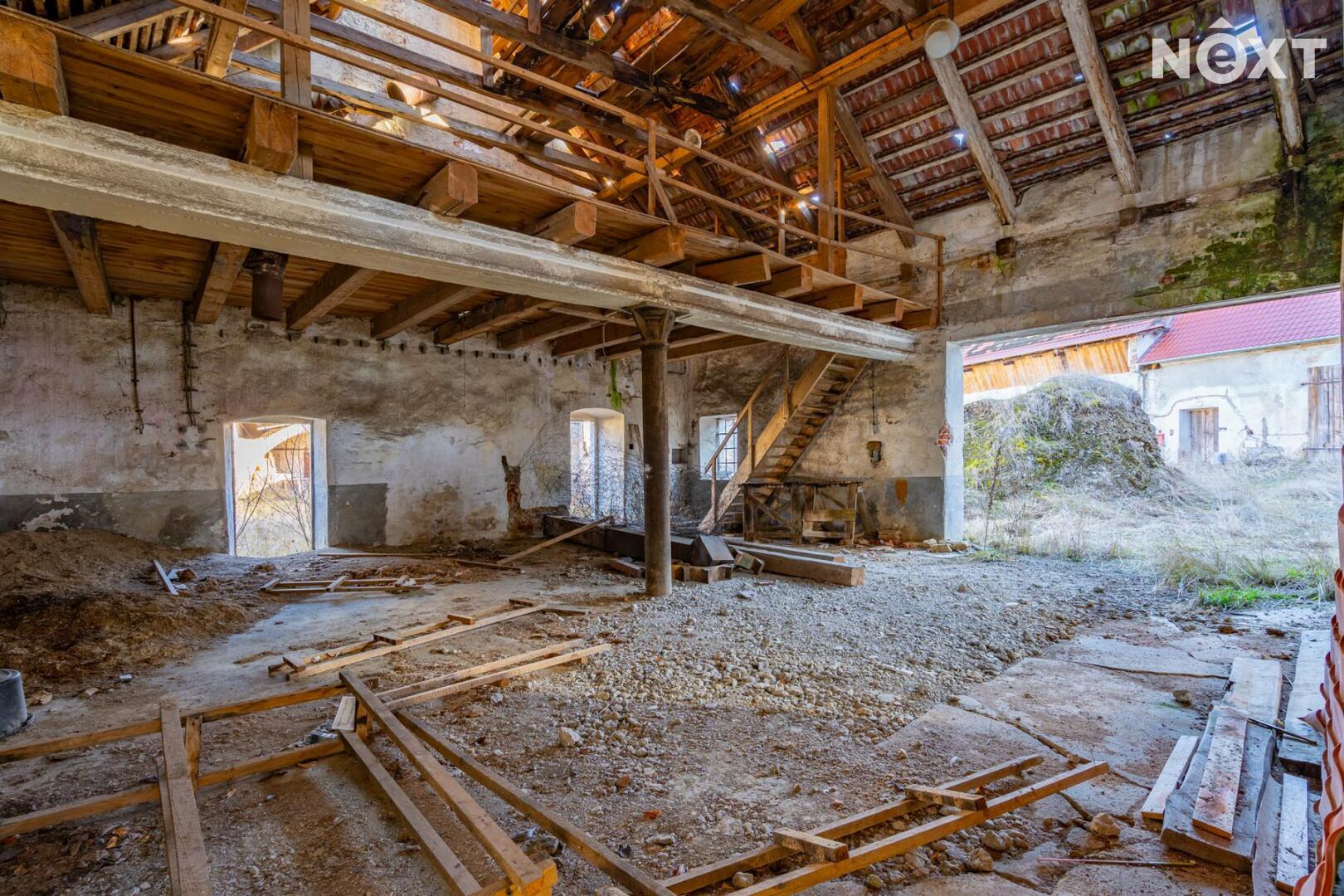 Velké hospodářské prostory statku dávají novému majiteli možnost vytvořit z nemovitosti opravdu jedinečný projekt.