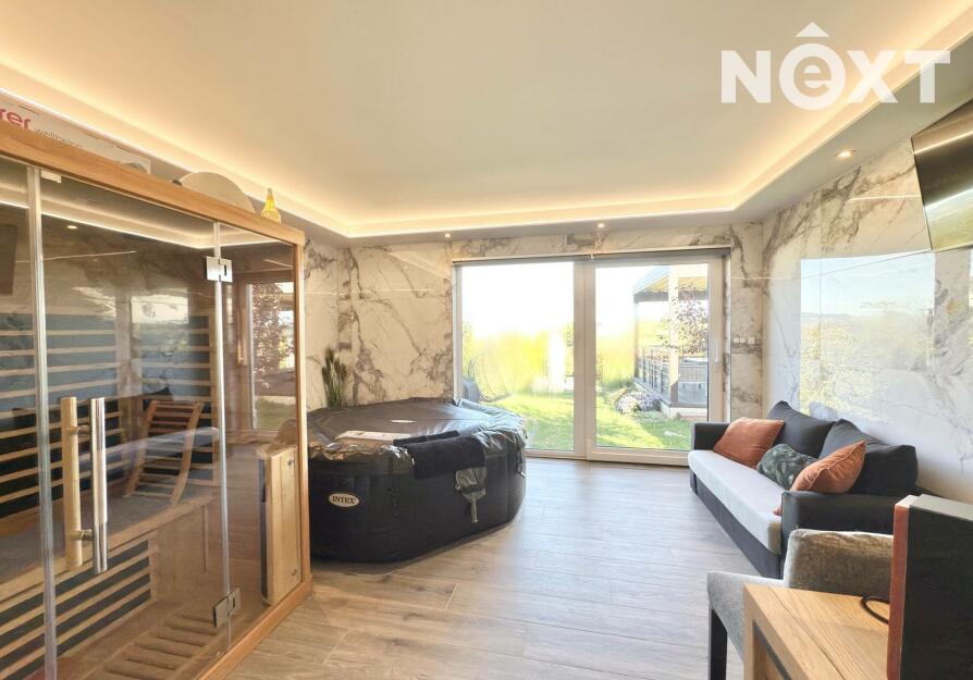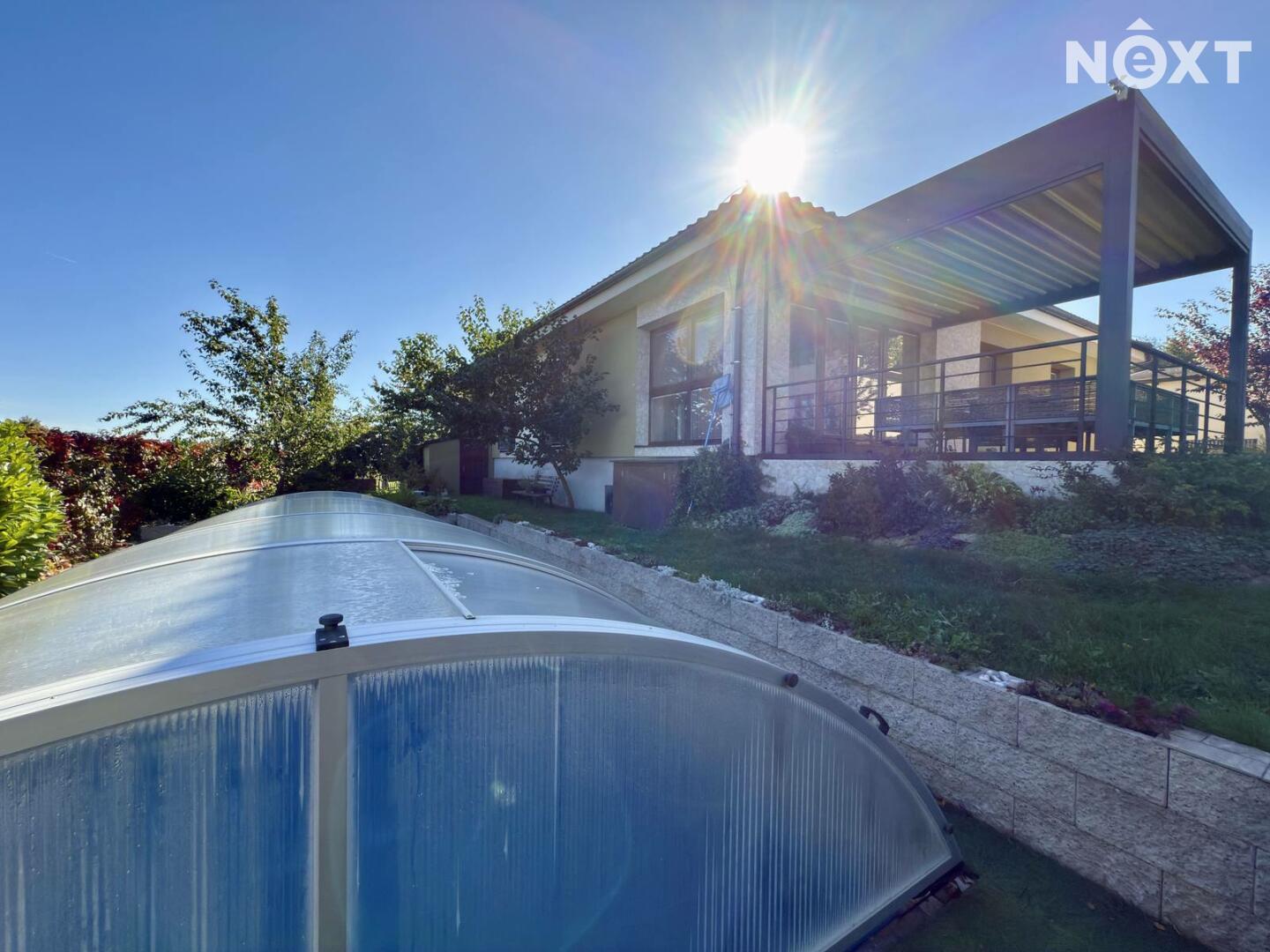 Ve výhradním zastoupení nabízíme výjimečný, moderní, nedávno postavený, rodinný dům 6+KK. Tento prostorný bungalov s wellness samostatnou budovou a bazénem nabízí pohodlné a energeticky úsporné bydlení na pozemku o velikosti 965 m².
