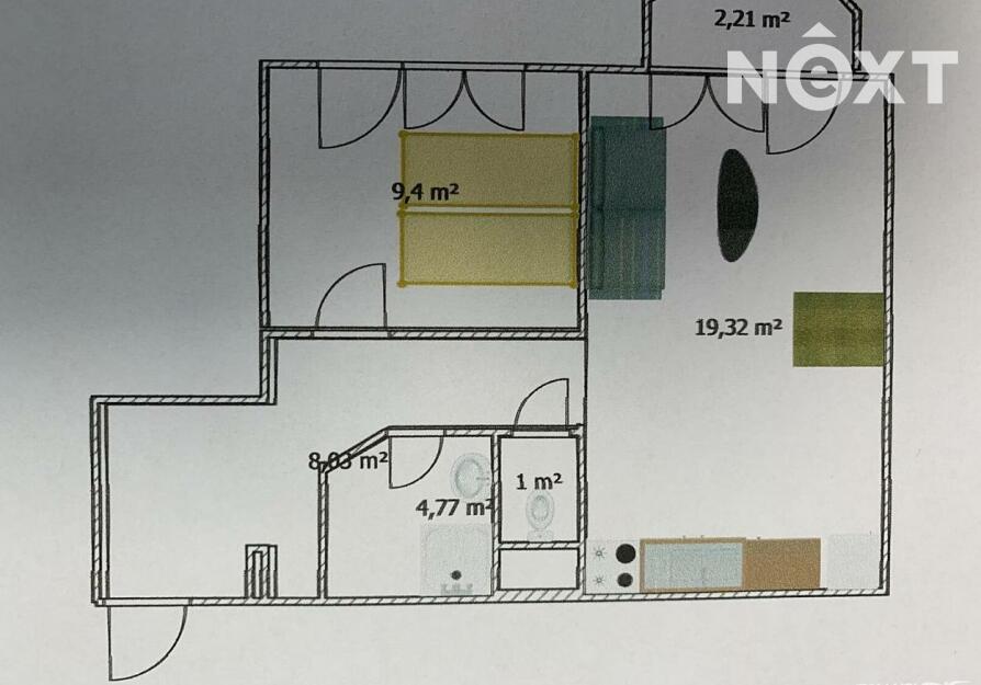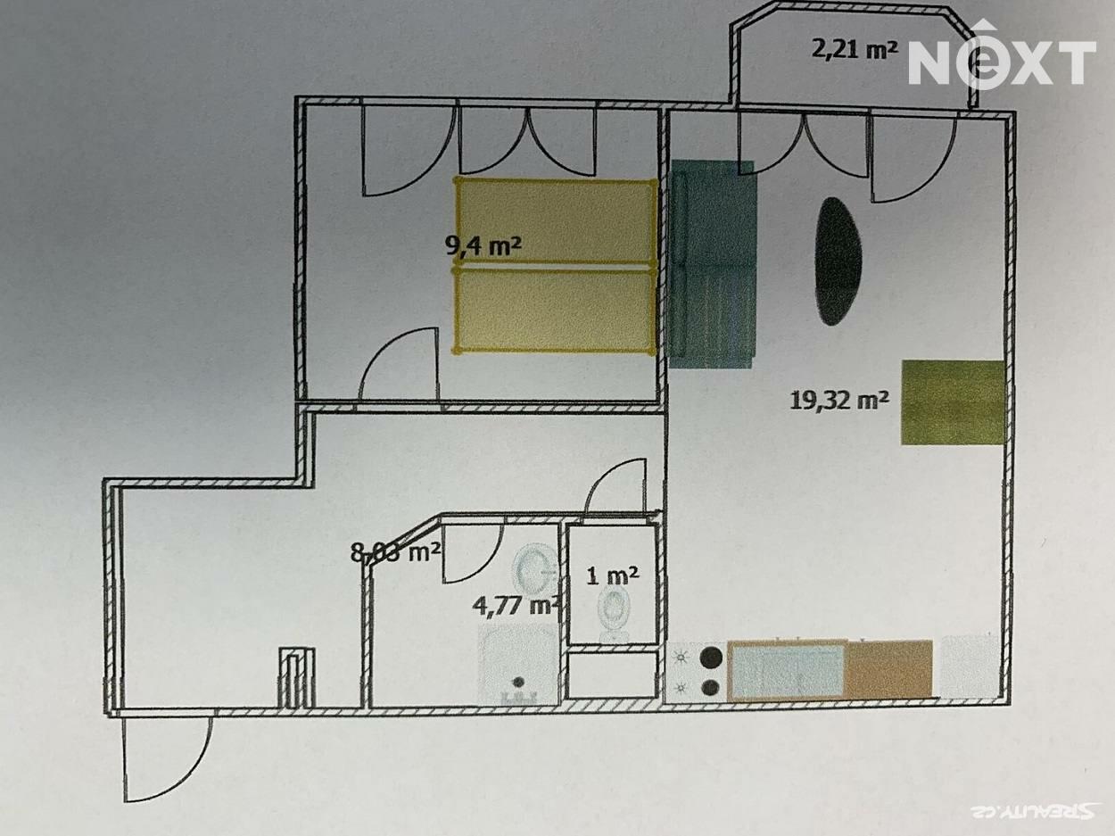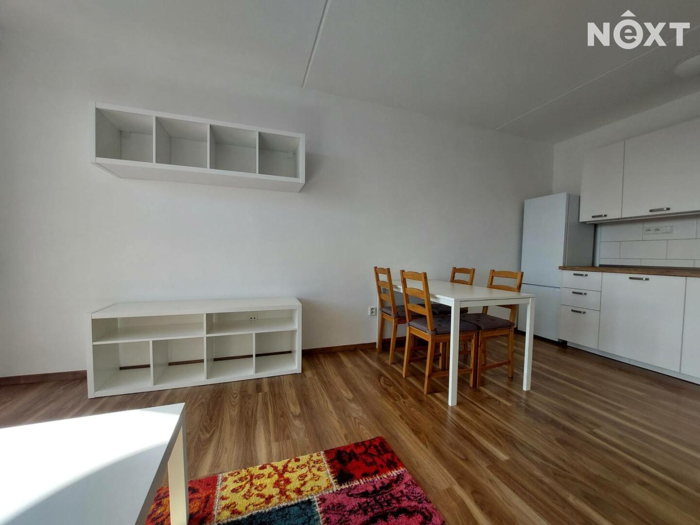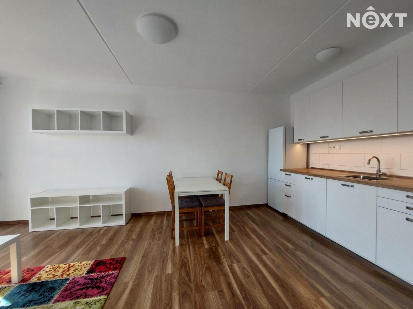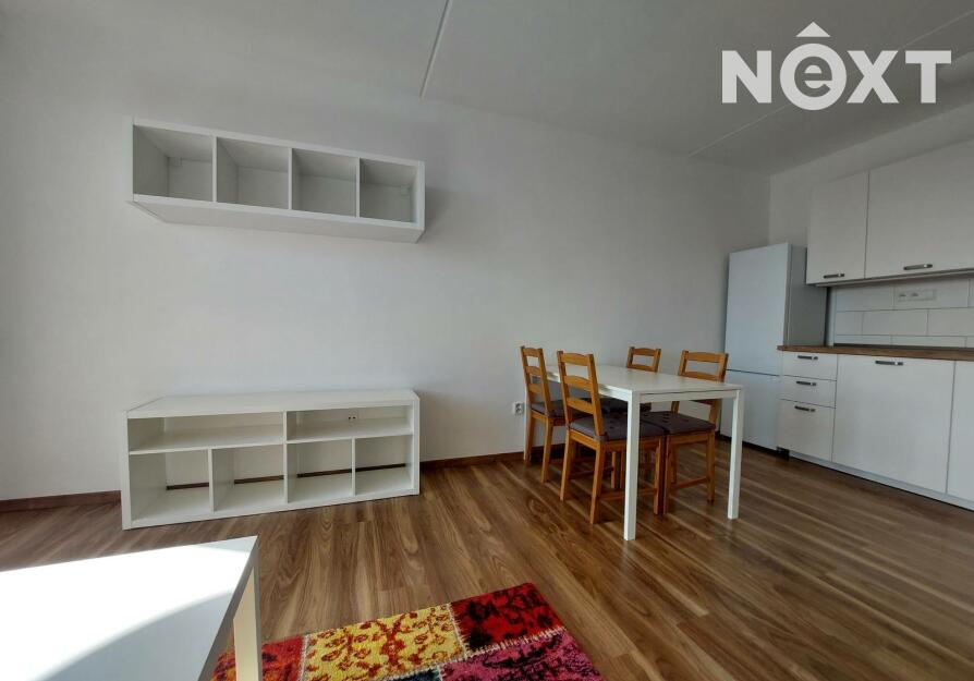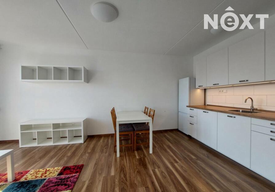 Byt je kompletně vybavený a zařízený novým nábytkem i spotřebiči. Obývací pokoj nabízí rozkládací pohovku, TV stolek, poličky, konferenční stolek a jídelní stůl se čtyřmi židlemi. Součástí je moderní kuchyňská linka IKEA vybavená lednicí s mrazákem, myčkou (60 cm), indukční varnou deskou a multifunkční troubou.