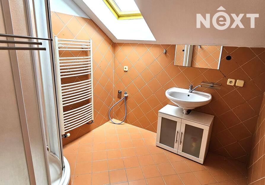 K dispozici: samostatný vstup do objektu, zádveří se skladovacím prostorem a technickou částí s kotlem na plyn pro vytápění a elektrickým bojlerem pro ohřev teplé vody. Do samotného bytu se dále vstupuje po schodišti, chodba, obývací pokoj s kuchyňským koutem cca 34 m2 a výstupem na lodžii cca 4,5 m2, dva samostatné pokoje každý cca 15 m2, koupelna se střešním oknem, sprchovým koutem, umyvadlem a topným žebříčkem cca 5 m2, samostatné WC cca 2 m2 s oknem.