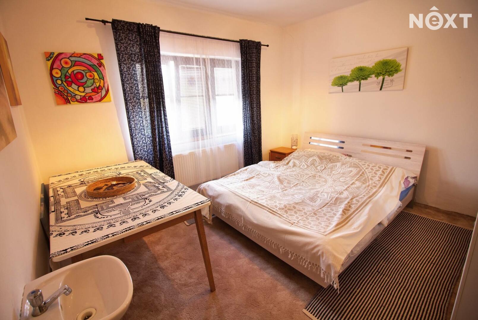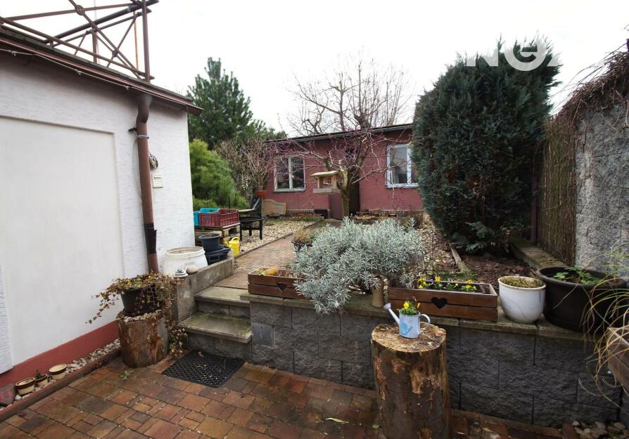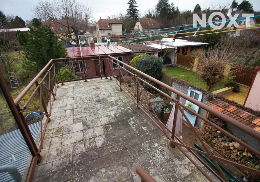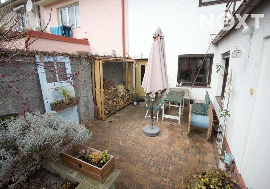 V přízemí se nachází obývací pokoj, kuchyň, koupelna s vanou a samostatná toaleta. Z chodby je vstup na útulný dvorek s posezením, jehož součástí je i menší domek se dvěma místnostmi – ideální jako dílna, sklad nebo letní zázemí.