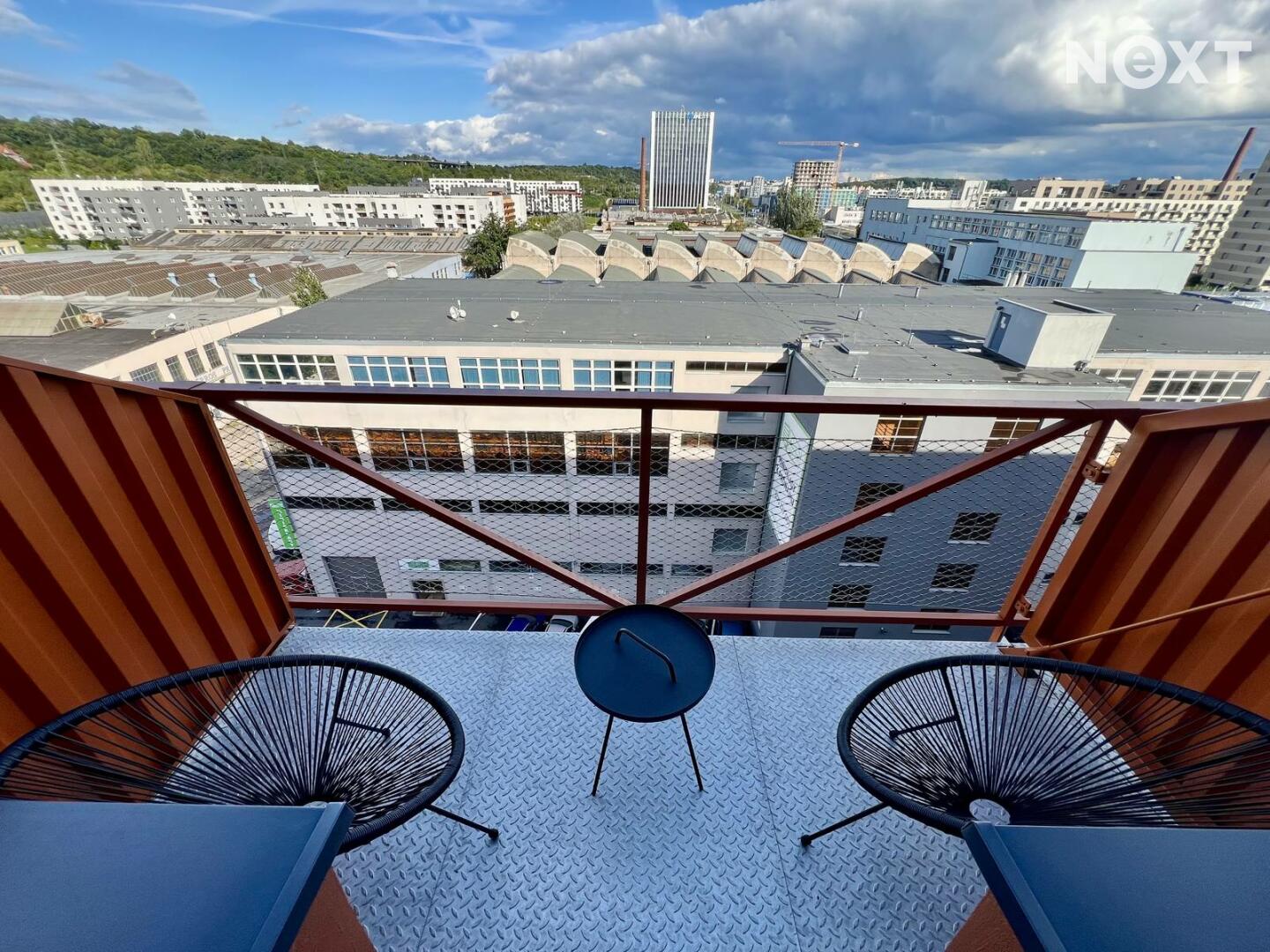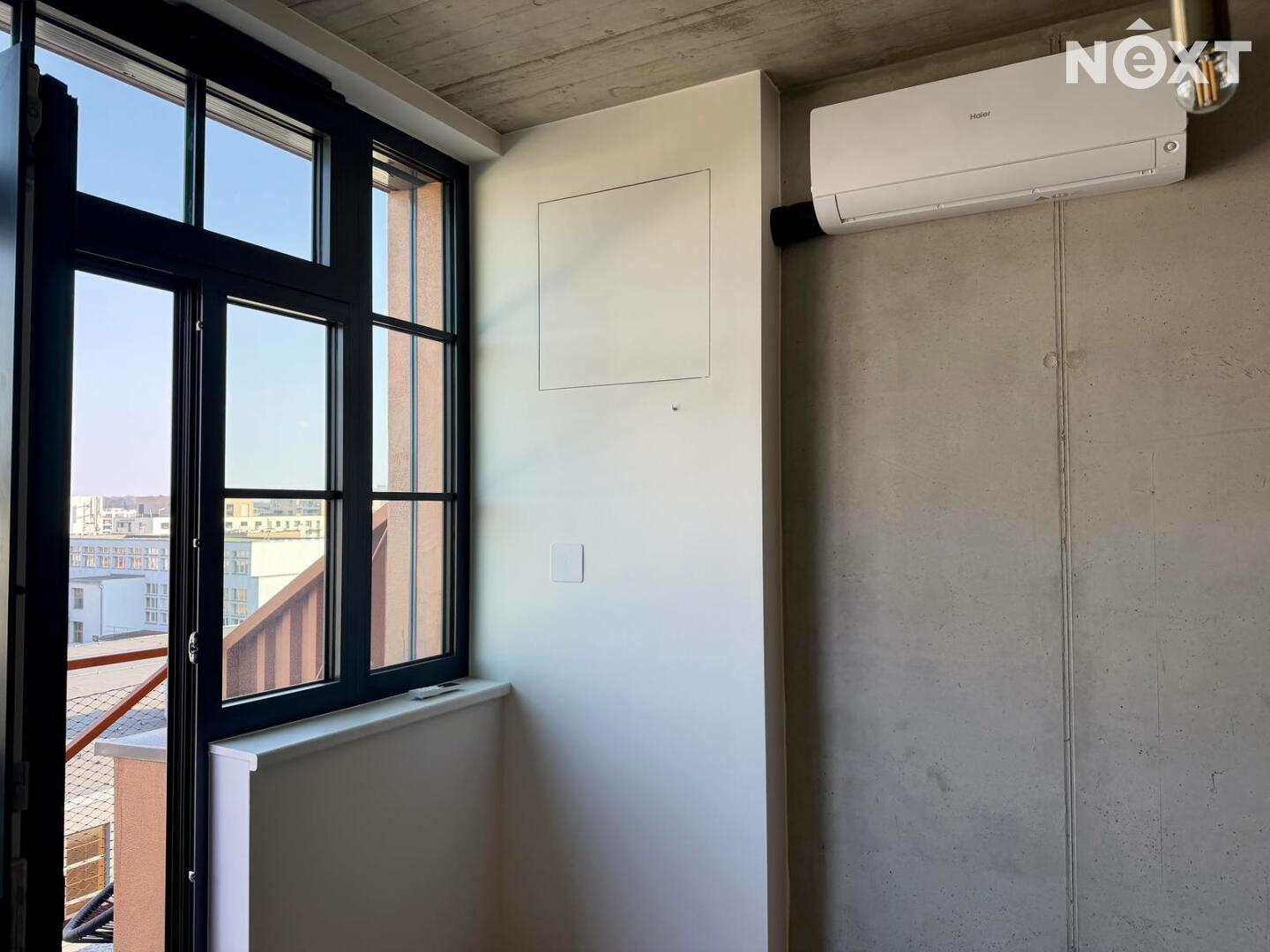 Lofty Kolbenova nabízí k pronájmu moderní byt 1+kk o celkové ploše 37,7 m2, podlahové ploše 33,2 m² a prostorným balkonem 4,5 m², situovaný v 5. nadzemním podlaží v jedinečné rezidenci vzniklé přestavbou bývalé tovární budovy (Masák & Partner) s nadčasovým designem.