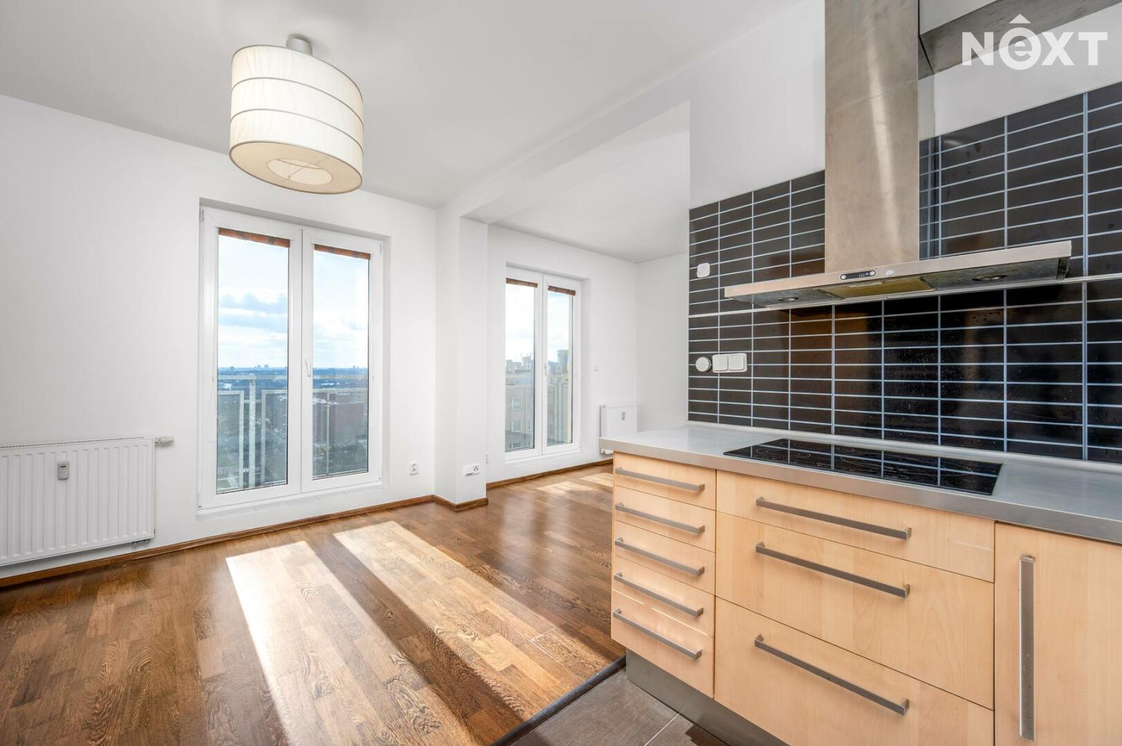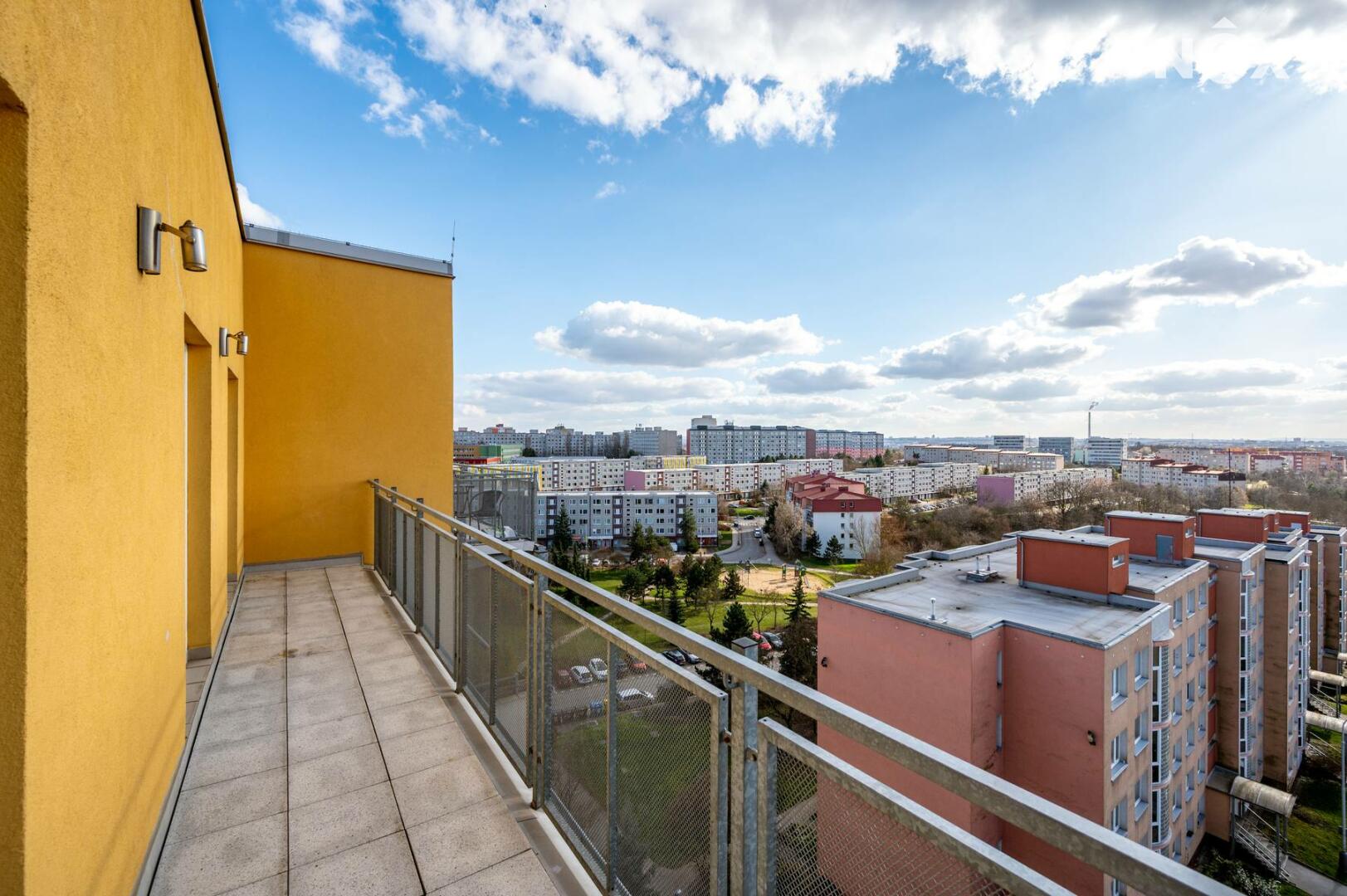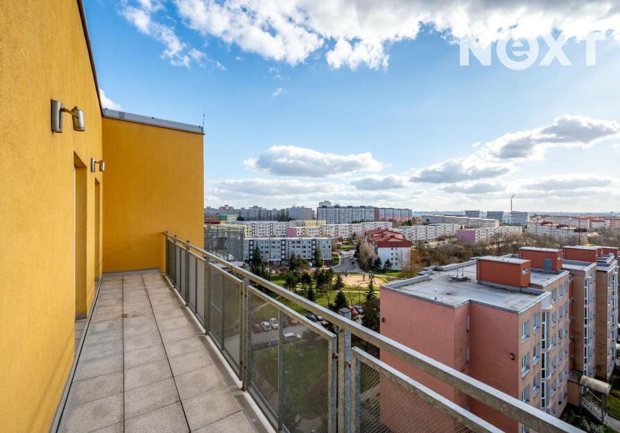 Exkluzivně – zánovní, slunný, moderní byt v os. vlastnictví 2+kk o rozloze 52,07 m², situovaný v podlaží elegantní cihlové nástavby panelového bytového domu z roku 2009 s prostornou terasou (11,8 m²) a krásnými výhledy na Prahu. Ideální poloha: pouhé 4 minuty chůze od Metra Rajská zahrada v ulici Pospíchalova, Praha 9. Moderní bydlení bez kompromisů: BD je zateplený, udržovaný, disponuje výtahem. Výhodou je velmi dobré hospodaření SVJ bez úvěru s naspořeným kontem. Proběhla rekonstrukce balkónů a zateplení střechy domu s použitím termoplastické elastomerní fólie. Nosná konstrukce původní stavby je dle typových podkladů s dodatečně provedeným zateplením.