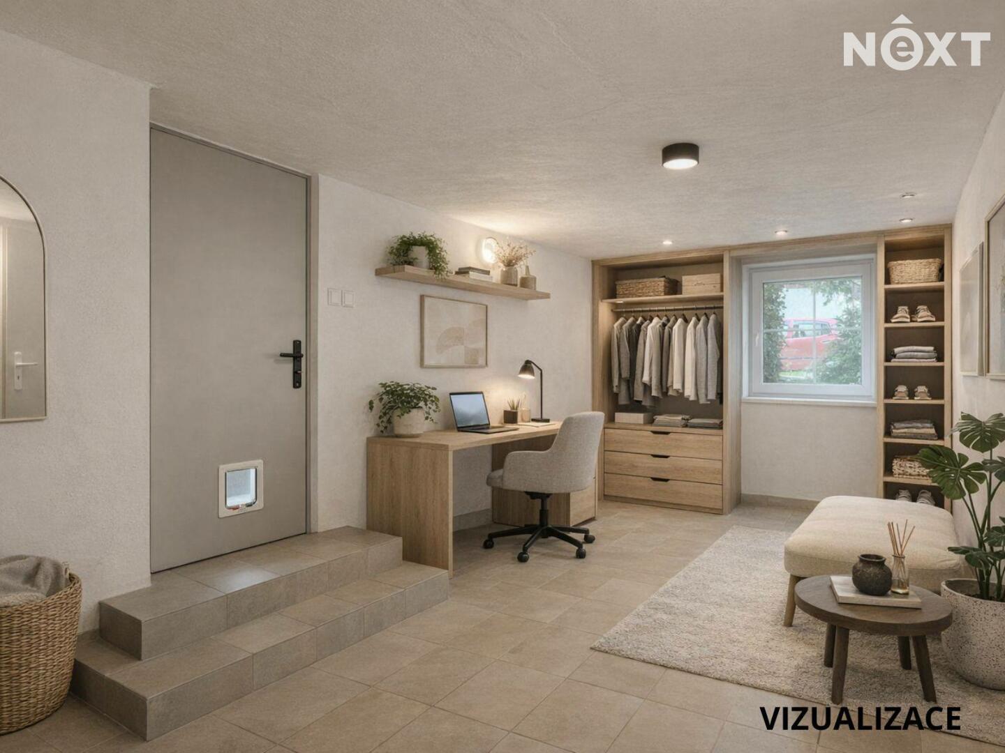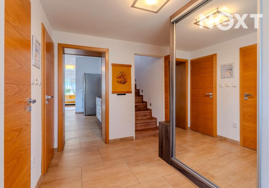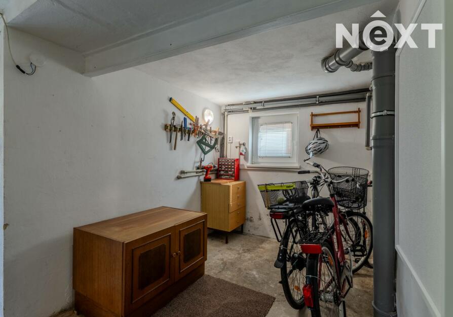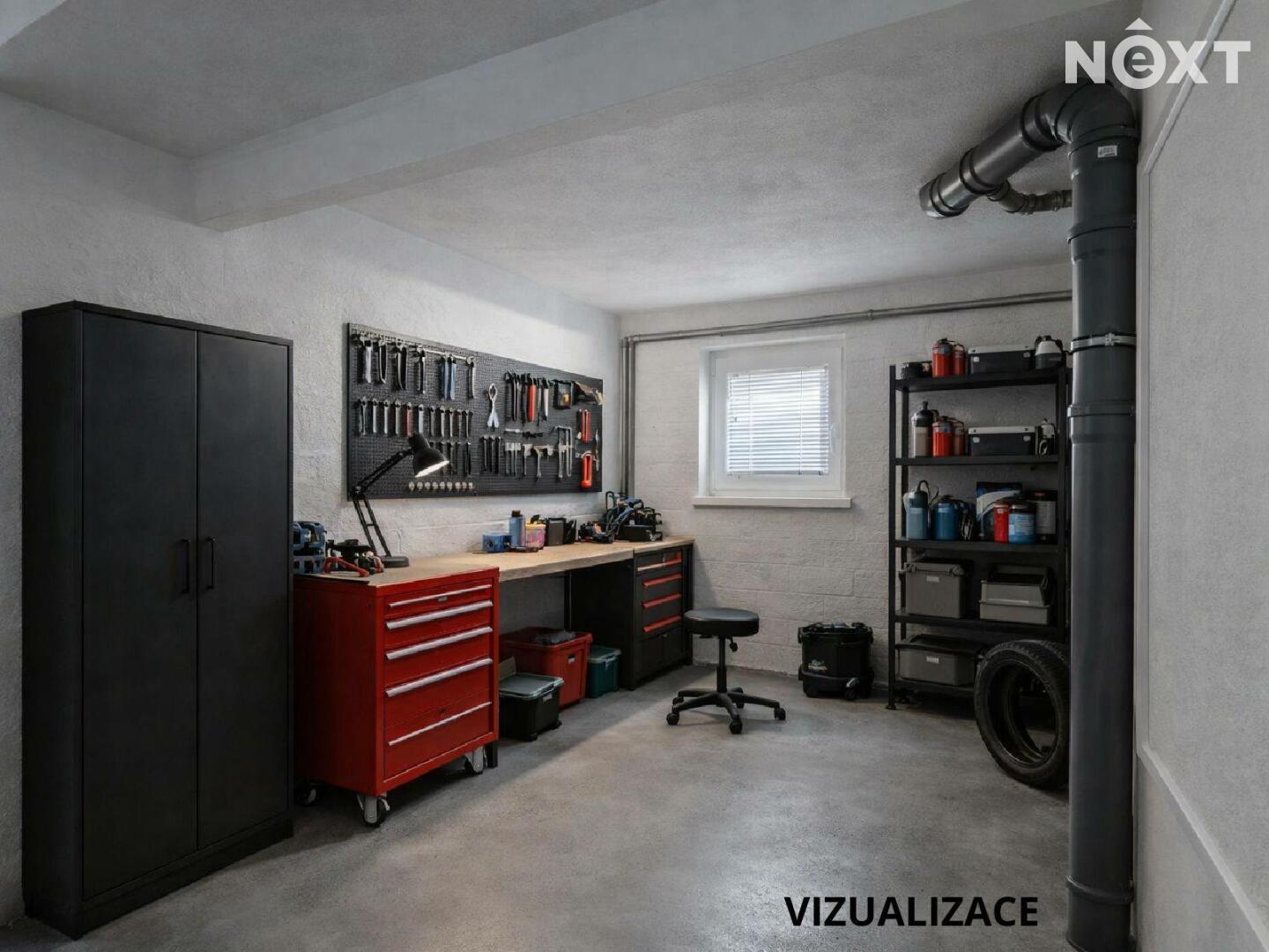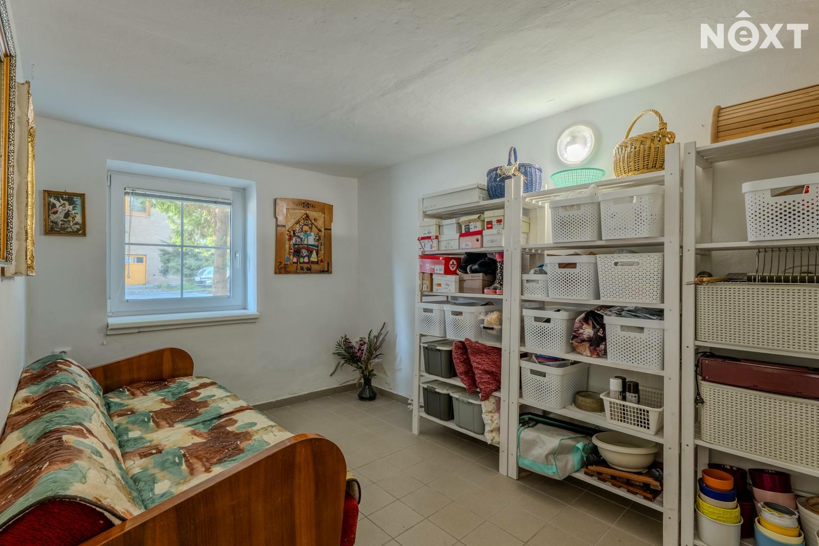Suterén - samostatné WC s umyvadlem, technická místnost, dvě spíše s možností předělat na budoucí koupelnu a dílnu, kuchyně a dvě místnosti, které čekají na své využití např. v podobě podnikání nebo pokoje pro návštěvy. Kuchyně poskytuje příjemný chlad i v parnějším létě. Do sklepních místností vedou dvoje dveře. Jedny se nachází pod pergolou, druhé z boku domu. Zastřešená pergola je dalším ideálním místem pro posezení a chvíle odpočinku.