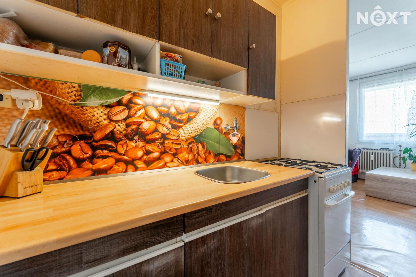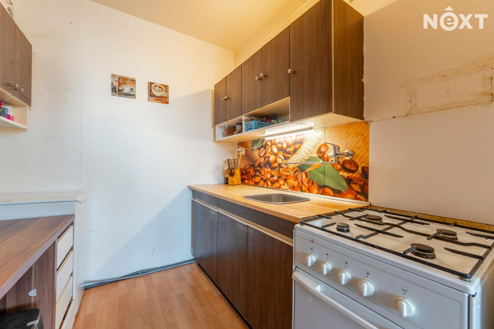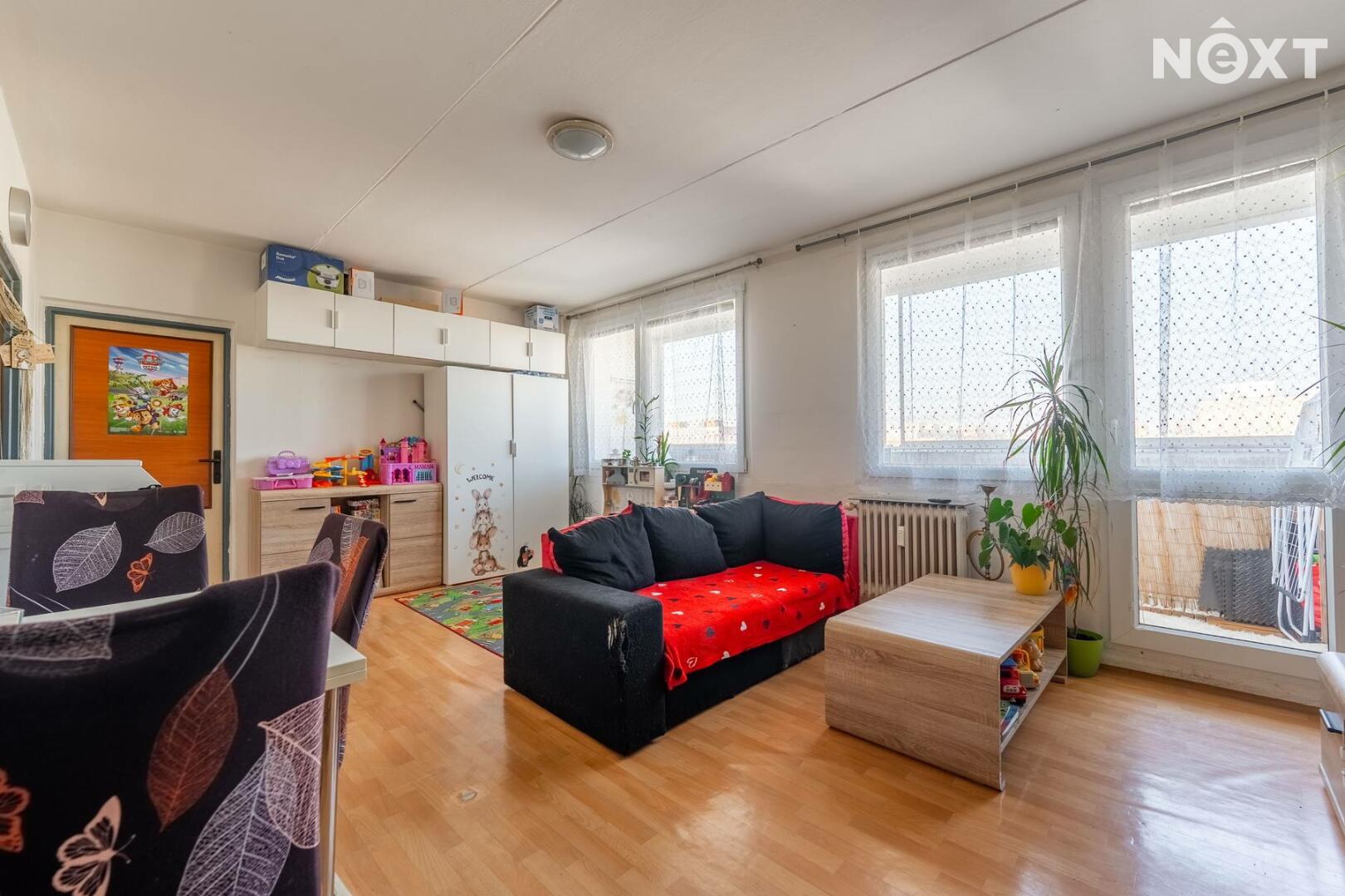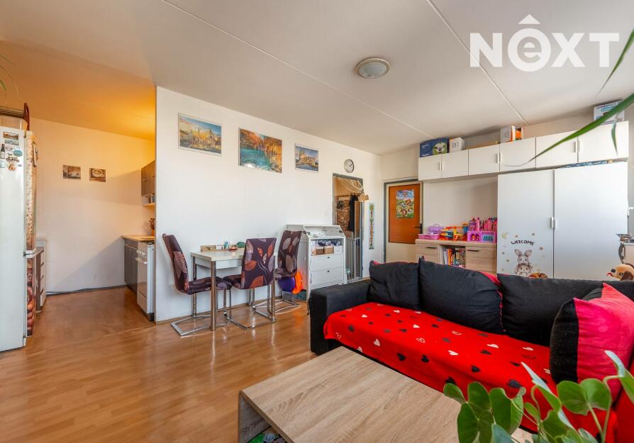 Byt o dispozici 2+kk (47,4 m2) se dvěma lodžiemi (8,5 m2) a sklepní kójí (2 m2), se nachází 3 minuty chůze od zastávek autobusů MHD a spojů do Prahy Veleslavína a na Zličín. Ve stejné vzdálenosti je i obchodní centrum Jih. Byt je orientován na severozápadní stranu do vnitrobloku a disponuje dvěmi obytnými místnosti, na které navazují lodžie. Samostatnou a neprůchozí ložnicí a obývacím pokojem s kuchyňským koutem. Z předsíně se vchází do koupelny s vanou a na toaletu. Byt se nachází v 6.NP domu se dvěmi výtahy.