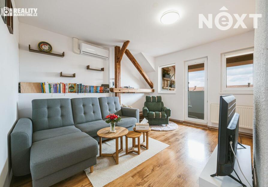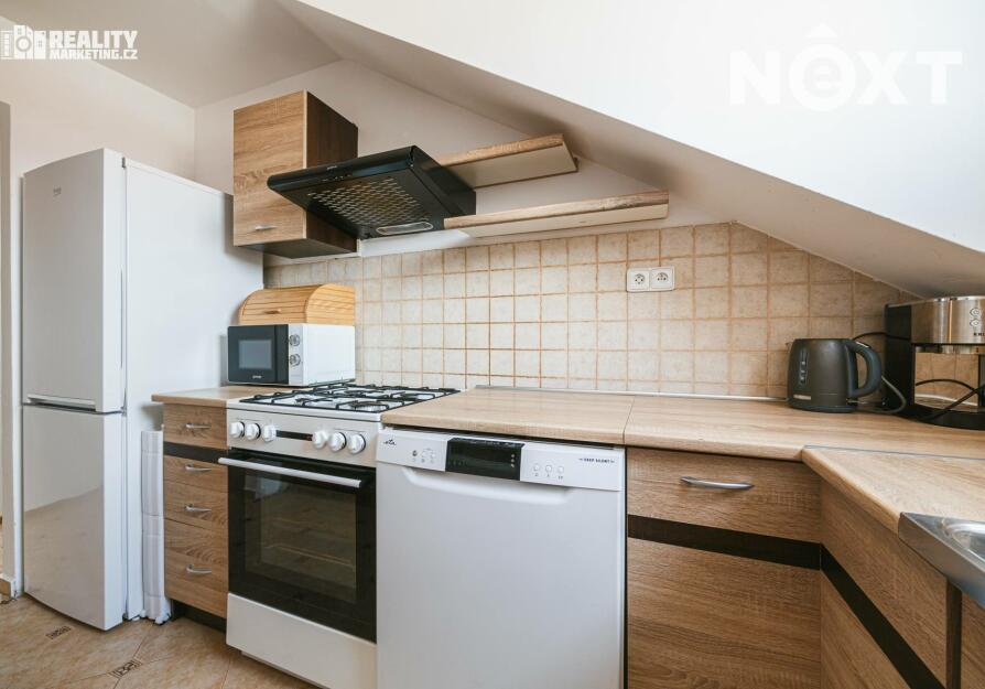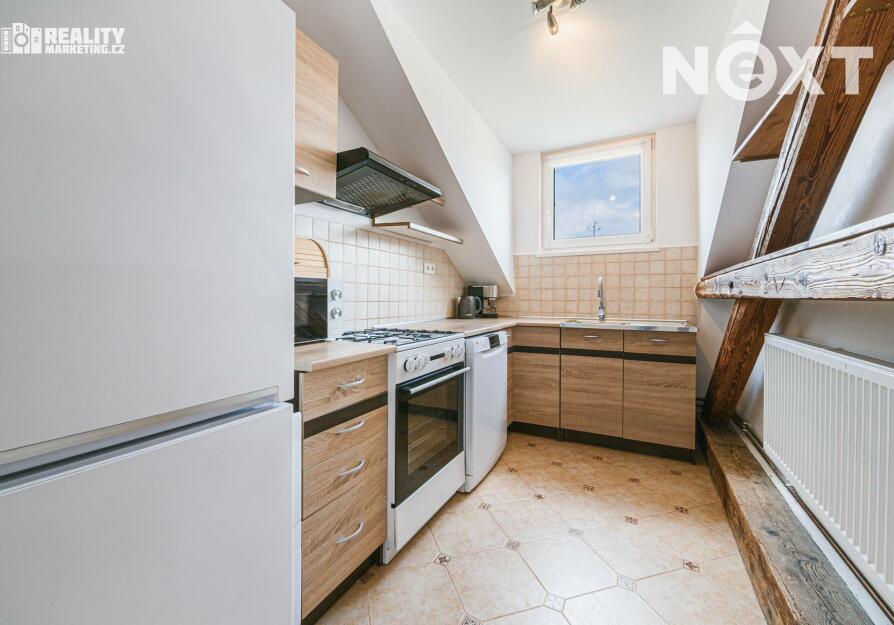 Nabízíme k dlouhodobému pronájmu velmi pěkný, stylový a dobře udržovaný podkrovní byt o dispozici 2+1 s podlahovou plochou 54 m², k němuž náleží také prostorná dobře krytá lodžie orientovaná na východ – ideální pro ranní kávu, bylinky i relax po práci. Bytová jednotka je situována v posledním 3. patře cihlového bytového domu o osmi bytových jednotkách, který je ve velmi dobrém technickém stavu a v blízké době ho čeká navíc revitalizace. Společné prostory domu jsou vzorně udržované – k dispozici je čistá a prostorná kočárkárna, kolárna i sušárna, což ocení nejen rodiny s dětmi, ale i aktivní jednotlivci a páry.