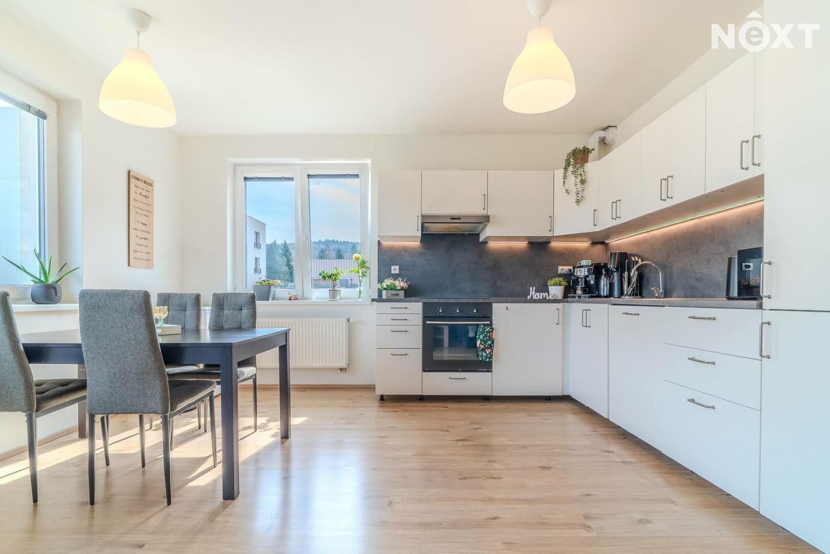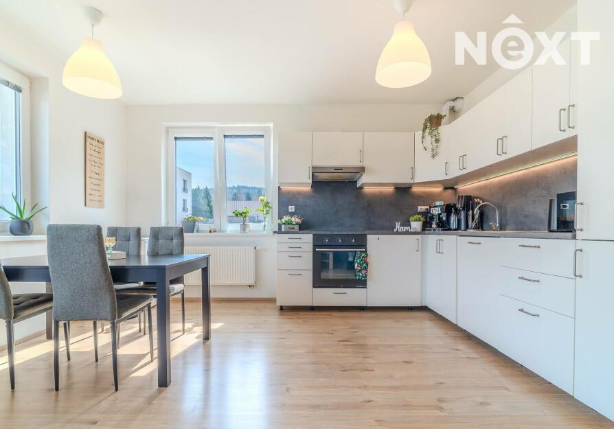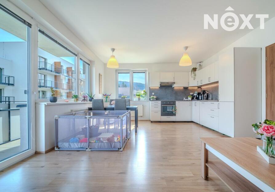 Nabízíme k prodeji prostorný a světlý byt o dispozici 3+kk s balkonem a sklepem, který se nachází ve 3. nadzemním podlaží moderní novostavby z roku 2020 v klidné části městyse Jince, v ulici Zborovská.