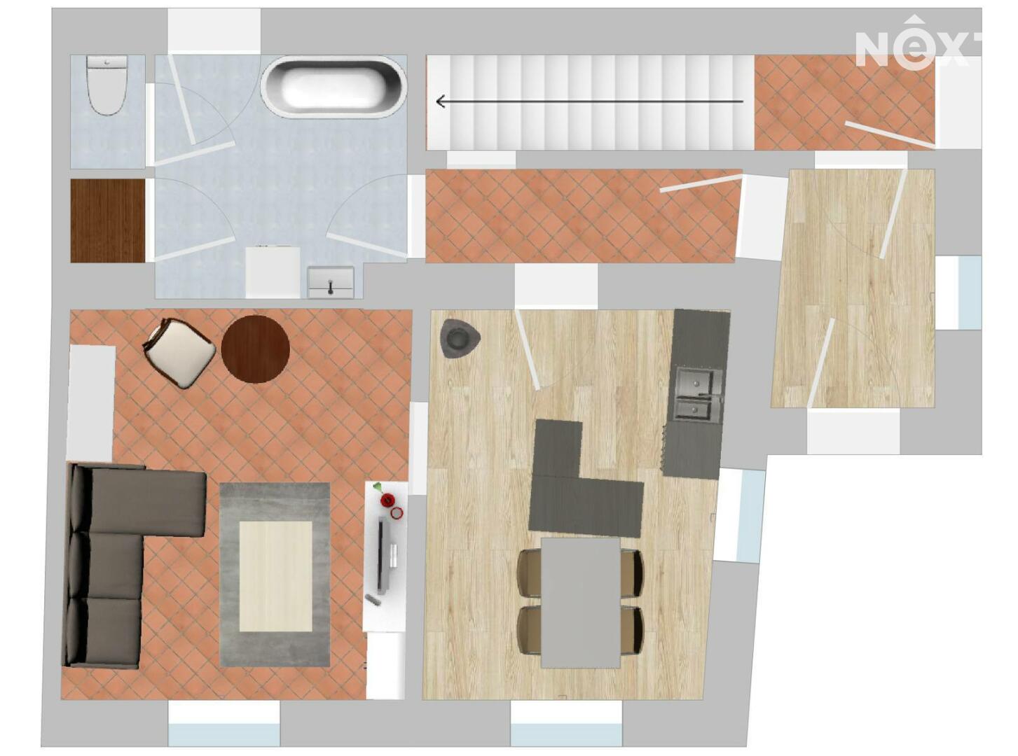 Dům je prakticky rozdělen na dvě samostatné bytové jednotky o dispozici 2+kk, každou s vlastní kuchyní a koupelnou. Toto řešení nabízí maximální flexibilitu – můžete zde pohodlně bydlet a současně pronajímat, využít jej jako dvougenerační bydlení, nebo jej celý ponechat jako investiční nemovitost.