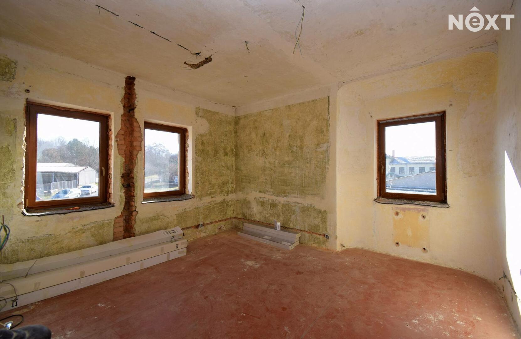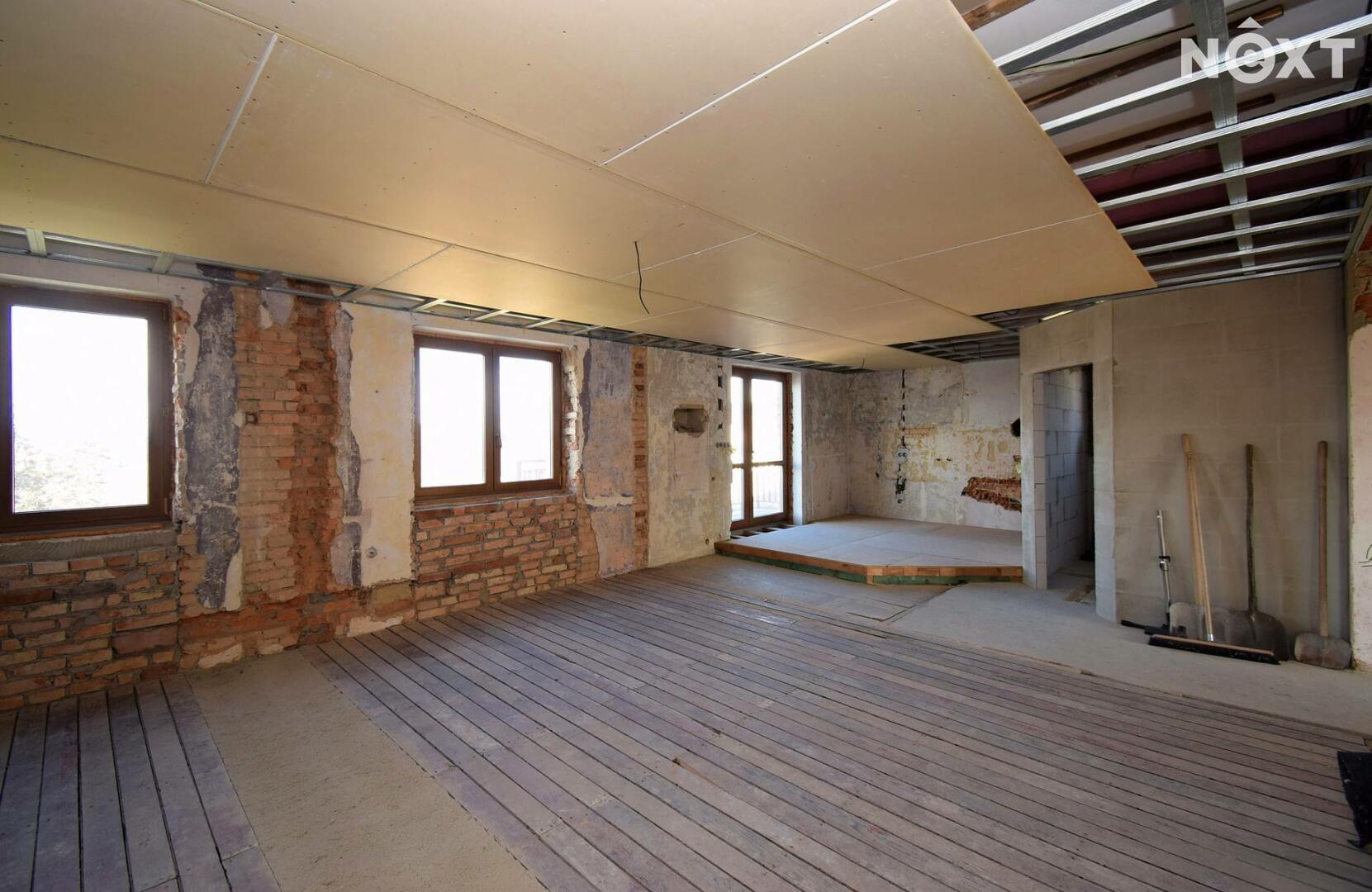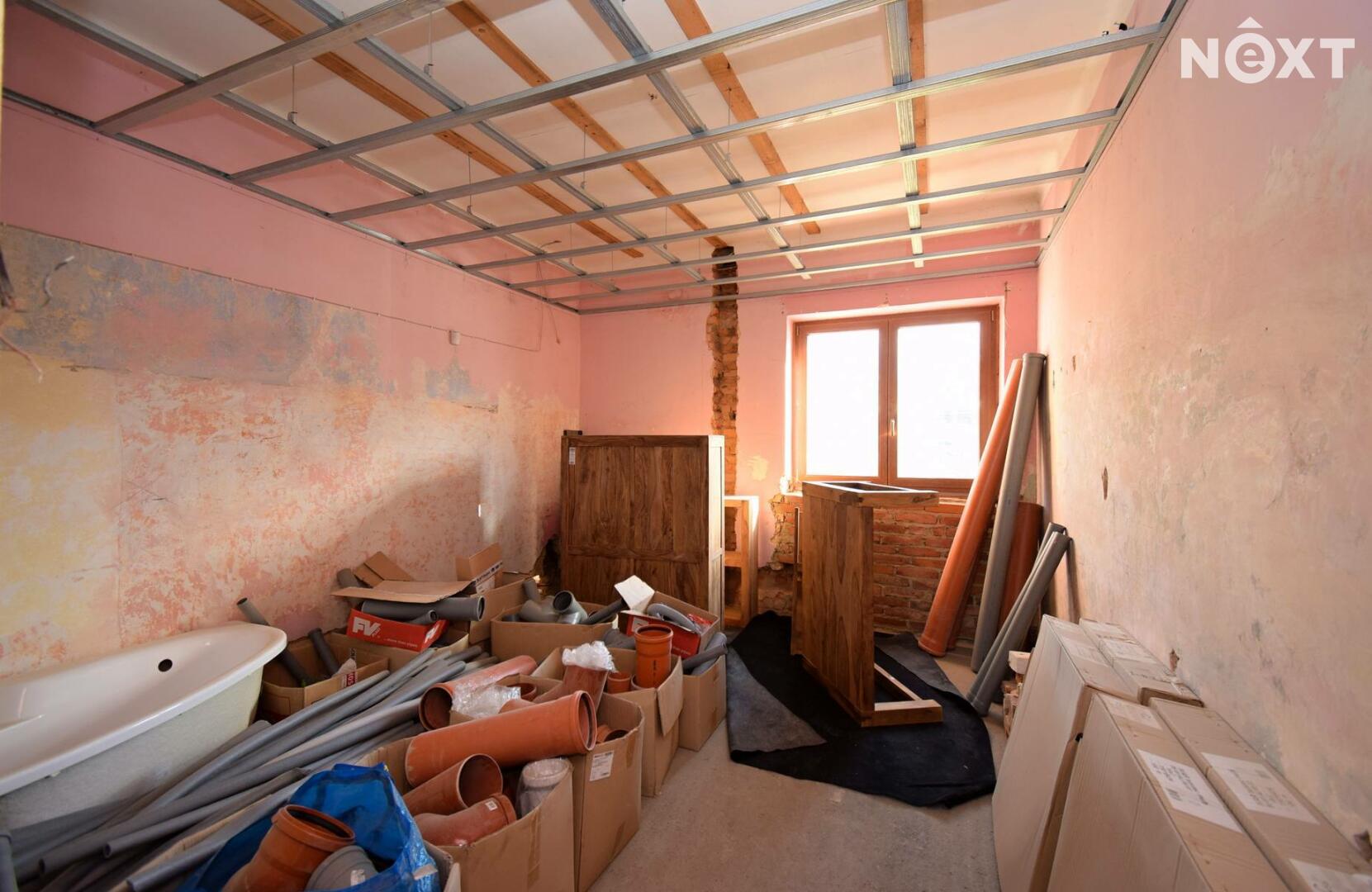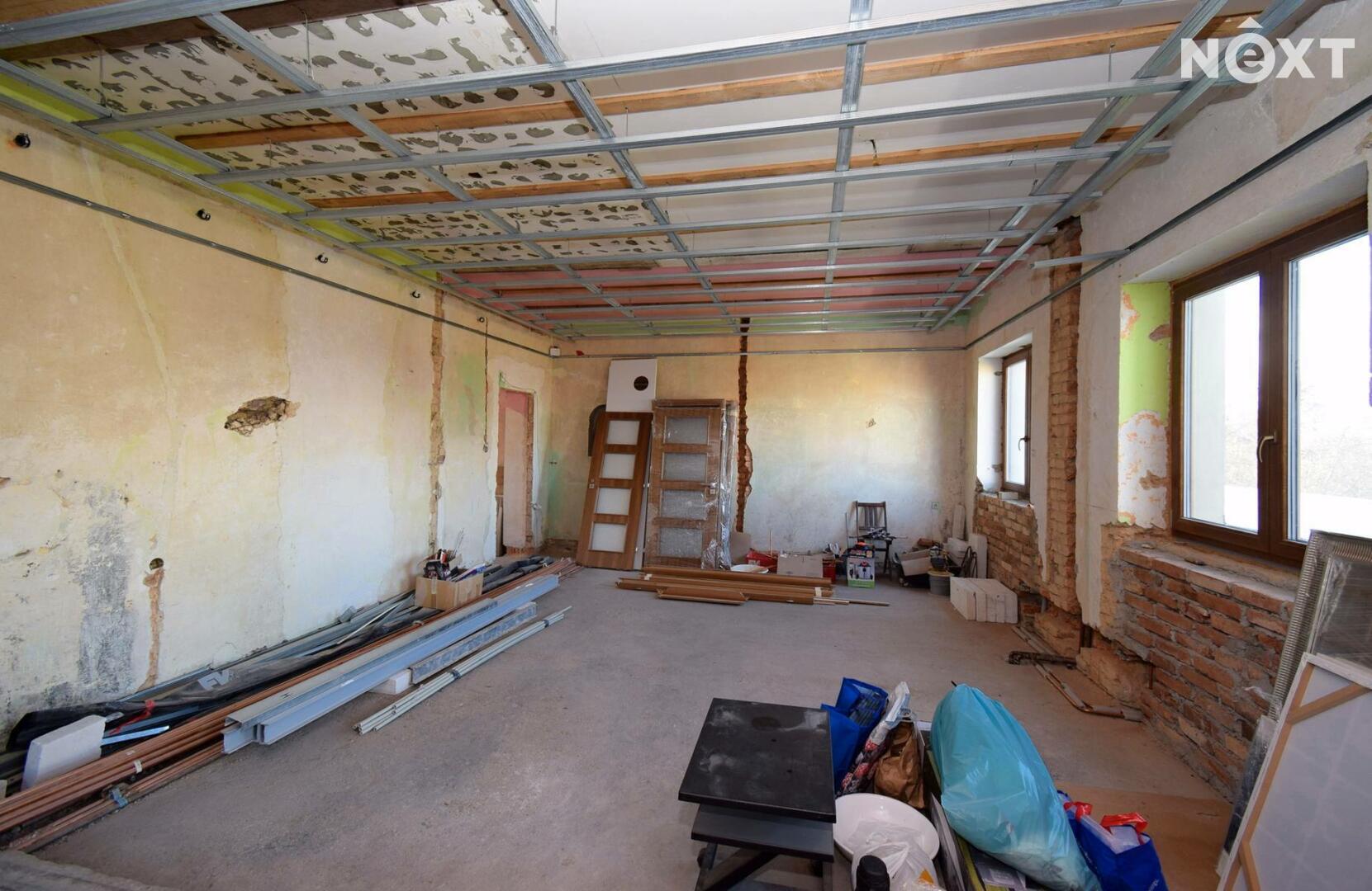 v domě byly provedeny hlavní bourací a vyklízení práce, dále byla položena nová střešní krytina vč. okapů, osazena nová okna s trojskly, vyvložkovaný komín, osazeny nové odpadní roury a provedeny nové rozvody el. kabelů.