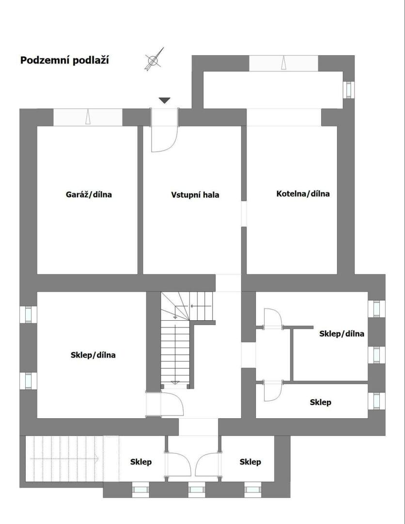 suterén - lze využít minimálně 2 místnosti jako dílny, případně jako úložný prostor.