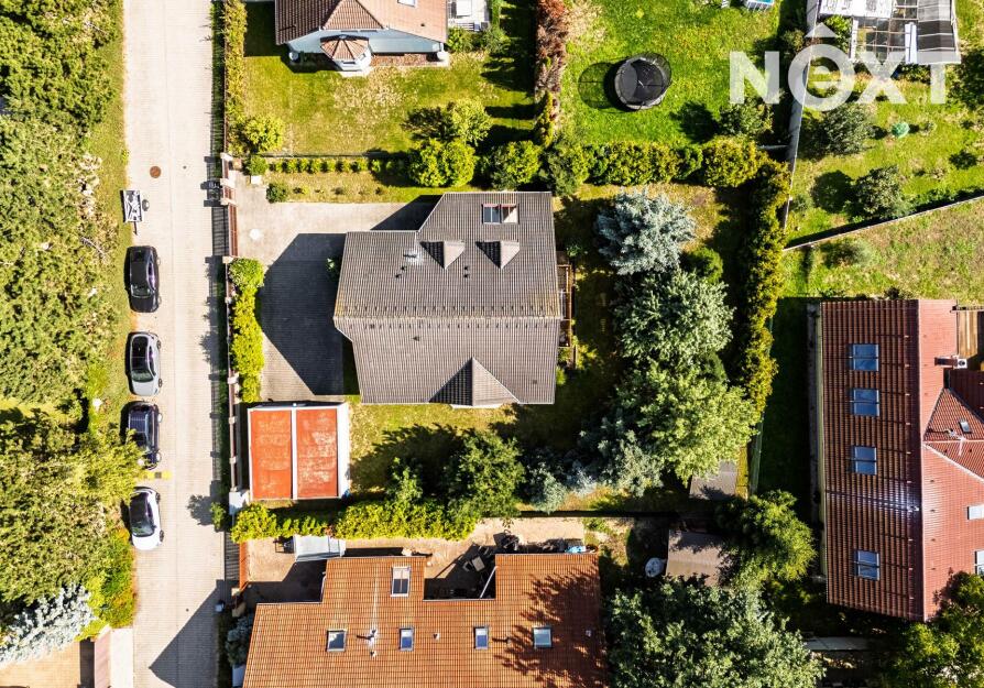 Pozemek o velikosti 967 m² je oplocený, se vzrostlou zelení a dostatkem soukromí. Najdete zde udržovaný trávník, zahradní domek a příjemné zázemí pro každodenní život i odpočinek.