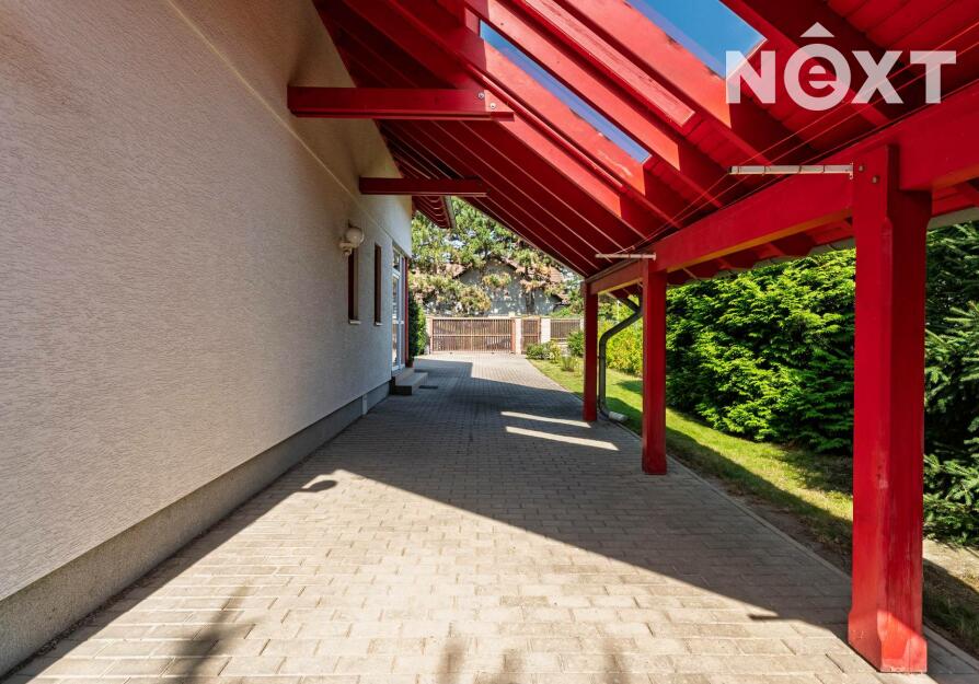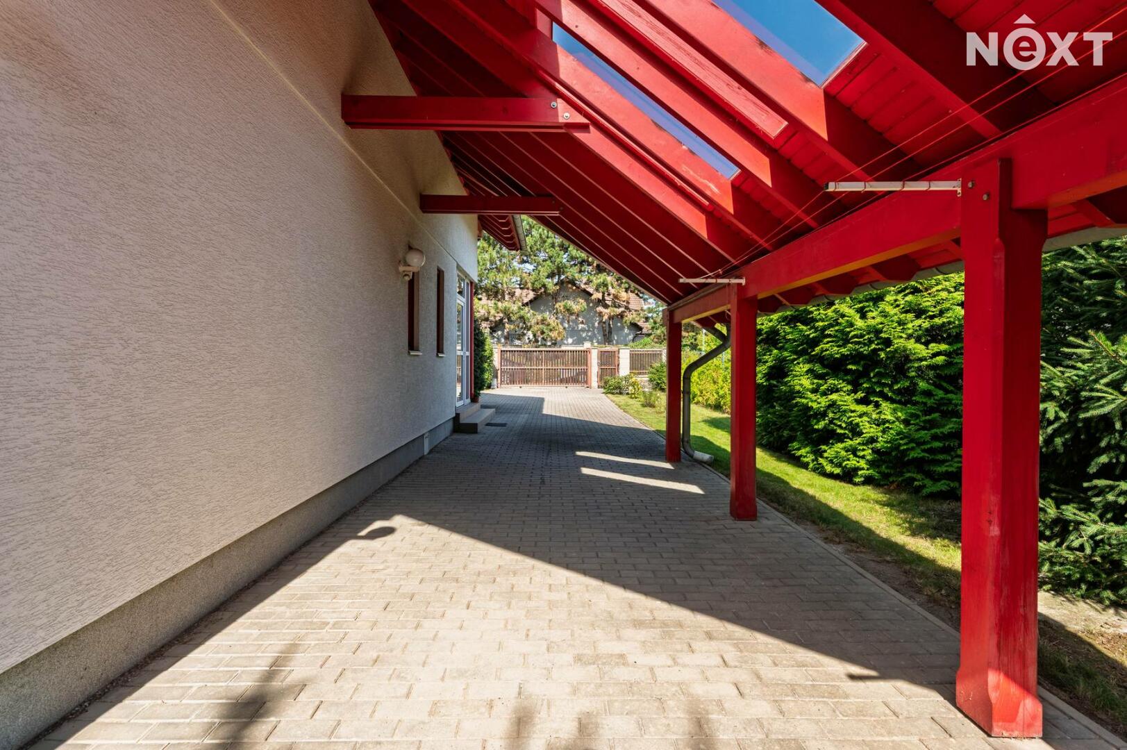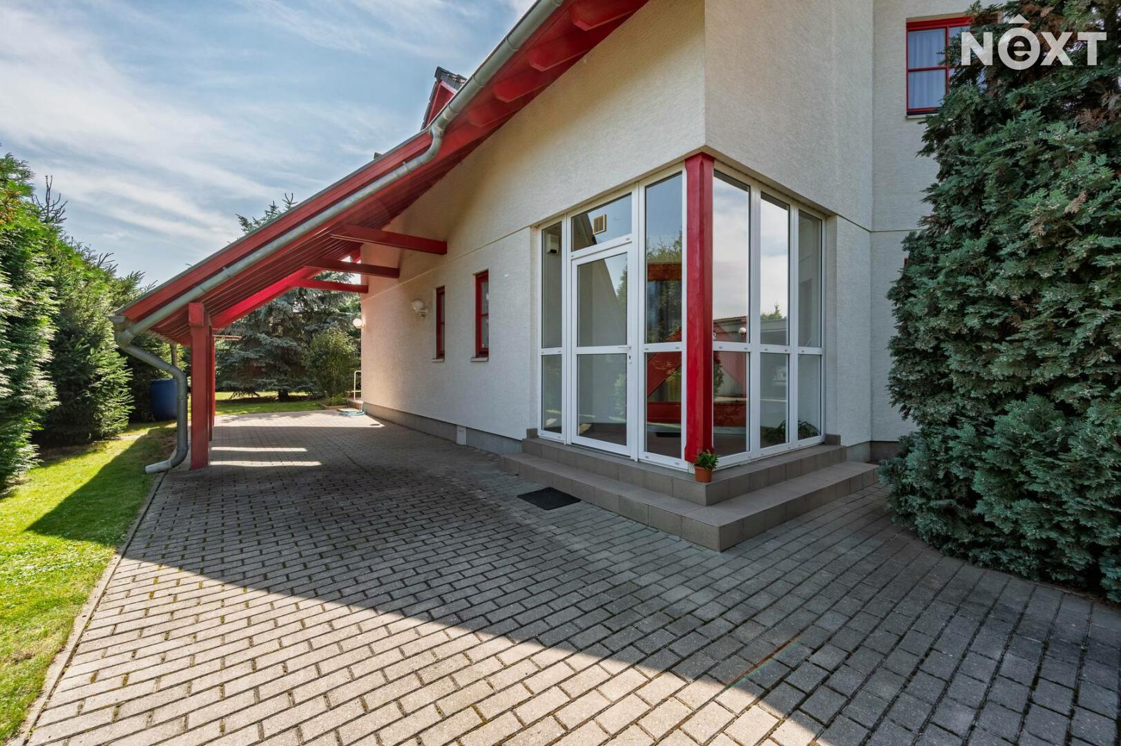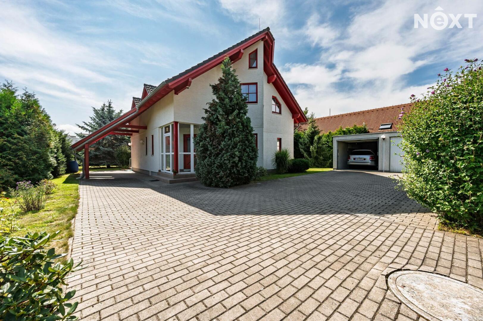 Součástí je samostatná dvougaráž a kryté stání pro další vozy – ideální řešení pro rodinu i návštěvy.