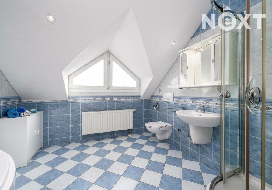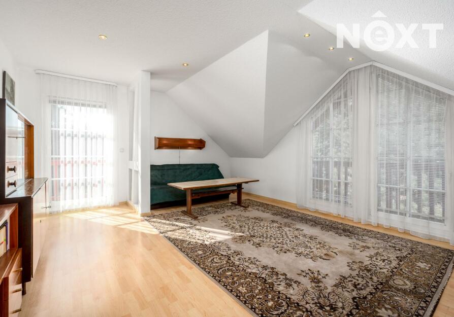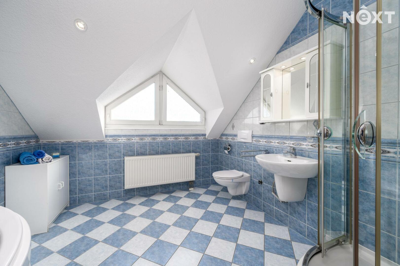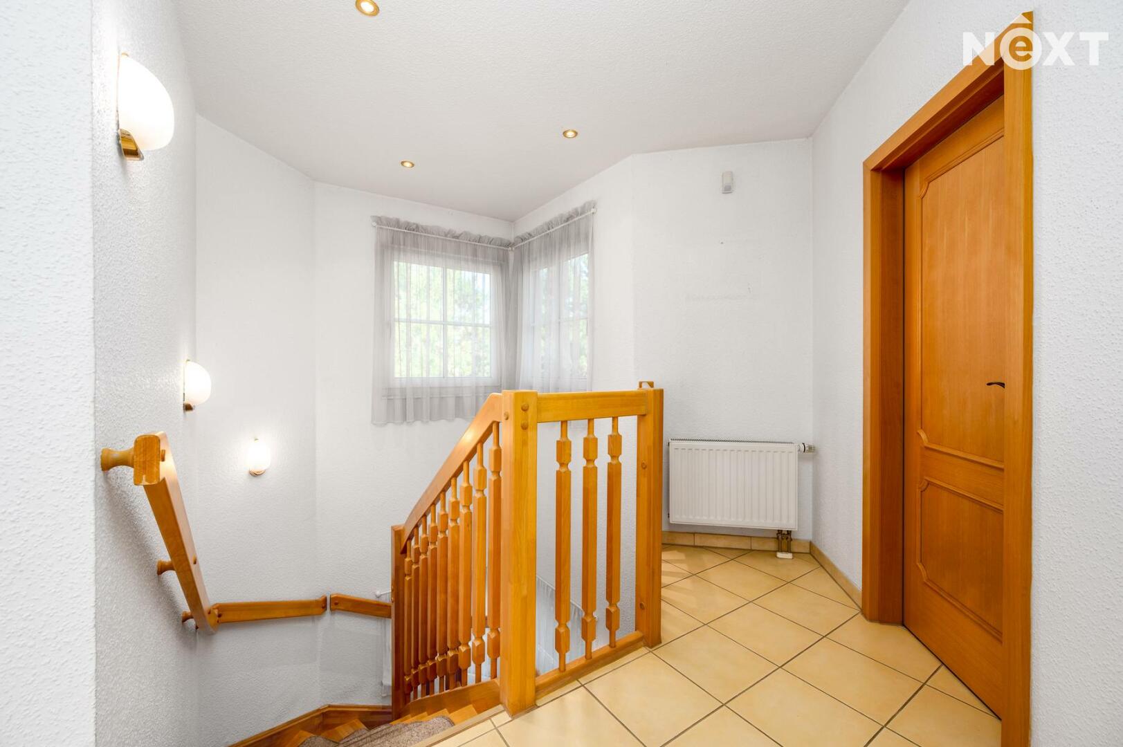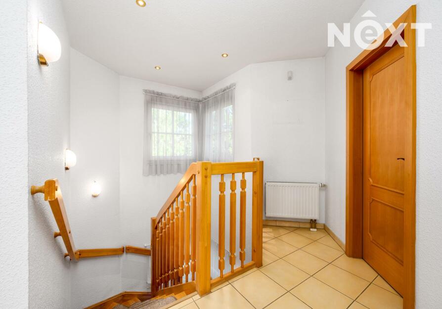 V patře jsou tři samostatné ložnice, koupelna s vanou i sprchou, šatna / komora a dva balkony. Z haly je přístup na půdu, která nabízí další úložný prostor nebo potenciál do budoucna.
