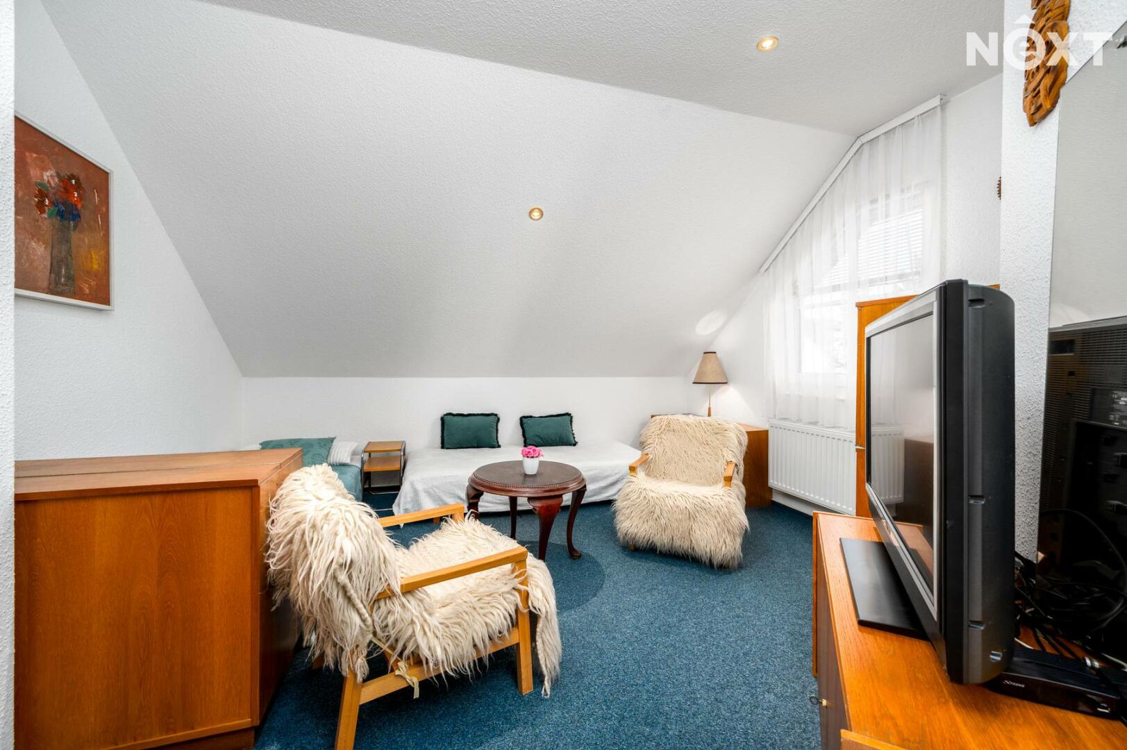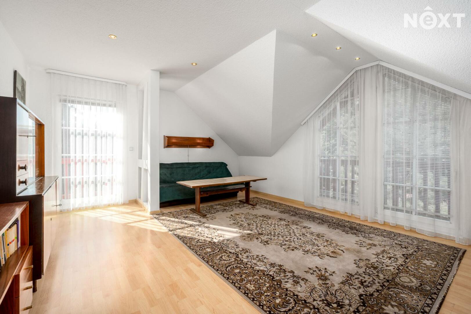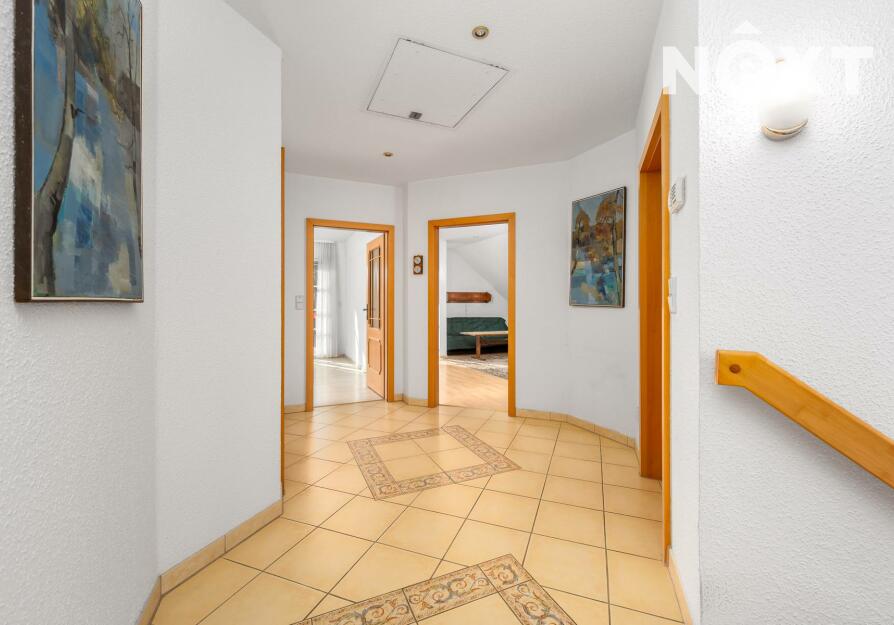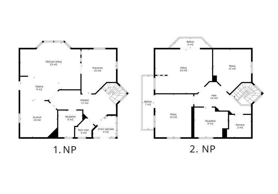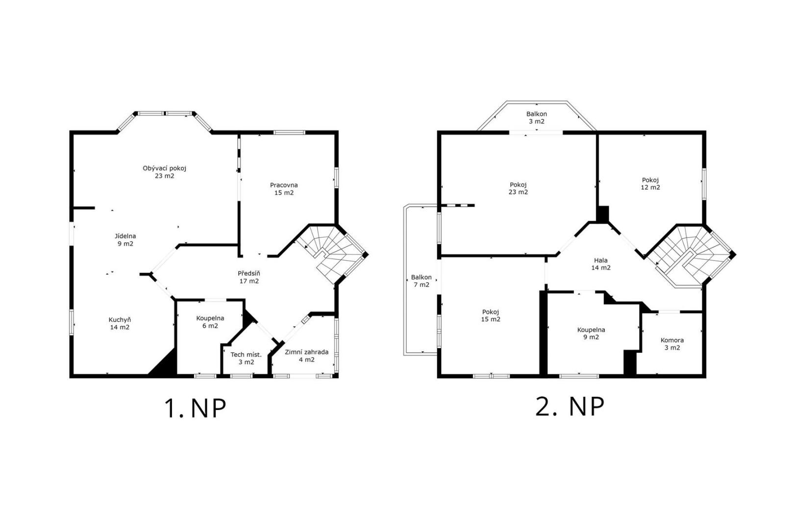 V patře jsou tři samostatné ložnice, koupelna s vanou i sprchou, šatna / komora a dva balkony. Z haly je přístup na půdu, která nabízí další úložný prostor nebo potenciál do budoucna.
