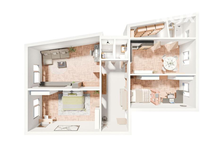 prostorný byt, vhodný jak pro komfortní plnohodnotné rodinné bydlení,