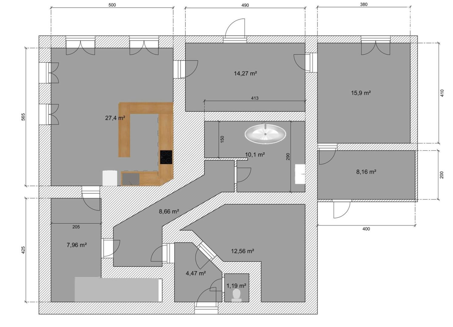 Dům nabízí zastavěnou plochu 157 m², obytnou plochu přibližně 143 m² a celkovou plochu 194 m². Nemovitost již prošla částečnou rekonstrukcí, která zahrnovala nové odpady, byla nainstalována plastová okna a modernizován systém vytápění i ohřevu teplé vody, který je řešen plynovým kotlem. Díky tomu lze výrazně snížit počáteční investici a rychleji začít generovat výnos.