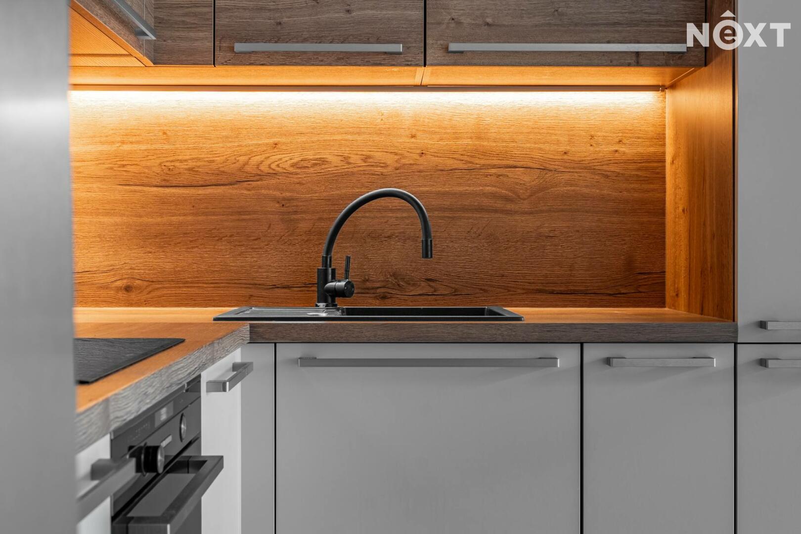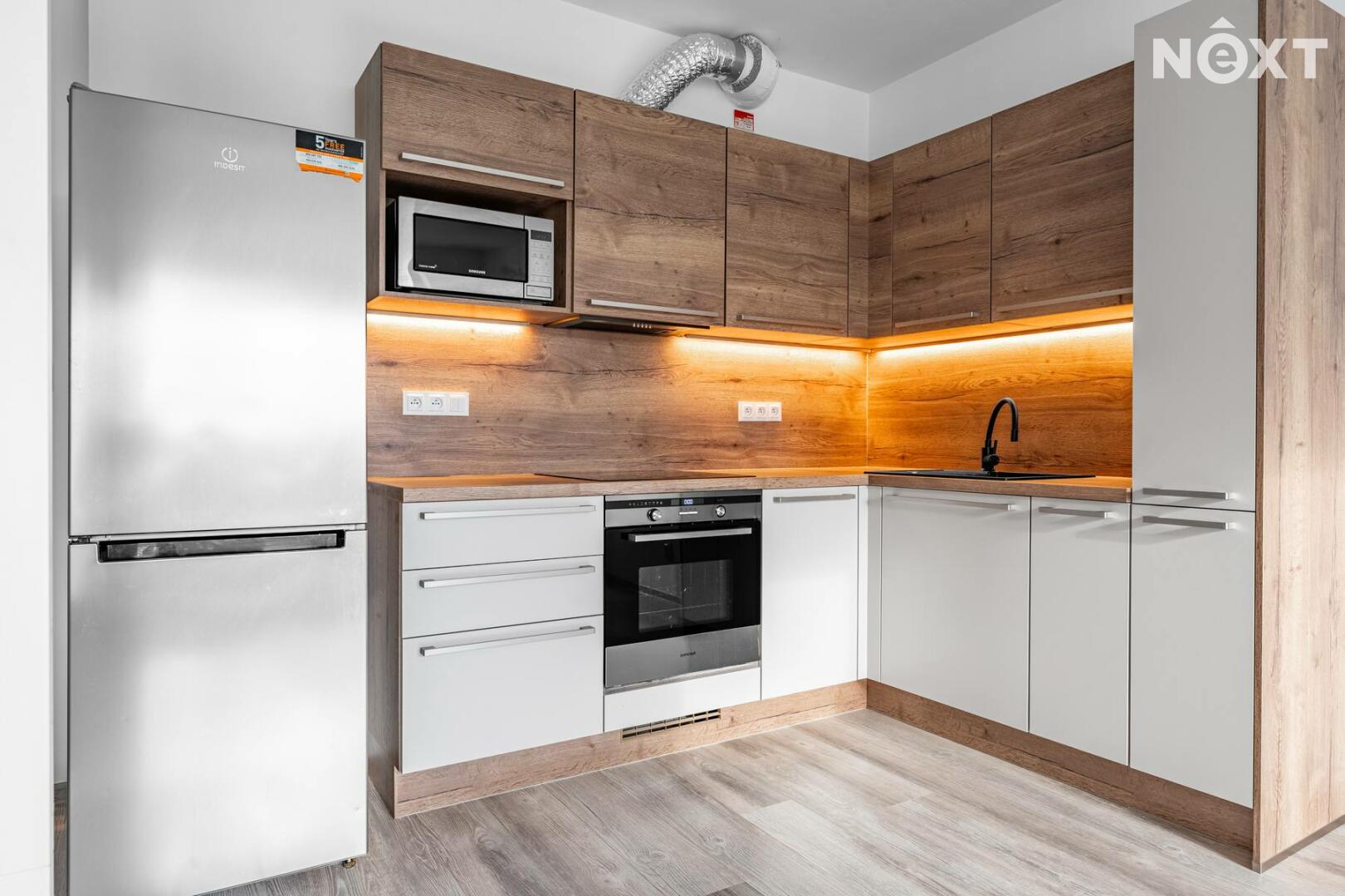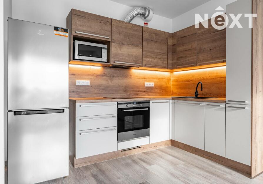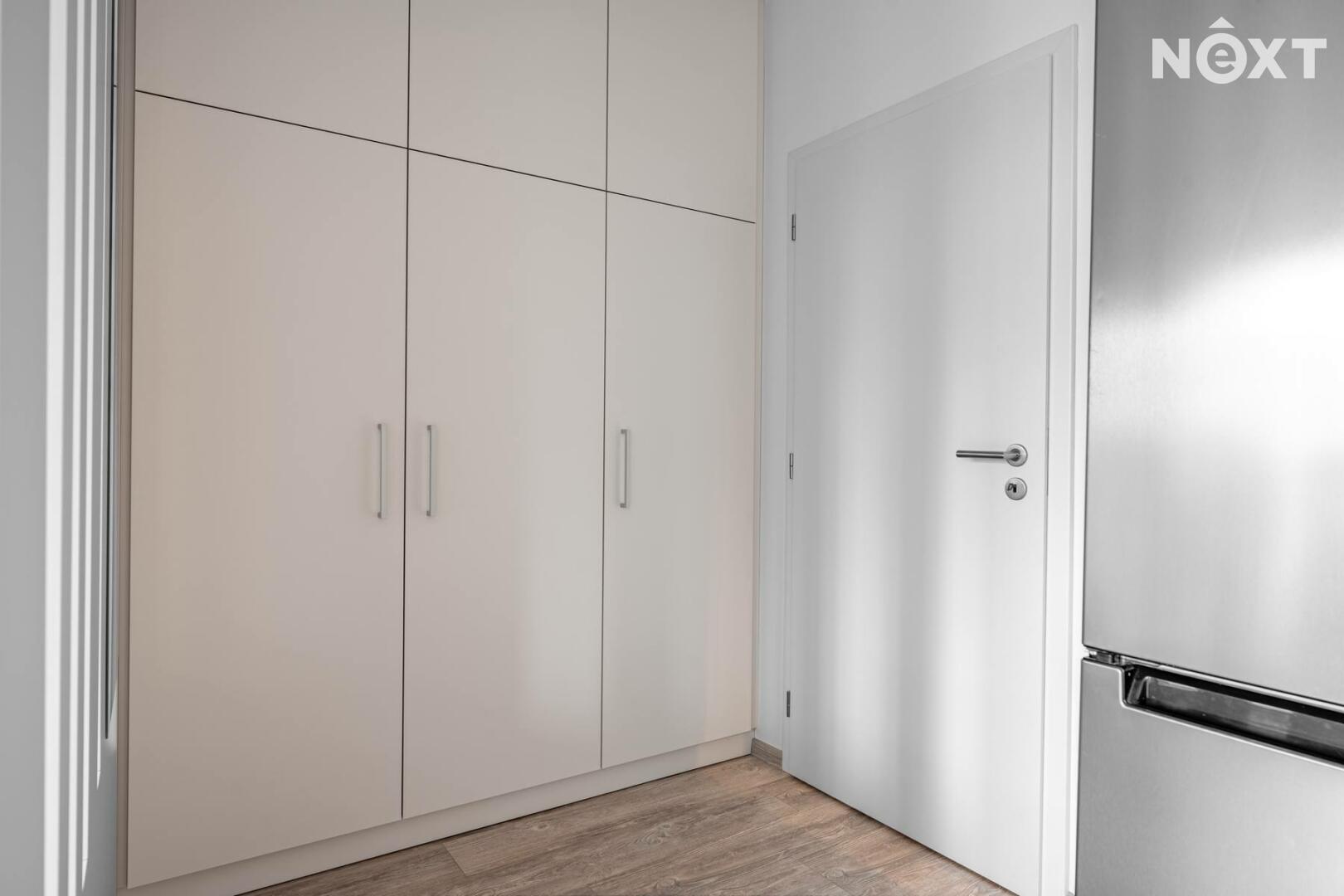 Byt se pronajímá jako nevybavený, součástí však zůstává kuchyňská linka se spotřebiči a vestavěné skříně.