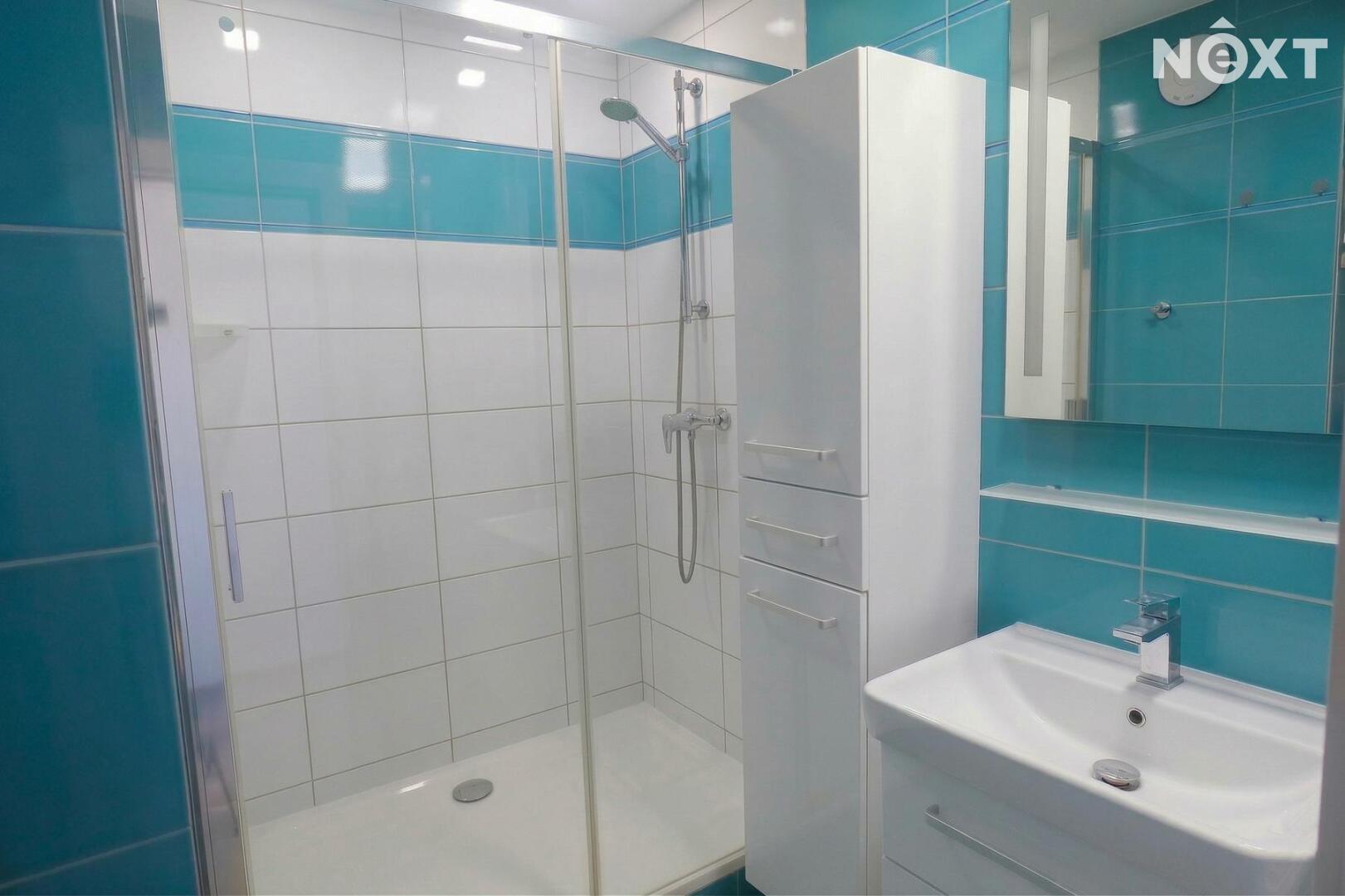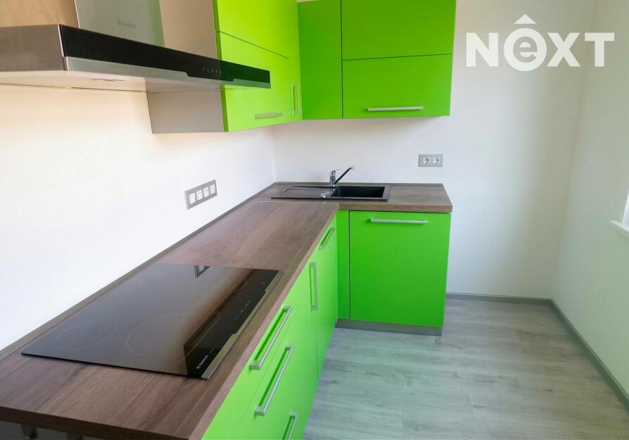 Zděné jádro, sprchový kout, pěkná kuchyňská linka včetně vestavěných spotřebičů, podlahy vynylové apod.