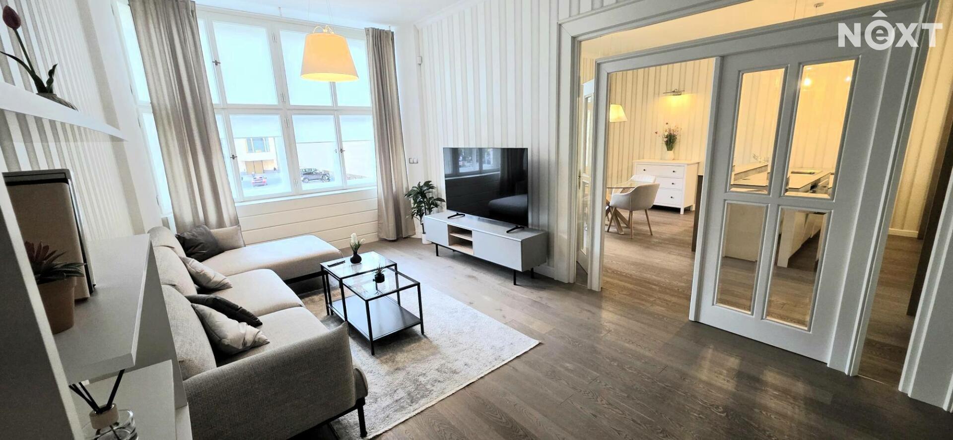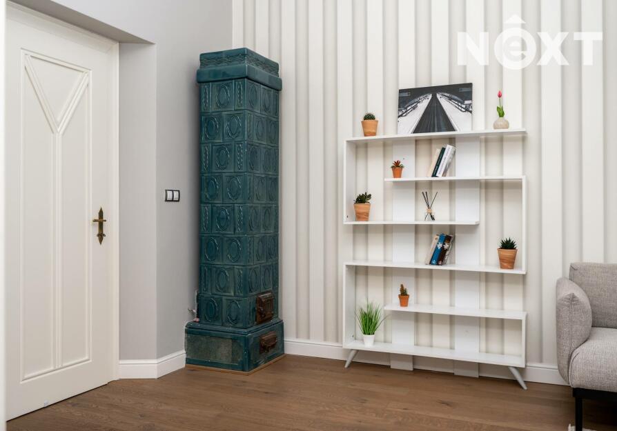 Použité materiály a nákladné vybavení odpovídají nejvyššímu standardu: masivní dřevěné podlahy, keramické obklady v koupelně, designové stěrky, rekonstruovaná dřevěná okna v památkově chráněné lokalitě, interiérové dveře z masívu.