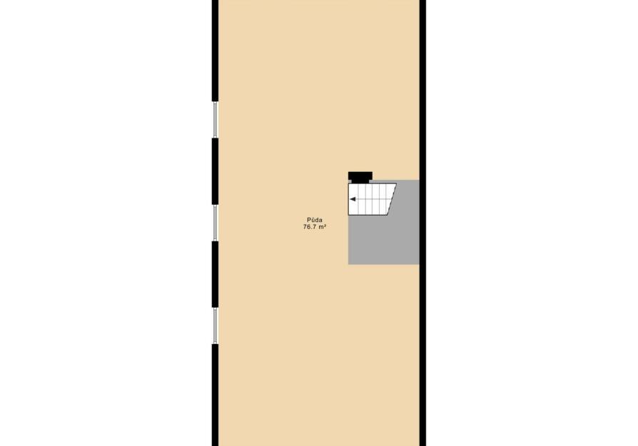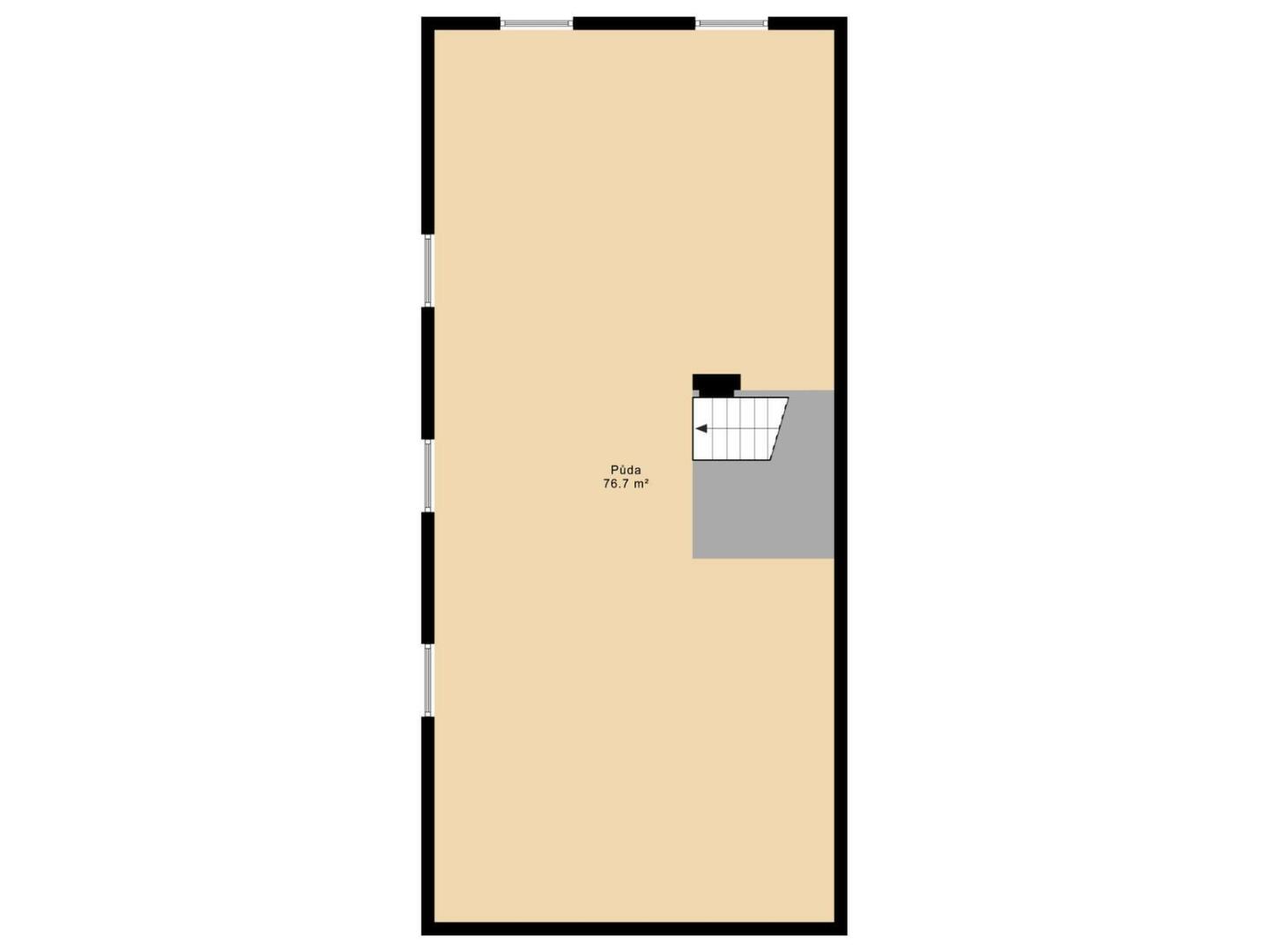Dispozičně je dům řešen jako 2 podlažní. Spodní část o výměře 58 m² nabízí vstupní chodbu, prostorný obývací pokoj s komínem připraveným na krbová kamna, samostatný prostor pro kuchyň a navazující místnost určenou pro koupelnu. Horní patro o podlahové ploše 76,7 m² je aktuálně řešeno jako otevřený, vzdušný prostor, který může sloužit například jako ateliér, pracovna nebo jej lze jednoduše upravit příčkami na plnohodnotné obytné místnosti. Díky připraveným rozvodům vody a odpadů je zde možné vybudovat až tři ložnice a koupelnu.