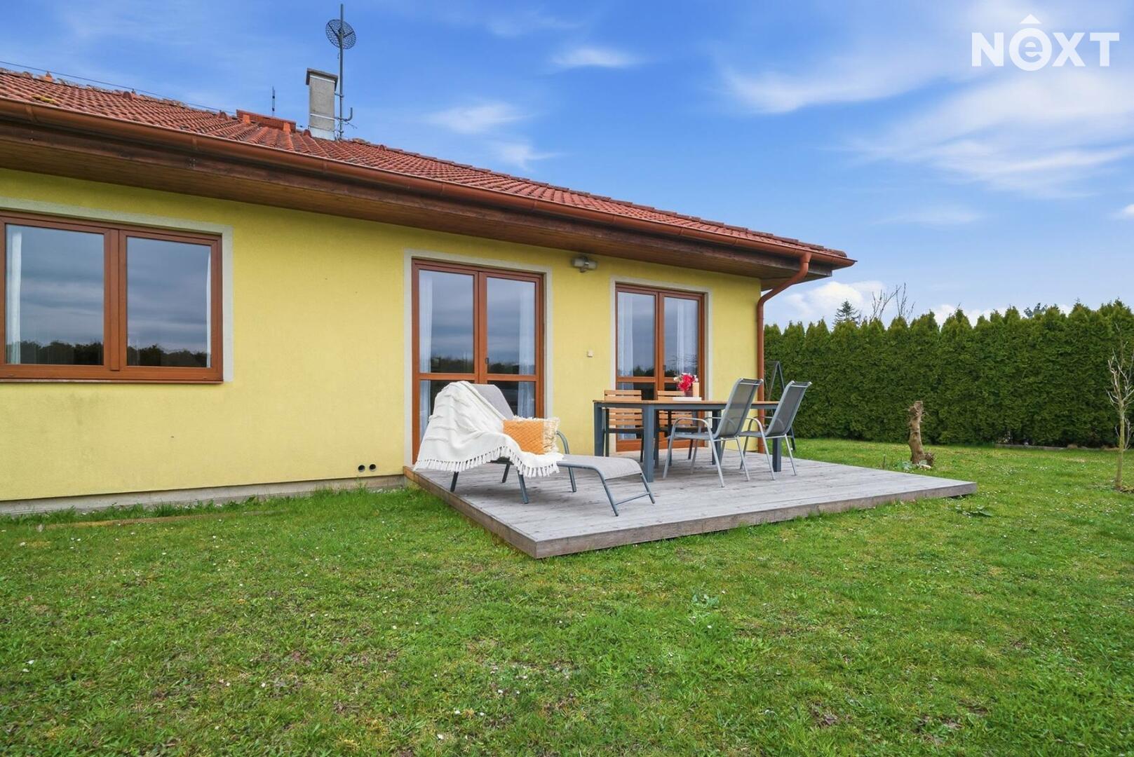 Na pozemku je nezastřešená terasa cca 16 m², která v létě funguje jako další obytný prostor.