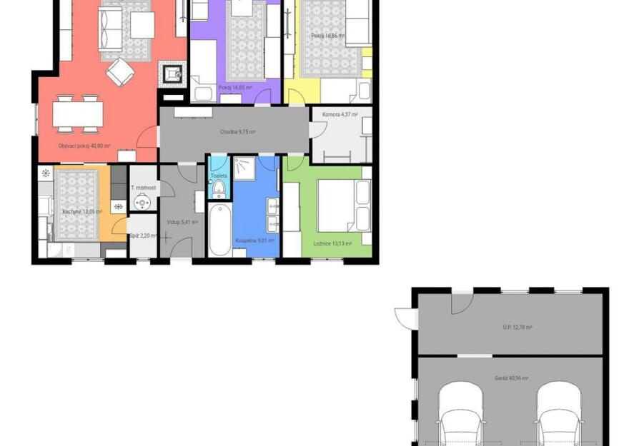 • kuchyně 11,5 m² + špajz 2,16 m²