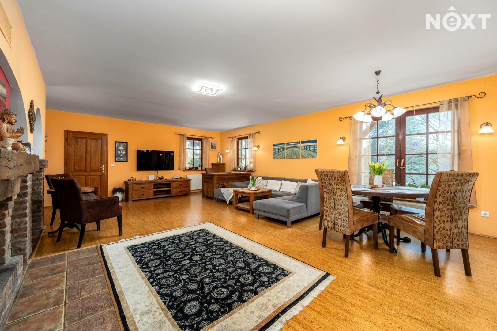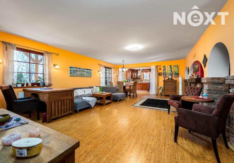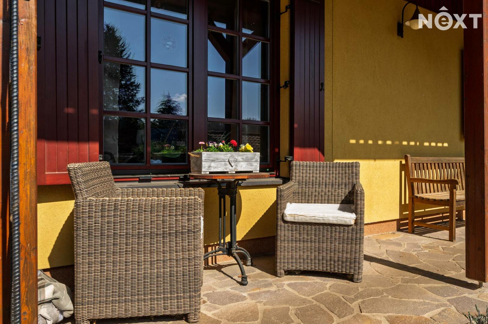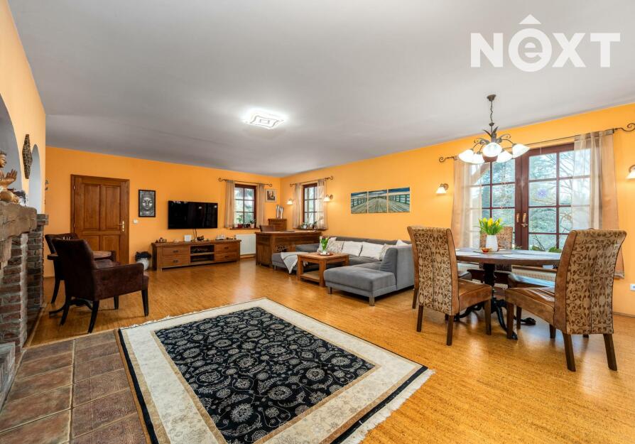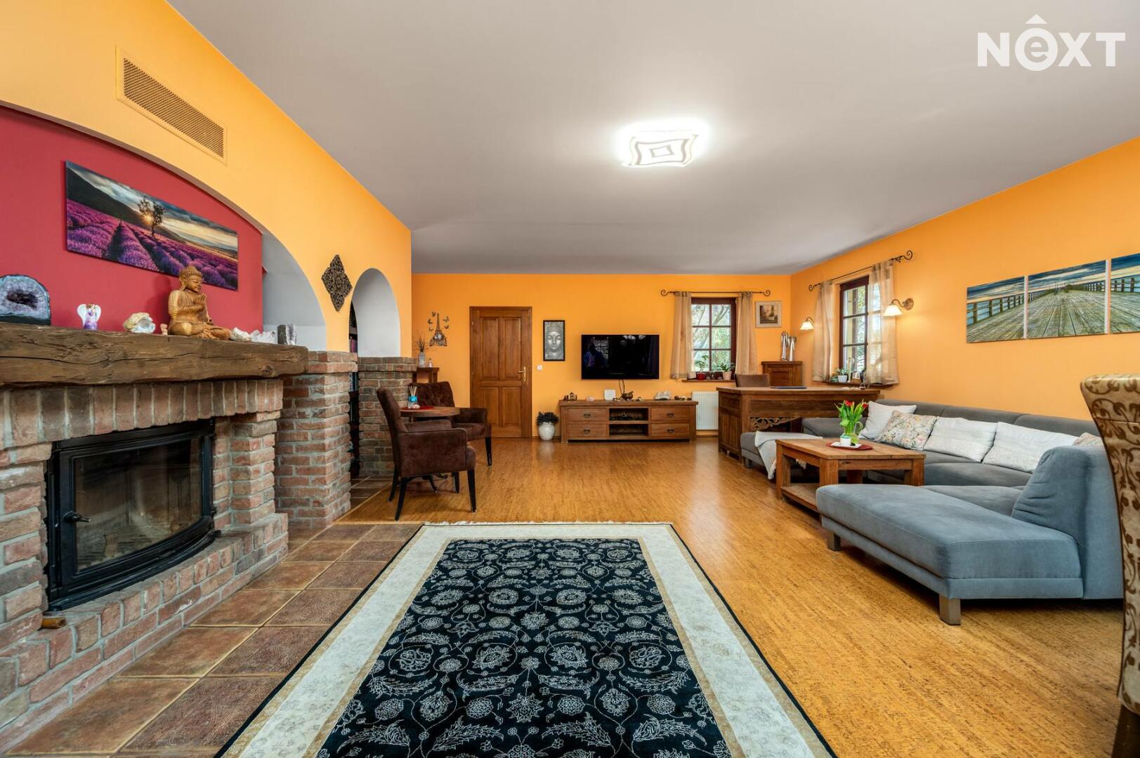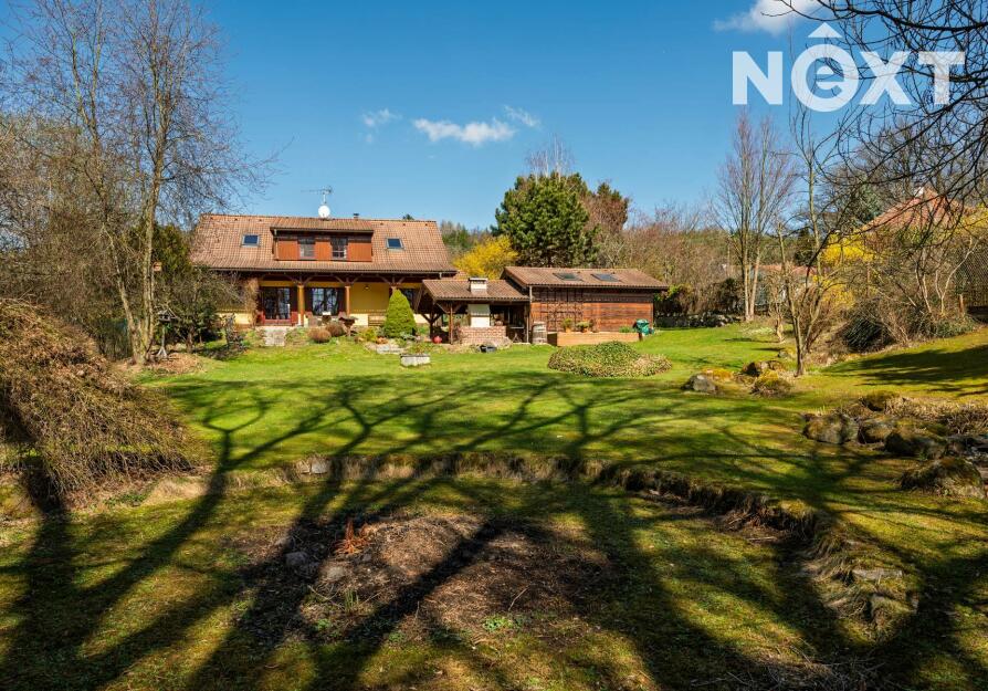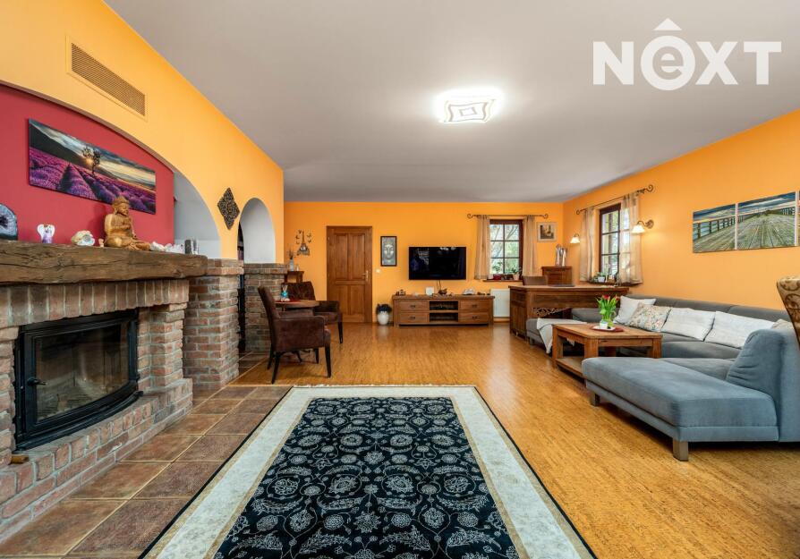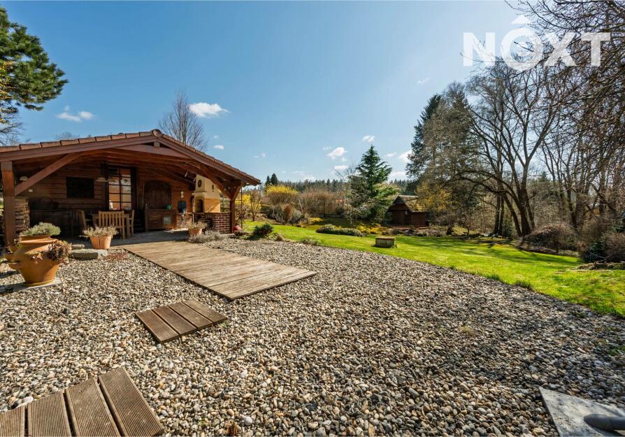 Srdcem domu je otevřený obytný prostor s krbem, který přirozeně propojuje zónu pro společná setkání s jídelnou a kuchyní. Velká francouzská okna vpouští dovnitř světlo i výhled do zahrady, takže interiér působí vzdušně a živě po celý rok. Dispozice nabízí několik neprůchozích ložnic, které dávají soukromí rodičům i dětem, dvě koupelny pro pohodlí každodenního provozu a praktické zázemí v podobě centrálního vysavače či plynového kotle. Dům z roku 2002 je dřevostavbou ve velmi dobrém stavu – připravený k okamžitému bydlení bez nutnosti zásadních úprav.