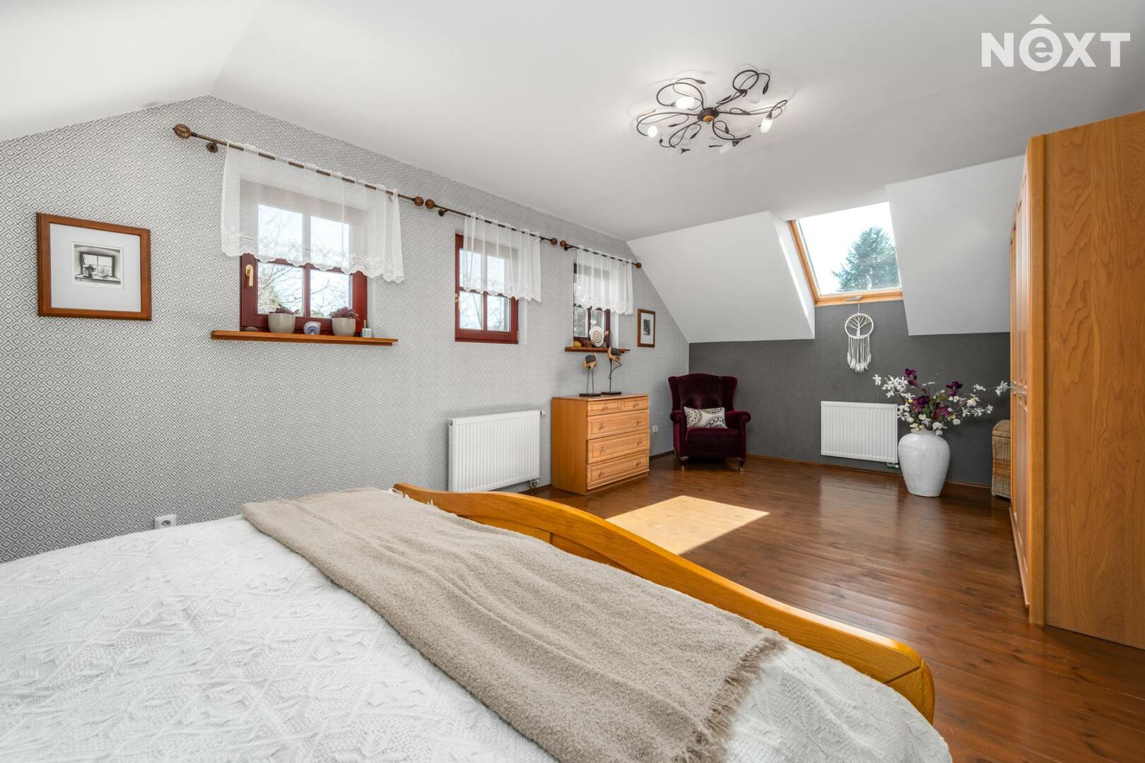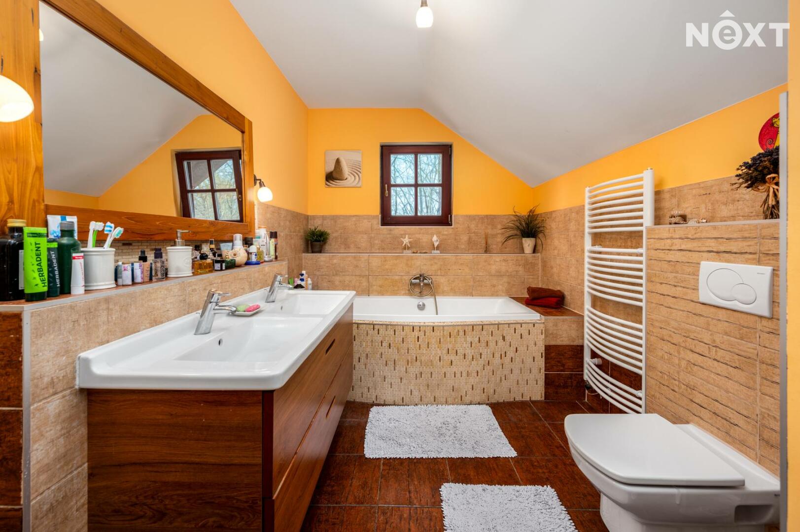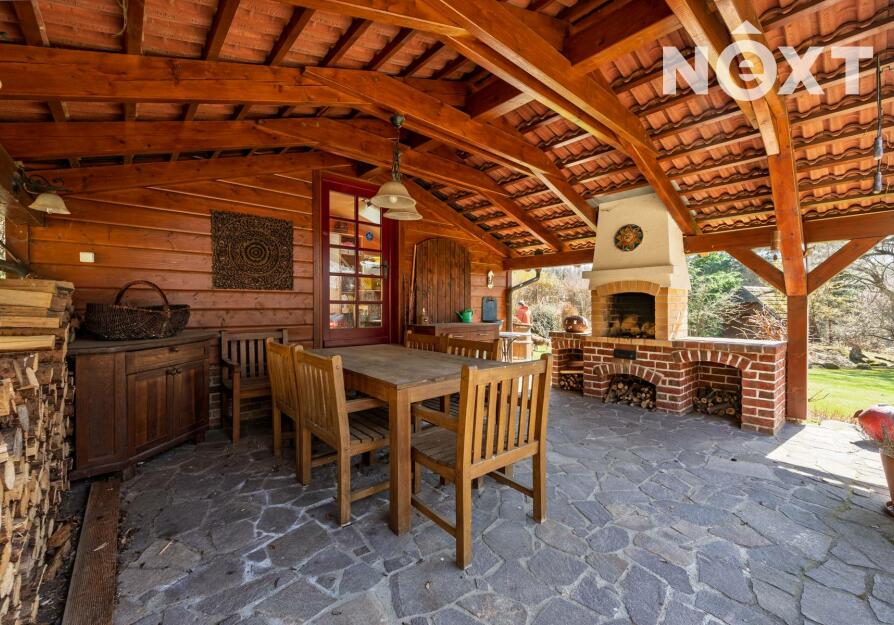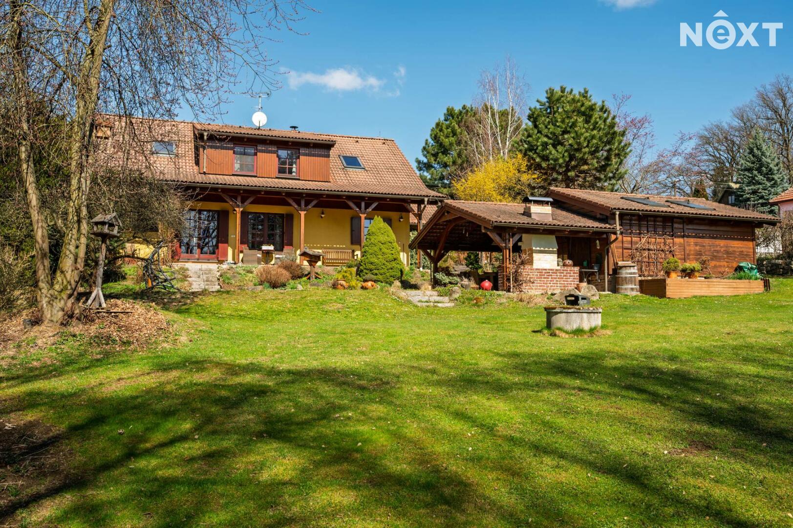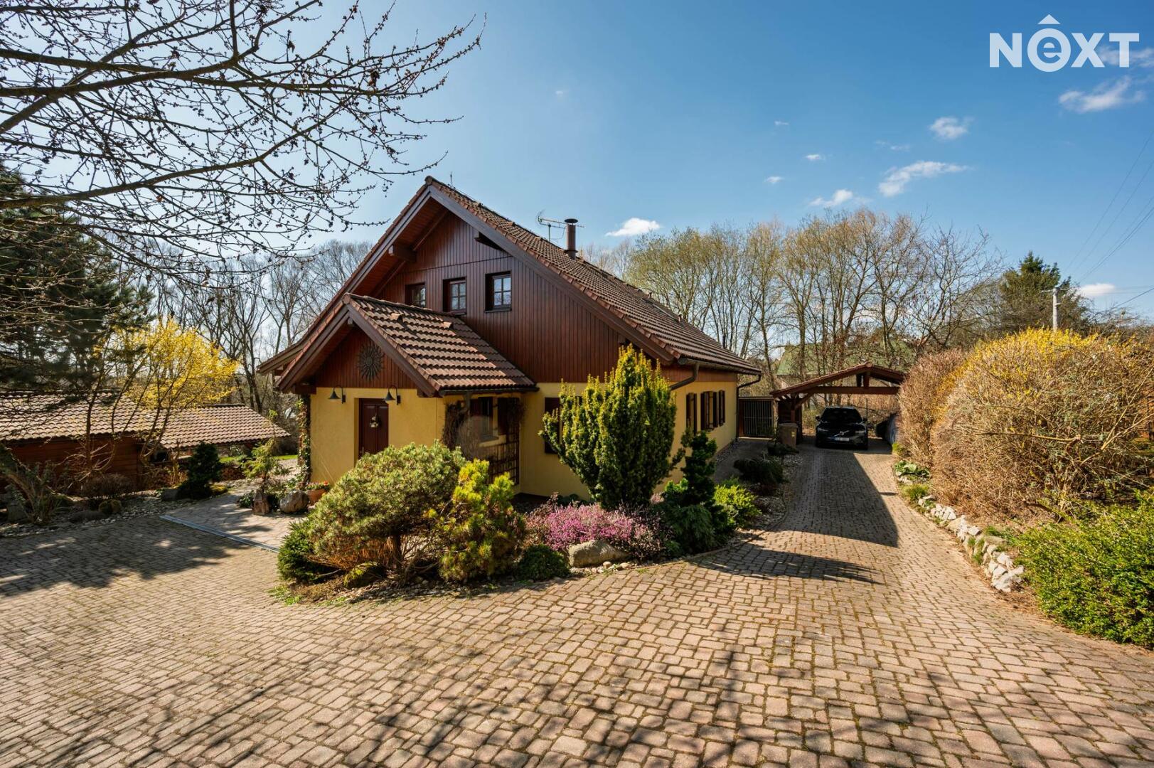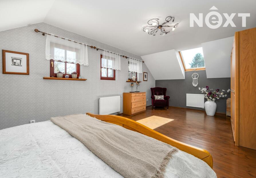 Srdcem domu je otevřený obytný prostor s krbem, který přirozeně propojuje zónu pro společná setkání s jídelnou a kuchyní. Velká francouzská okna vpouští dovnitř světlo i výhled do zahrady, takže interiér působí vzdušně a živě po celý rok. Dispozice nabízí několik neprůchozích ložnic, které dávají soukromí rodičům i dětem, dvě koupelny pro pohodlí každodenního provozu a praktické zázemí v podobě centrálního vysavače či plynového kotle. Dům z roku 2002 je dřevostavbou ve velmi dobrém stavu – připravený k okamžitému bydlení bez nutnosti zásadních úprav.
